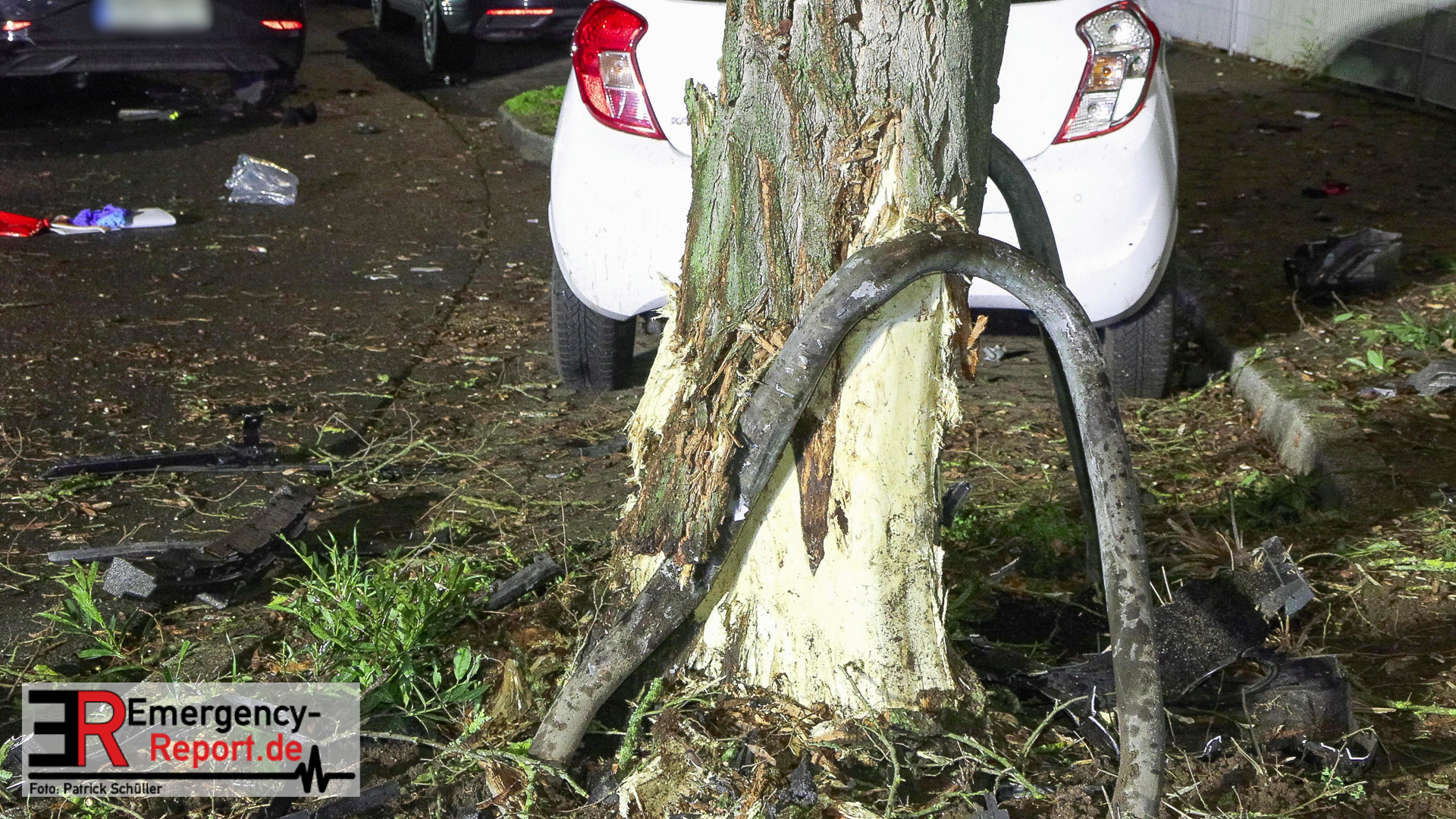 Die Flucht vor einer Polizeikontrolle endete Donnerstagnacht in Hassels vor einem Baum. Der 14-jährige Fahrzeugführer des Autos einer Carsharingfirma und sein 15-jähriger Beifahrer wurden dabei schwer verletzt.