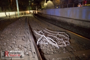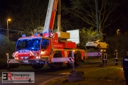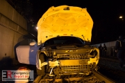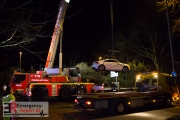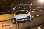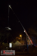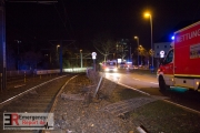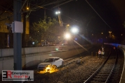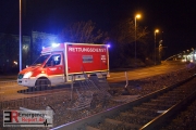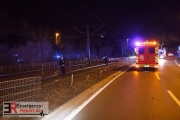 Sonntagnacht geriet die Fahrerin eines PKW von der Oberkasseler Brücke kommend auf das Gleisbett der U-Bahn. Bei dem Unfall verletzte sie sich leicht. Der weiße Audi befuhr stadteinwärts die Oberkasseler Brücke. Kurz nach der U-Bahn Haltestelle Tonhalle/Ehrenhof verlor die Fahrerin vermutlich die Kontrolle und durchbrach den Absperrzaun zu den U-Bahngleisen. Nach ca. 100 Metern in Richtung Rampe, brachte sie das Fahrzeug zum Stehen. Die alarmierten Einsatzkräfte der Feuerwehr befreiten die beiden jungen Frauen aus dem Auto und übergaben sie dem Rettungsdienst. Das Fahrzeug war im vorderen und unteren Bereich beschädigt und konnte daher nicht mit dem Rüstwagen zurückgezogen werden. Daraufhin entschied der Einsatzleiter den Feuerwehrkran nach zu alarmieren. Nach einer aufwendigen Bergungsaktion, hob das Spezialfahrzeug den Audi TT zurück auf die Straße. Während des dreistündigen Einsatzes war der Bahnverkehr gestoppt und die Polizei sperrte vorübergehend den Straßenverkehr. Die Fahrerin kam mit leichten Verletzungen ins Krankenhaus. Die Beifahrerin blieb unverletzt. Es entstand ein Sachschaden von ca. 30.000 EUR.