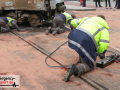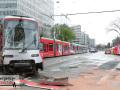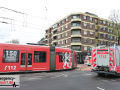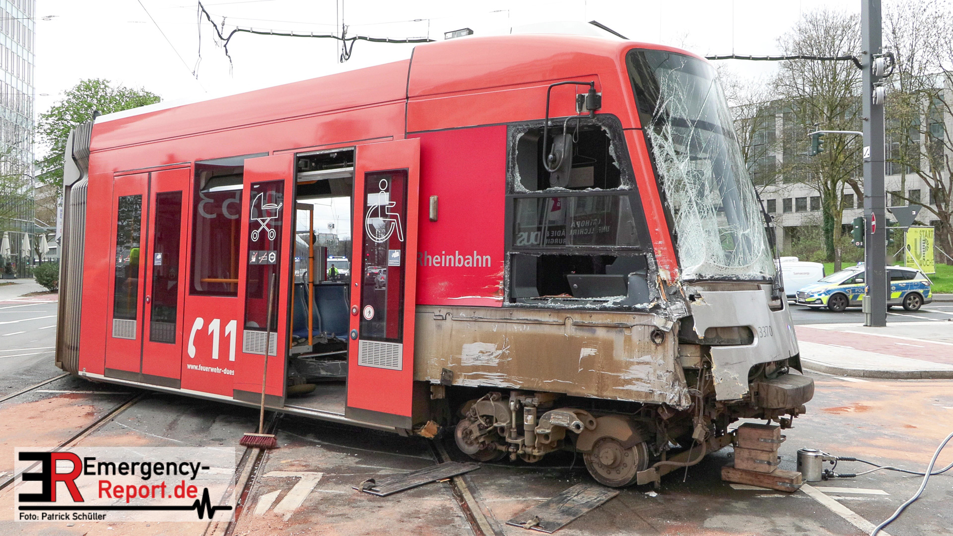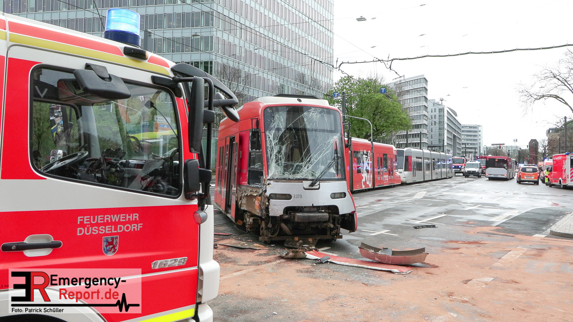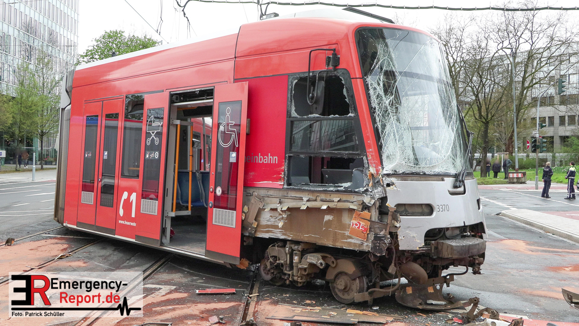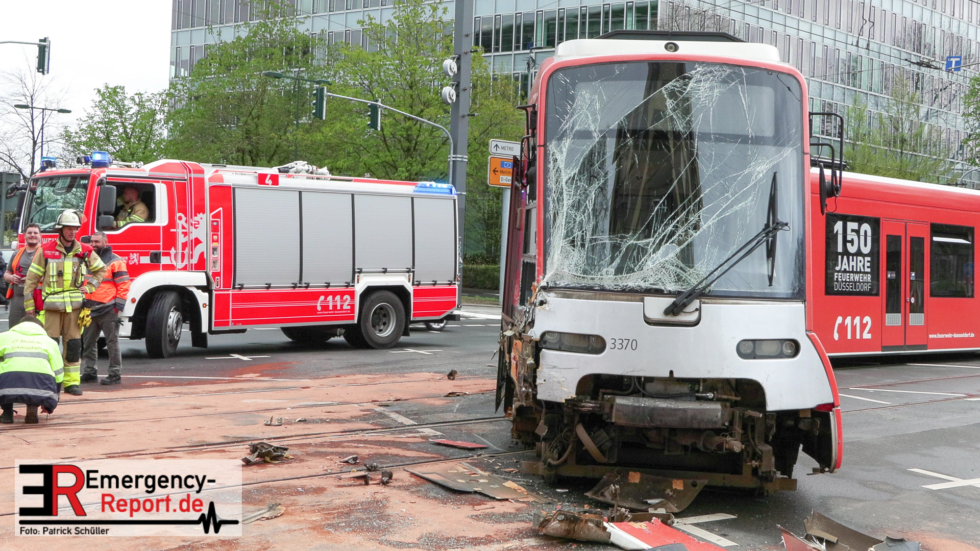 Mittwochmittag um kurz nach 13 Uhr meldete die Leitstelle der Rheinbahn einen Verkehrsunfall zwischen einem Lkw und einer Straßenbahn im Kreuzungsbereich in Grafenberg. Bereits fünf Minuten nach der Alarmierung trafen die ersten Einsatzkräfte an der Unfallstelle ein und bestätigten die Meldung. Aus bislang ungeklärter Ursache war ein Lkw mit einer Straßenbahn kollidiert. Die Bahn hatte die Fahrerseite des Lkw erfasst und dabei den Tank des Fahrzeuges beschädigt, sodass Dieselkraftstoff austrat und großflächig auf die Fahrbahn lief. Durch den Aufprall entgleiste die Bahn, welche zu der Zeit mit Passagieren unterwegs war, von denen sich drei Insassen Verletzungen zu zogen. Zudem wurde der Fahrer des Lkw verletzt. Notärzte sowie Notfallsanitäter betreuten und untersuchten die leicht verletzten Personen, von denen zwei in ein Krankenhaus transportiert wurden. Um ein weiteres Austreten des Dieselkraftstoffes aus dem beschädigten Tank zu verhindern, pumpten Einsatzkräfte den Inhalt mittels Spezialpumpen in ein Fass um und streuten den ausgelaufenen Kraftstoff mit Bindemittel ab. Zur Ermittlung der Unfallursache hat die Polizei ihre Arbeit aufgenommen.