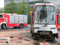 Aus bislang ungeklärter Ursache kam es am Mittwochmittag zu einem Verkehrsunfall zwischen einem LKW und einer Straßenbahn im Kreuzungsbereich. Bei dem Aufprall entgleiste die Straßenbahn und der Tank des LKW wurde beschädigt sodass Kraftstoff austrat. Vier Personen verletzten sich bei dem Verkehrsunfall leicht.