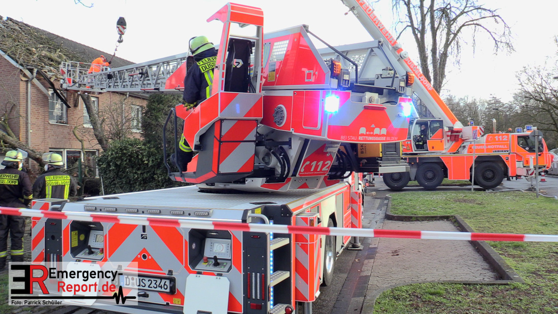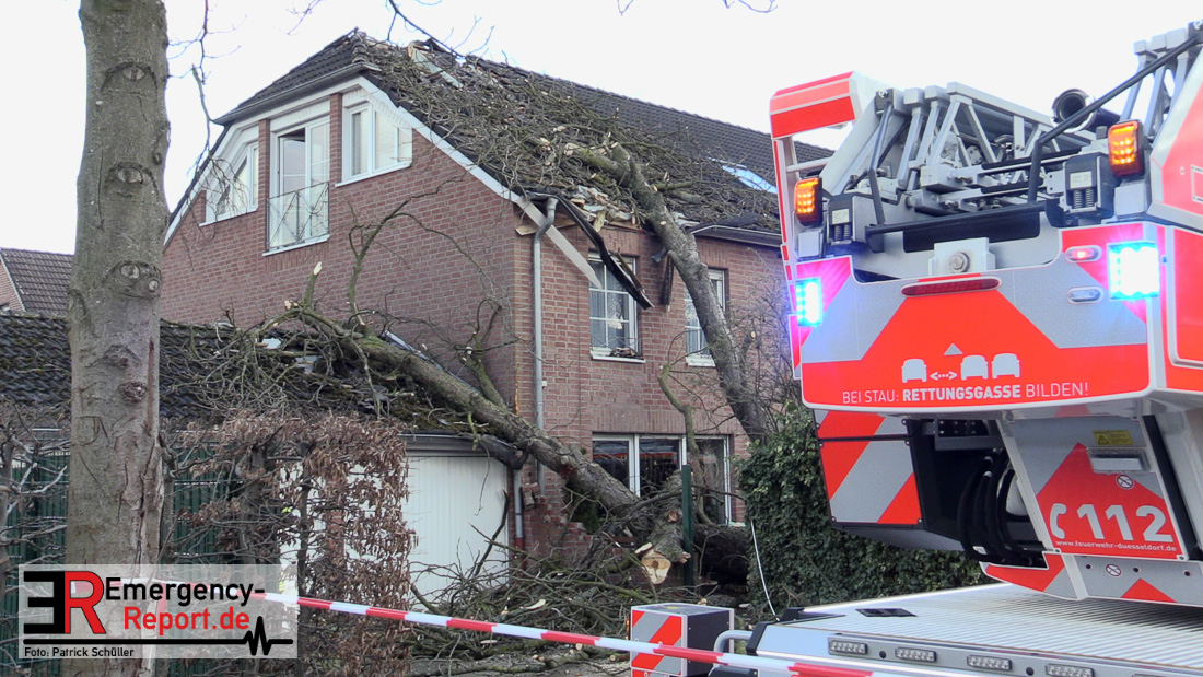 Die Feuerwehr Düsseldorf wurde am Nachmittag des 13.03.2021 zu einem Sturmschaden auf die Straße „Am Garather Mühlenbach“ alarmiert.