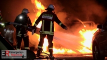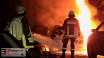 Die Feuerwehr Düsseldorf wurde am 13.10.2017 gegen 02:35 Uhr zu einem Brandeinsatz auf die Ziegelstraße alarmiert. Beim Eintreffen der Feuerwehr brannten zwei Autos in voller Ausdehnung.