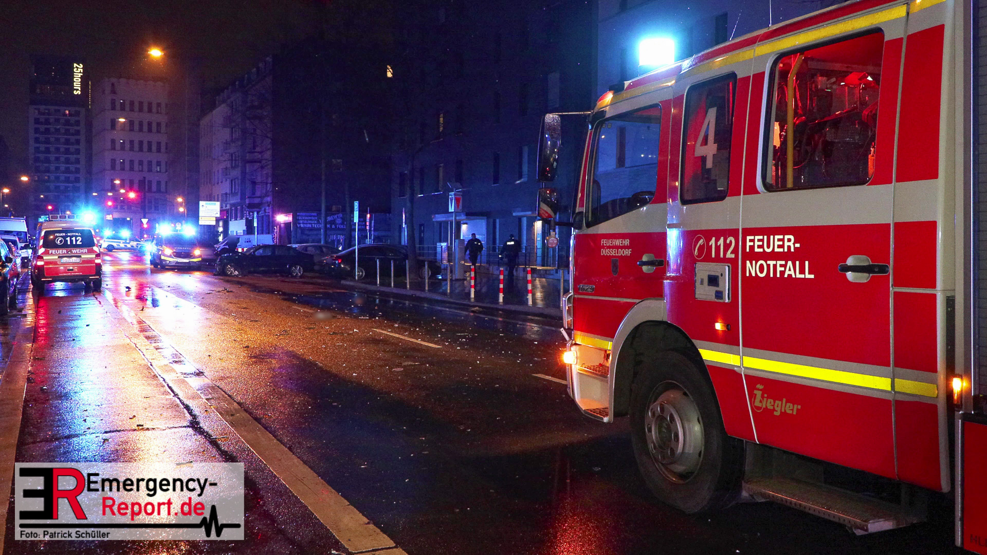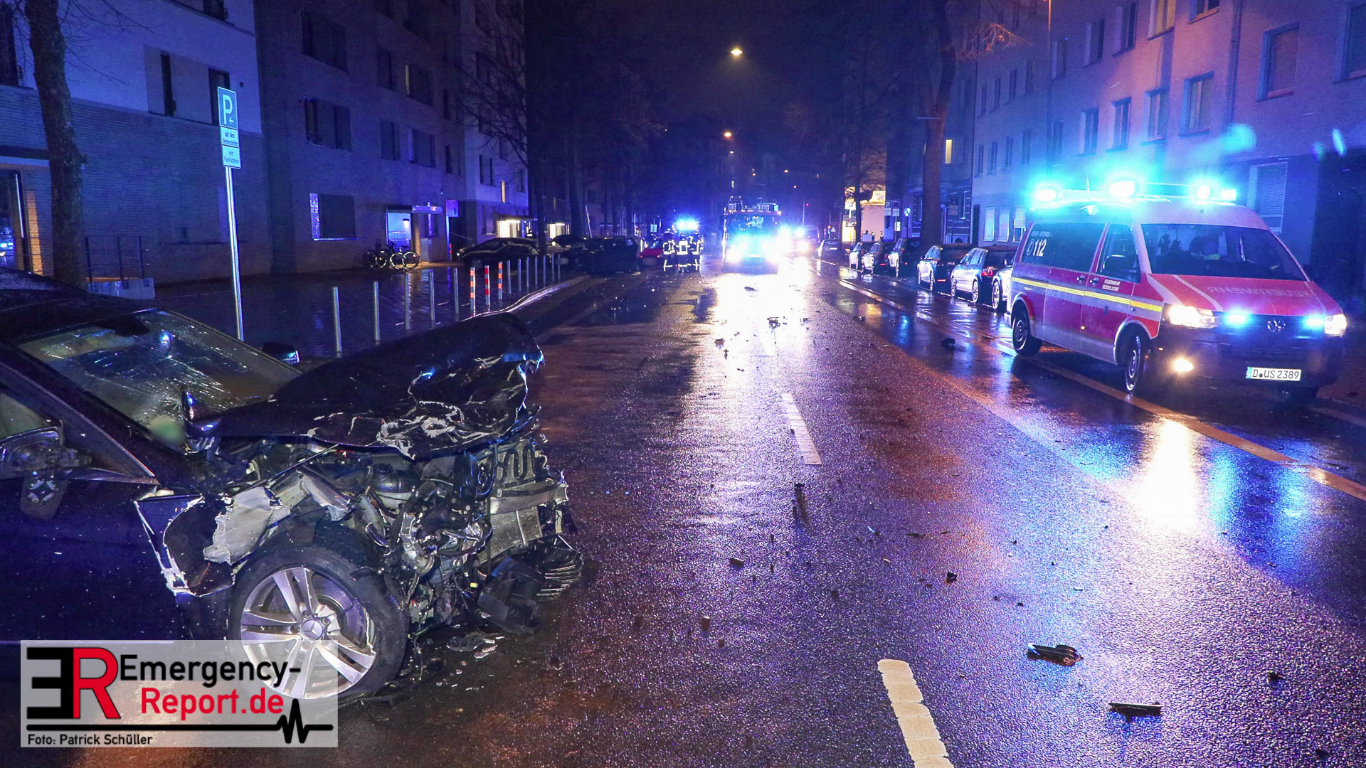 Bei einem schweren Verkehrsunfall auf der Worringer Straße am späten Sonntagabend wurden insgesamt sechs Menschen verletzt, drei von ihnen schwer. Die Worringer Straße musste in beide Fahrtrichtungen voll gesperrt werden.