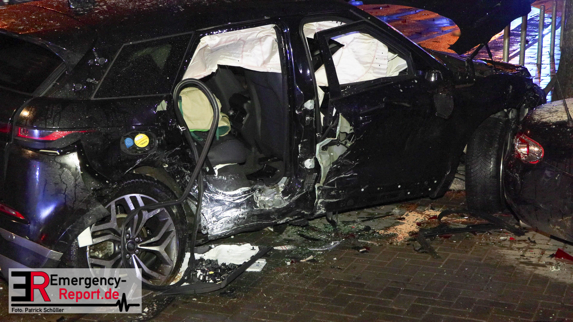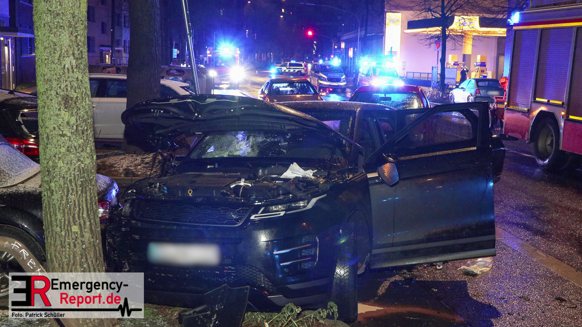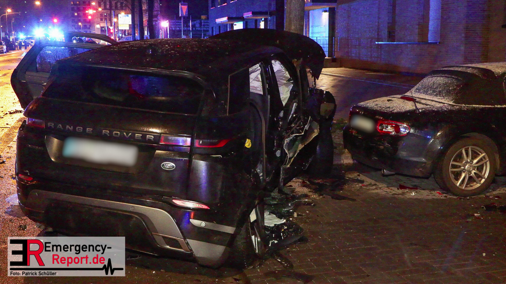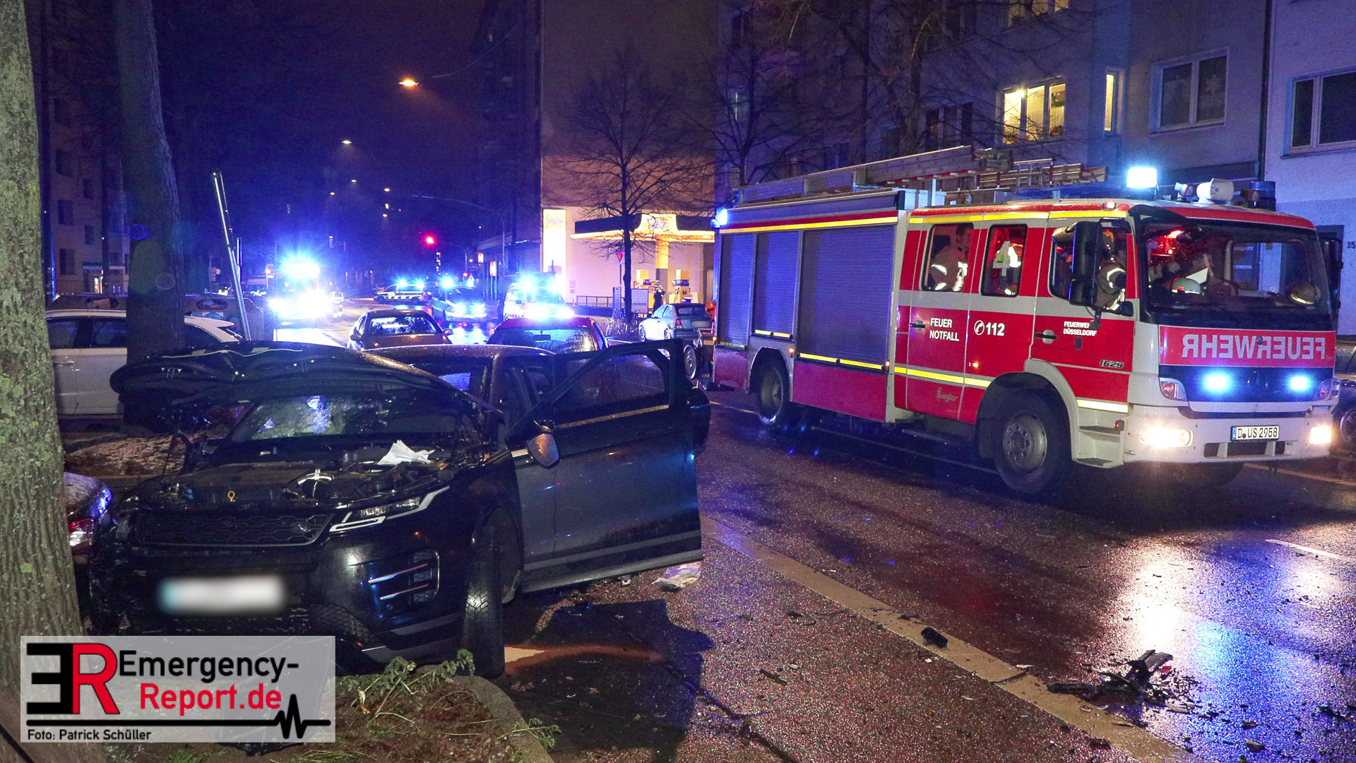 Durch die Wucht des Aufpralls touchierte der SUV noch mehrere geparkte Fahrzeuge und kam frontal vor einem Baum zum Stehen. Der 35-Jährige und sein 39 Jahre alter Beifahrer wurden schwer verletzt in umliegende Krankenhäuser eingeliefert. Von den vier Insassen des Mercedes wurden der Fahrer sowie zwei 31- und 26-jährige Insassen leicht, eine 40 Jahre alte Frau lebensgefährlich verletzt.