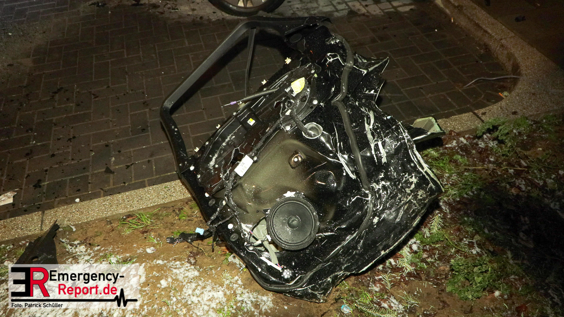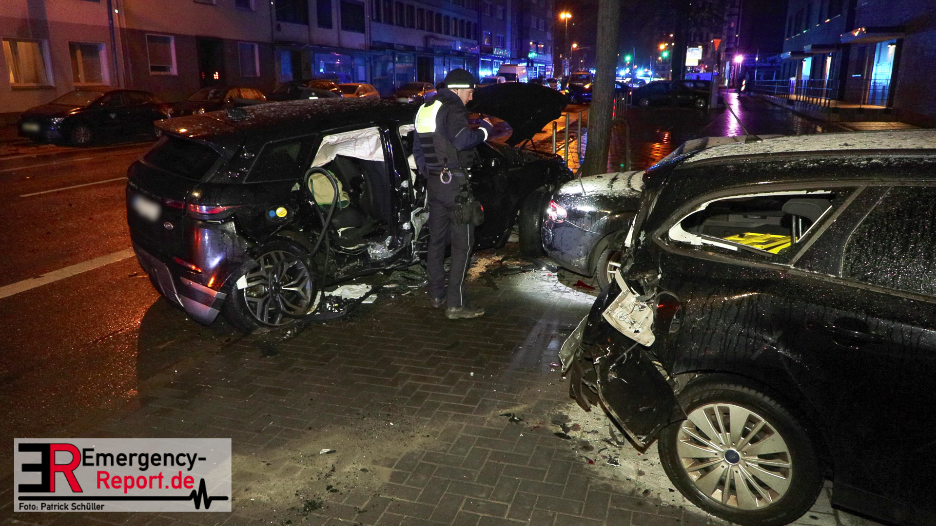 Kurz vor 21 Uhr erhielt die Leitstelle mehrere Anrufe, in denen ein schwerer Verkehrsunfall auf der Worringer Straße geschildert wurde. Vor Ort trafen die eingesetzten Beamtinnen und Beamten auf ein größeres Trümmerfeld.