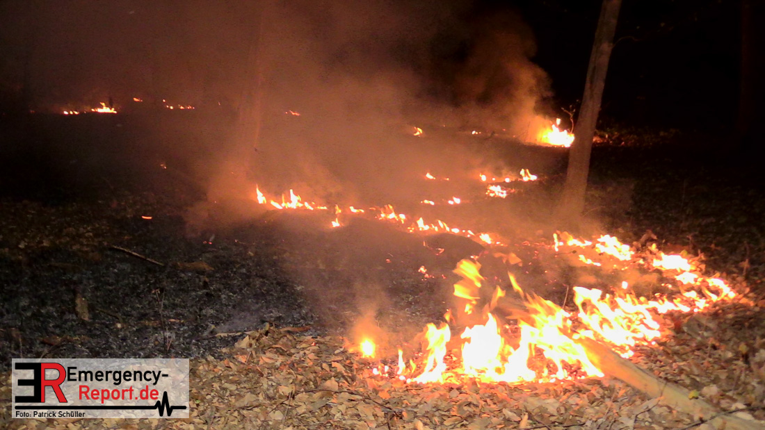 Gegen kurz vor zehn am Dienstagabend wurde der Feuerwehr Düsseldorf ein Waldbrand im Bereich südlich des Gerresheimer Waldfriedhof gemeldet. Der Leitstellenmitarbeiter entsendete daraufhin die zuständige Wache aus Gerresheim sowie weitere Unterstützung von den Wachen Werstener Feld, Frankfurter Straße, die Freiwillige Feuerwehr Unterbach sowie den Führungsdienst zur Einsatzstelle. Etwa zeitgleich alarmierte die Kreisleitstelle Mettmann die Feuerwehr Erkrath ebenfalls zu einem Waldbrand an die Stadtgrenze zu Düsseldorf. An der Einsatzstelle konnten die Einsatzkräfte aus Düsseldorf und Erkrath zwei Brandstellen in unmittelbarer Nähe zu einander feststellen. Insgesamt brannte es dort auf circa 500 Quadratmeter. Die beiden Einsatzleiter aus den benachbarten Städten stimmten sich gemeinsam in einer kurzen Lagebesprechung über das weitere Vorgehen zur Brandbekämpfung ab. Die Feuerwehr Düsseldorf übernahm dabei den Abschnitt nördlich der dort verlaufenden Bahnstrecke und setzte zur Brandbekämpfung zwei C-Rohre und mehrere Löschtrupps ein. Durch den Einsatzleiter konnte bereits nach einer Stunde die Meldung „Feuer in Gewalt“ an die Leitstelle der Feuerwehr Düsseldorf gemeldet werden. Im Anschluss an die Löscharbeiten führten die Feuerwehrleute noch umfangreiche Nachlöscharbeiten durch und löschten die letzten Glutnester. Frühzeitig wurde ein Mitarbeiter des Regionalforstamtes durch die Feuerwehr Düsseldorf über den Brand informiert. Damit für das Löschen des Feuers eine ausreichende Löschwasserversorgung sichergestellt war, unterstützen sich kurzerhand die Einsatzkräfte aus der Landeshauptstadt und Erkrath gegenseitig und installierten von der Düsseldorfer Straße aus auf einer Gesamtstrecke von rund einem Kilometer Schlauchleitungen. Die noch in der Nacht routinemäßig durchgeführte Brandnachschau verlief negativ, es waren keine Glutnester erneut entflammt.