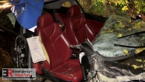 Beim Eintreffen der Einsatzkräfte stellte sich heraus, dass ein Fahrzeug von der Fahrbahn abgekommen und gegen einen Baum geprallt war. Während der Fahrer glücklicherweise nur leichtere Verletzungen erlitt, war der Beifahrer im Fahrzeug eingeschlossen.