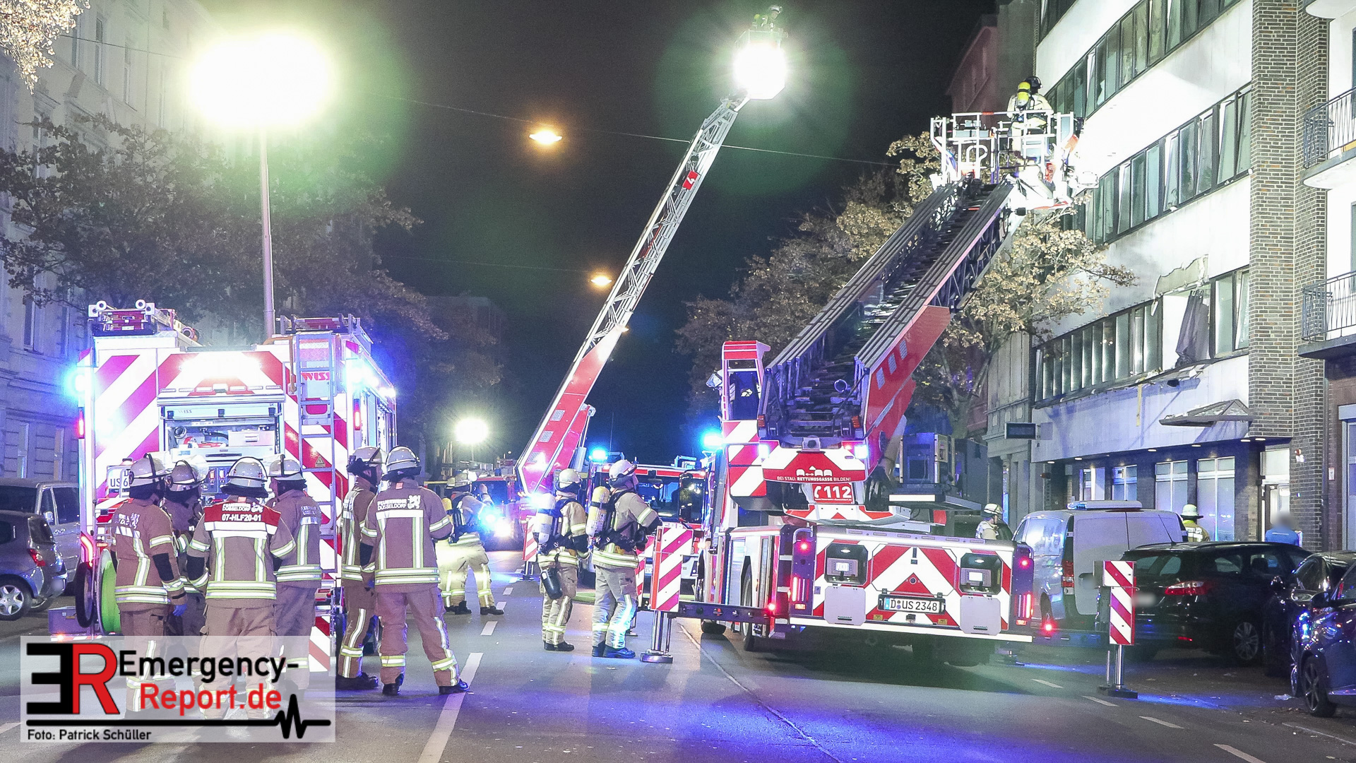 Die Leitstelle der Feuerwehr Düsseldorf wurde am Freitag den 14.11.2025 um 20:46 Uhr über die automatische Brandmeldeanlage einer Obdachlosenunterkunft in Düsseldorf-Oberbilk über ein Brandereignis informiert. Als sich die ersten Einsatzkräfte auf den Weg in die Markenstraße befanden, meldeten Anrufer der Leitstelle das es zu einer Verpuffung/Explosion in dem Gebäude gekommen sei. Umgehend alarmierte die Leitstelle weitere Einsatzkräfte, darunter auch Einheiten der freiwilligen Feuerwehr, in die Markenstraße. Als die Einsatzkräfte vor Ort eintrafen, konnten diese das Meldebild bestätigen. Umgehend entsandte der Einsatzleiter mehrere Einsatzkräfte in das Gebäude um nach Personen zu suchen und etwaige Folgebrände zu löschen. Ein Großteil der Bewohner hatte bereits vor Eintreffen der Feuerwehr das Gebäude selbstständig verlassen. Für die Bewohner stand für die Dauer des Feuerwehreinsatzes ein Bus der Feuerwehr Düsseldorf bereit in welchem die Bewohner gesammelt und untersucht werden konnten. Nach erfolgter Kontrolle des betroffenen Gebäudes sowie der Nachbargebäude konnte durch das Bauaufsichtsamt eine erste Begutachtung der Schäden durchgeführt werden. Ein Bewohner wurde mit leichten Verletzungen in ein Düsseldorfer Krankenhaus durch den Rettungsdienst transportiert. Da die Gasversorgung des Gebäudes in Absprache mit den Stadtwerken abgestellt wurde, sind die Bewohner auf andere Einrichtungen innerhalb der Stadt Düsseldorf verteilt worden. Die letzten der rund 80 Einsatzkräfte machten sich nach fast 2 Stunden auf den Rückweg zu ihren Standorten. Die Polizei hat die Ermittlungen zur Ursache aufgenommen. Zur Schadenshöhe können keine Angaben gemacht werden.