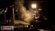 Kurz vor Mitternacht erreichte die Leitstelle der Feuerwehr Düsseldorf ein Notruf, eines im Hafen liegenden Frachtschiffes. Sofort wurden Einsatzkräfte der Hütten- und Münsterstraße sowie das Feuerlöschboot und die Rettungstaucher zum Einsatzort entsandt. Als die ersten Einsatzkräfte eintrafen, war im vorderen Bereich, des ca. 150m langen Schiffes, eine Rauchentwicklung wahrnehmbar. Daraufhin wurde die Brandbekämpfung sowohl über die Landseite als auch über das längs gegangene Feuerlöschboot eingeleitet. Die Einsatzkräfte hatten dabei einen Höhenunterschied von ca. 10m zu überwinden.