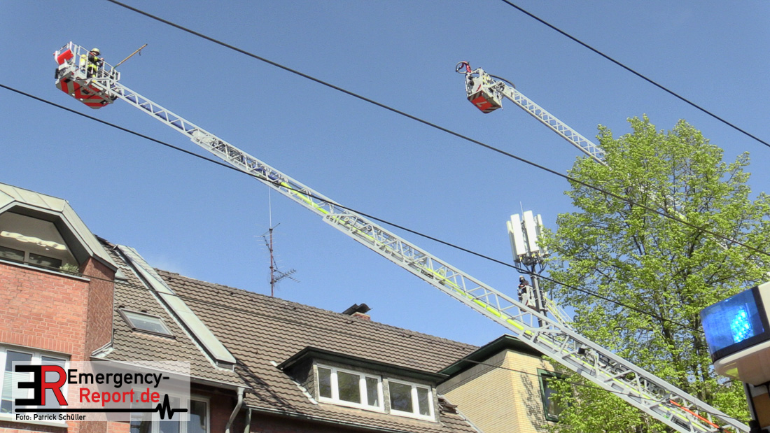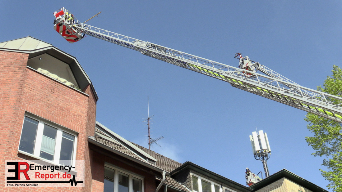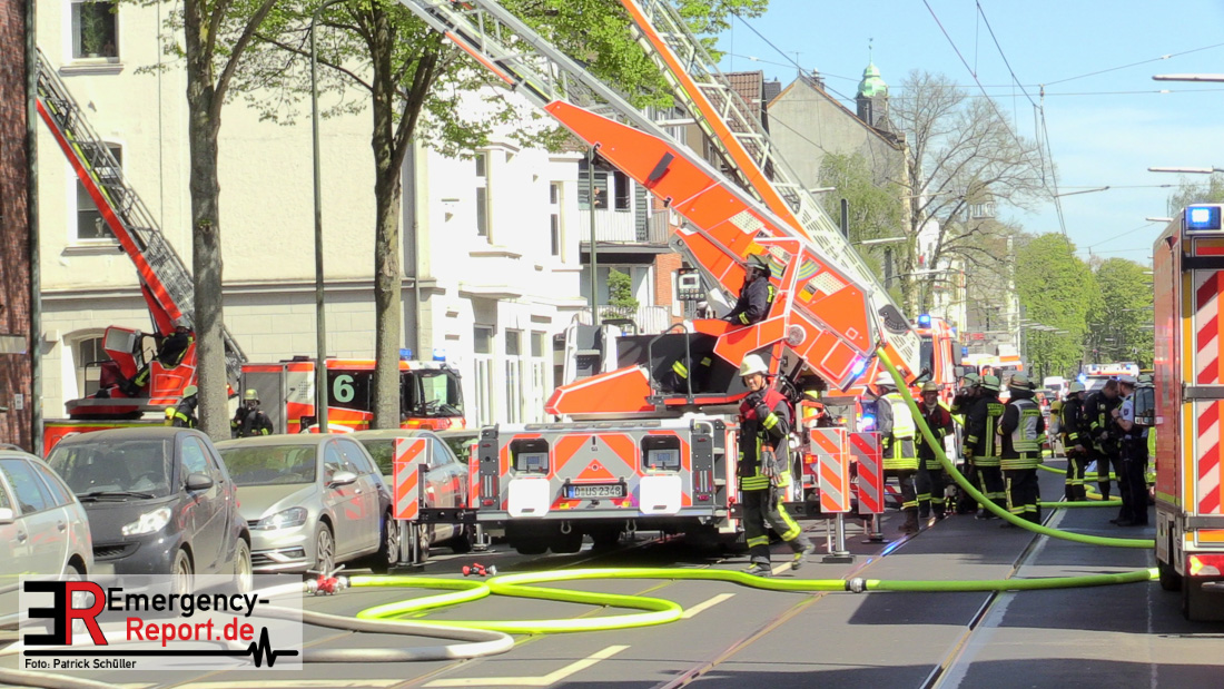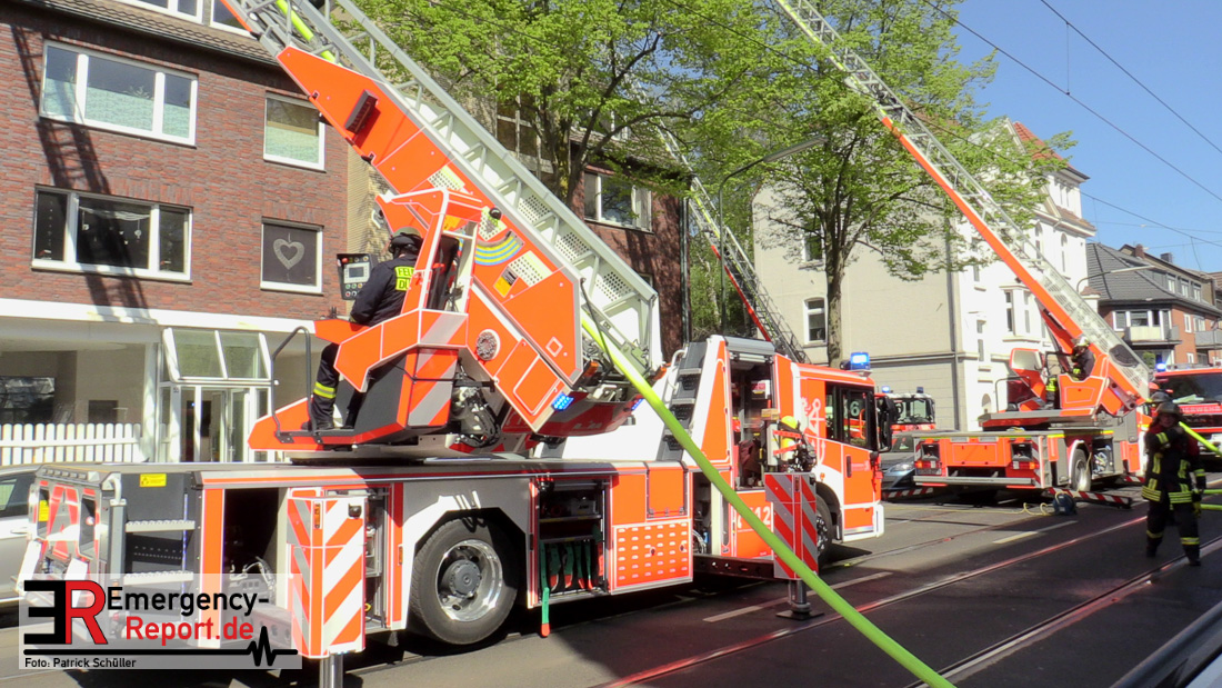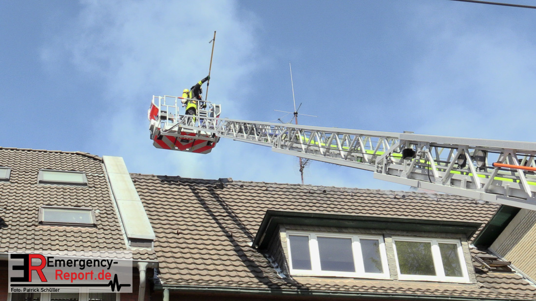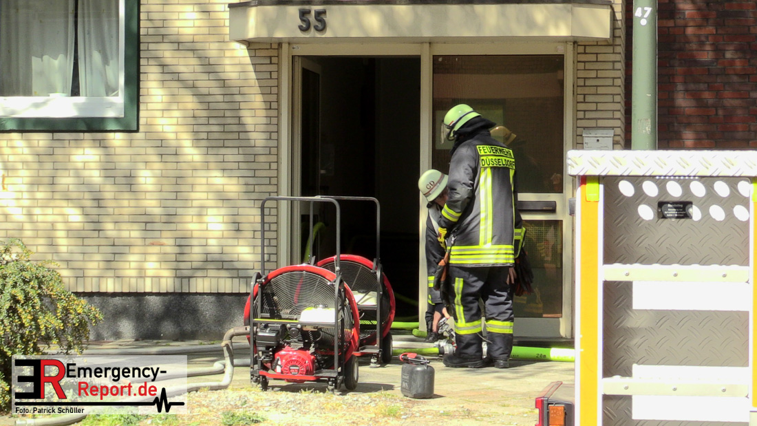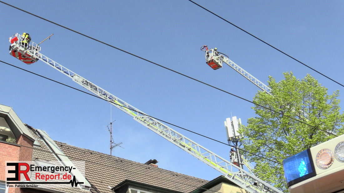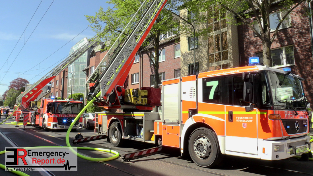 Gegen 13:37 Uhr gingen bei der Leitstelle der Feuerwehr Düsseldorf mehrere Anrufe ein. Die Anrufer meldeten eine starke Rauchentwicklung, im Bereich des Daches eines Mehrfamilienhauses. Umgehend entsandte der Leitstellendisponent Einheiten der Feuerwachen Frankfurter Straße, Werstener Feld, Posener Straße und Hüttenstraße. Schon kurz vor dem Eintreffen an der Einsatzstelle, meldeten die ersten Einheiten eine starke Rauchentwicklung aus dem Dach eines Mehrfamilienhauses. Nachdem die ersten Einheiten die Einsatzstelle erreichten wurden direkt die ersten Löschmaßnahmen vorbereitet. Erfreulicherweise hatten schon alle Bewohner eigenständig das Haus verlassen. 6 betroffene Personen wurden durch den städtischen Rettungsdienst in Augenschein genommen und zum Glück war niemand ernsthaft verletzt. Lediglich eine Person wurde vorsorglich in ein Krankenhaus transportiert. Da die rückwärtige Dachseite betroffen war, gestalteten sich die Löschmaßnahmen anspruchsvoll. Das Dach musste nun von innen geöffnet werden, um die Glutnester zu erreichen und abzulöschen. Trotzdem konnten die eingesetzten Kräfte nach zirka einer Stunde „Feuer in Gewalt“ melden. Die betreffende Wohnung brannte vollständig aus und ist erst einmal nicht mehr bewohnbar. Bei dem Einsatz waren knapp 60 Einsatzkräfte von Feuerwehr und Rettungsdienst im Einsatz. Gegen 17:00 Uhr war der Einsatz für die Feuerwehr beendet. Die Kriminalpolizei hat die Ermittlungen, schon während des Feuerwehreinsatzes, zur Brandursache aufgenommen.