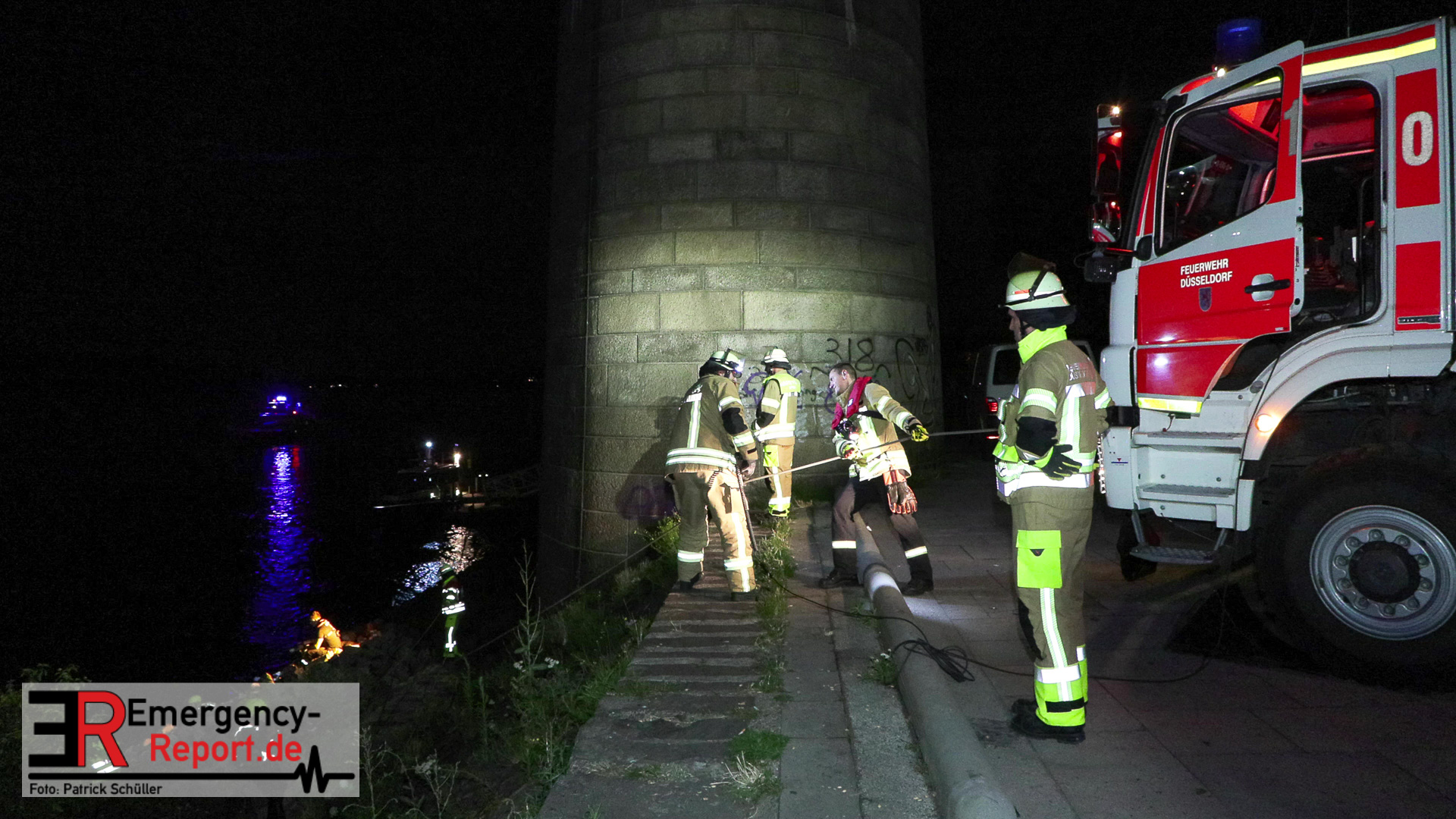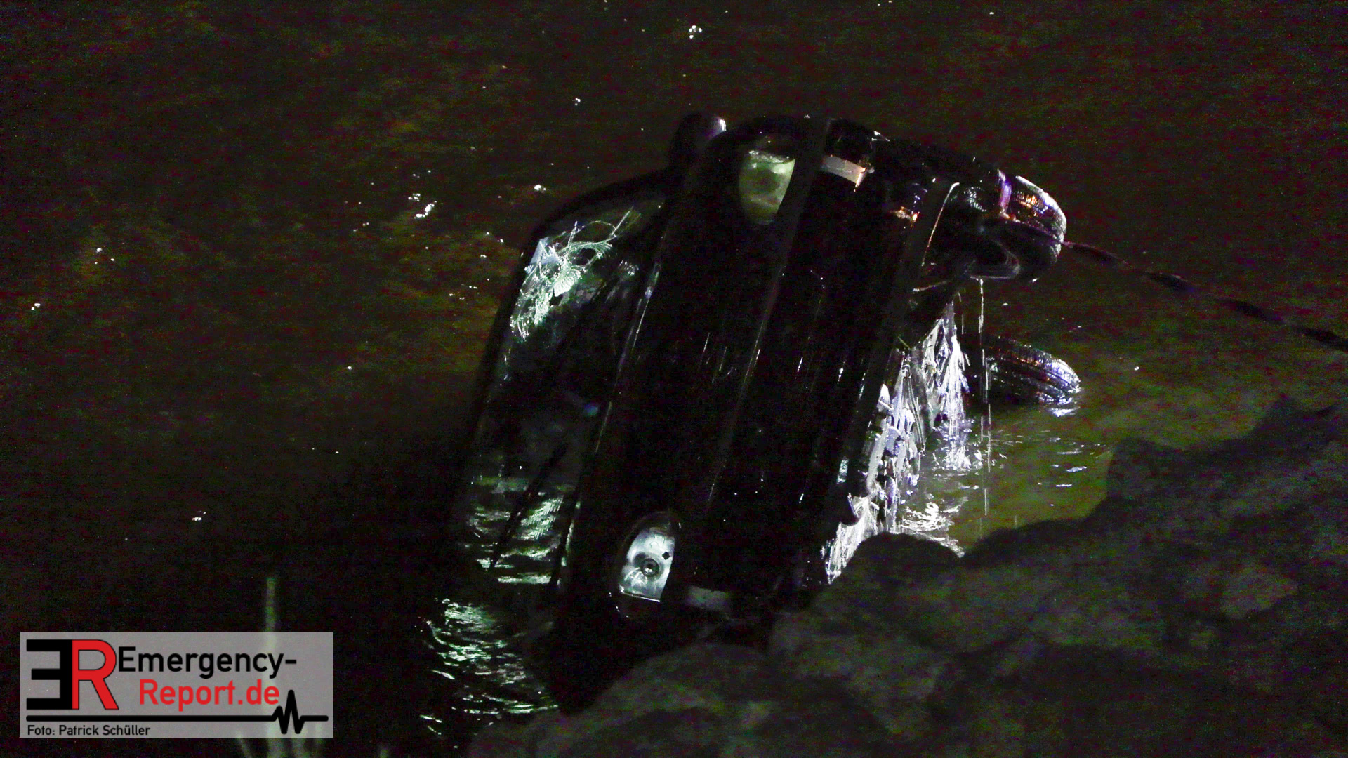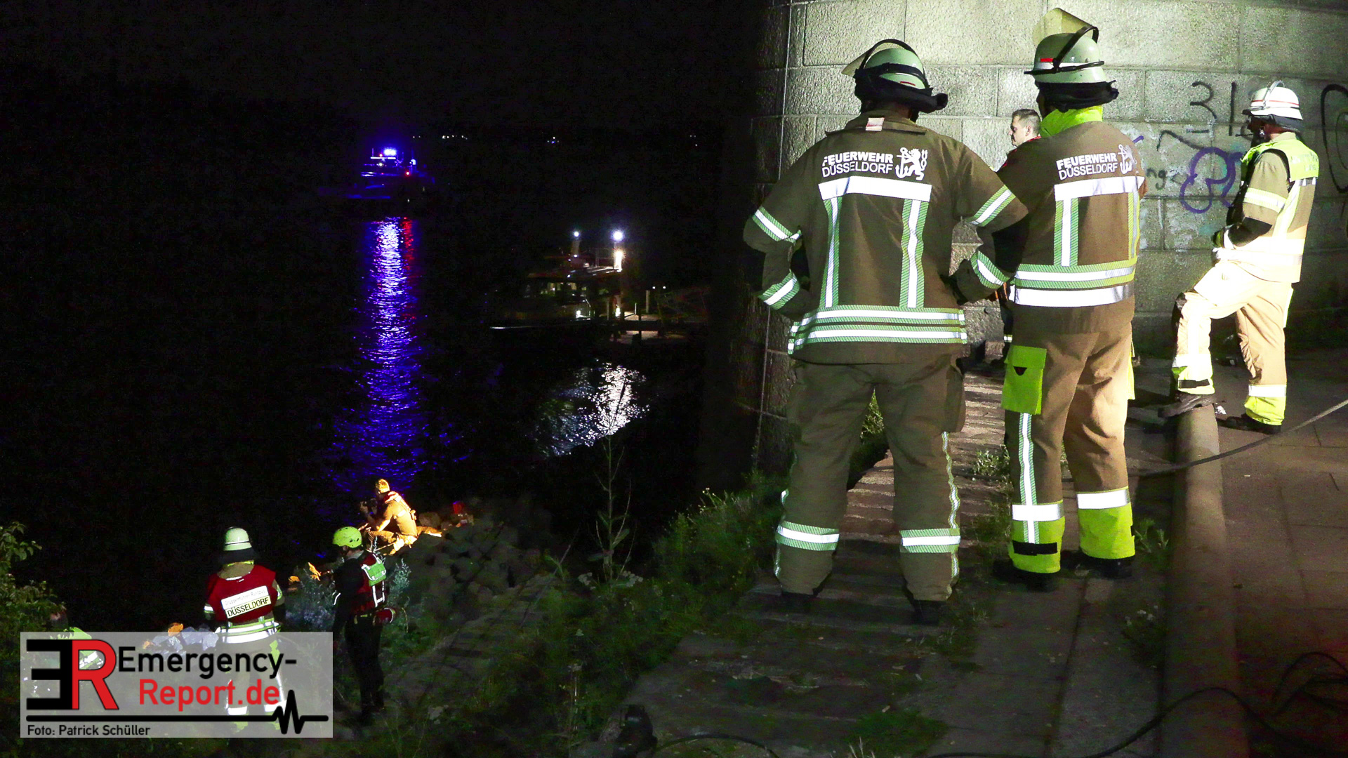 Am späten Freitagabend erreichte ein Notruf die Feuerwehrleitstelle mit der Meldung Person im Rhein. Aufgrund der unklaren Lage wurden von der Leitstelle mehrere Rettungsboote, Taucher, Kräfte des Rettungsdienstes und landgebundene Feuerwehrkräfte entsandt. Vor Ort trafen die Einheiten auf zwei durchnässte Personen. Diese wurden sofort vom Rettungsdienst betreut. Sie waren unverletzt und gaben an, dass sie sich selbst aus einem PKW retten konnten. Das Fahrzeug ist vermutlich bei einem Wendemanöver zu nah an die Rheinböschung geraten und abgerutscht. Bei Eintreffen der Feuerwehr war das Fahrzeug nicht mehr zu sehen. Aufgrund der Situation wurde mit Unterstützung der Wasserschutzpolizei und der DRK Wasserwacht die Unglücksstelle abgesichert. Der abgetauchte Wagen wurde rechtsrheinisch in der Nähe der Theodor-Heuss-Brücke vermutet. Die Besatzung des Feuerwehrlöschboots konnte das versunkene Auto mithilfe des Sonars lokalisieren. Das Wasserschifffahrtsamt bestellte einen Berufstaucher, der bei der starken Rheinströmung zum Fahrzeug tauchte, um es mit Anschlagsmittel zu sichern. Der Tauchgang wurde von den Tauchern der Feuerwehr begleitet. Das nun gesicherte Fahrzeug konnte mit einer Seilwinde aus dem Rhein gezogen und sicher abgestellt werden. Nach circa 4 Stunden konnten die letzten der insgesamt 40 eingesetzten Kräfte der Feuerwehr Düsseldorf den Einsatz beenden.