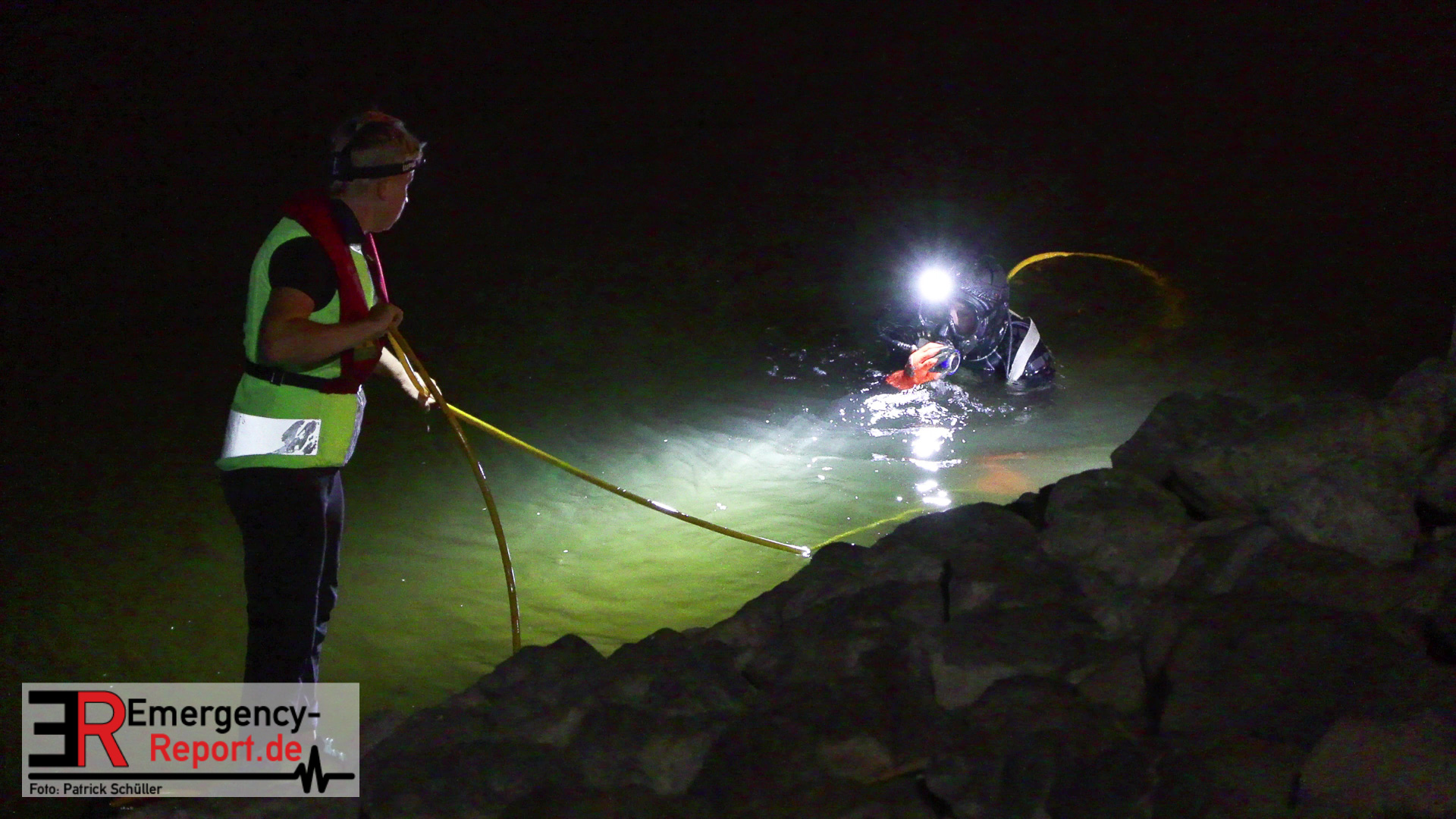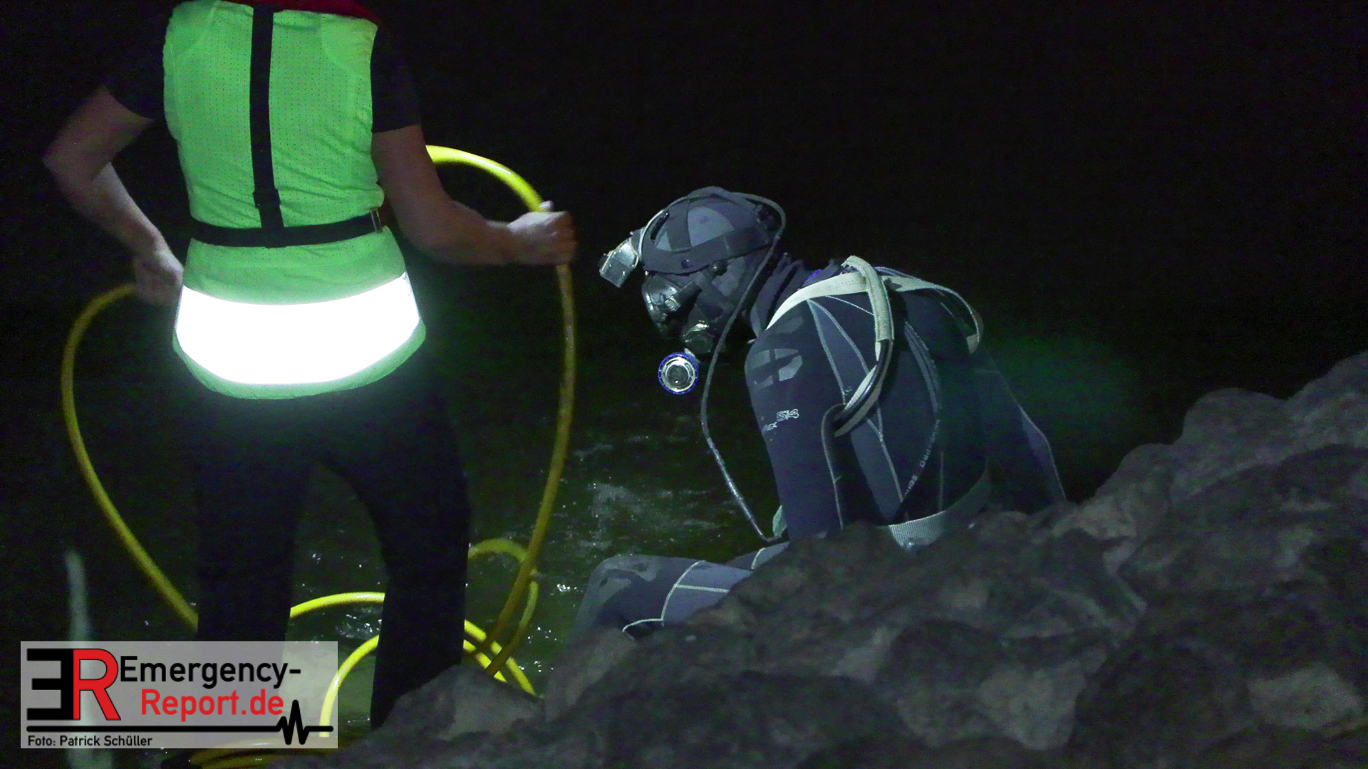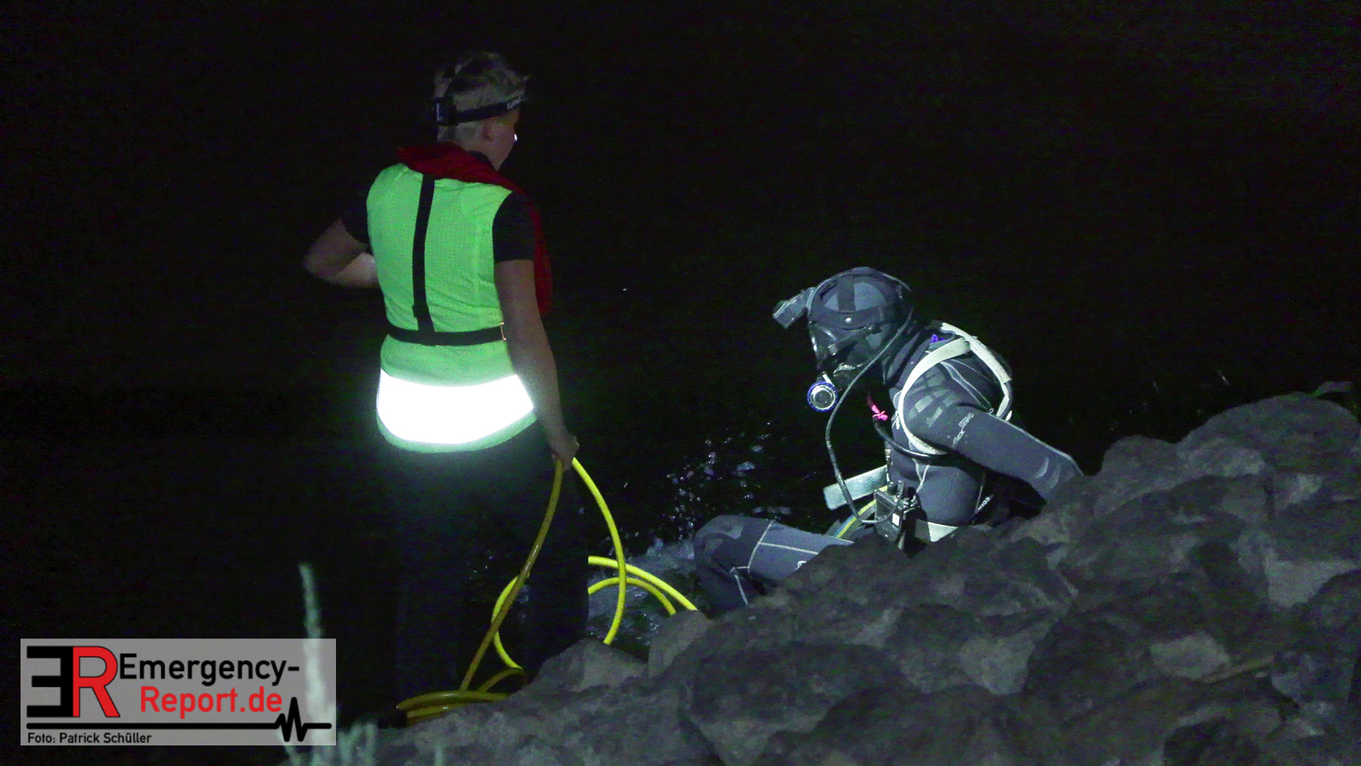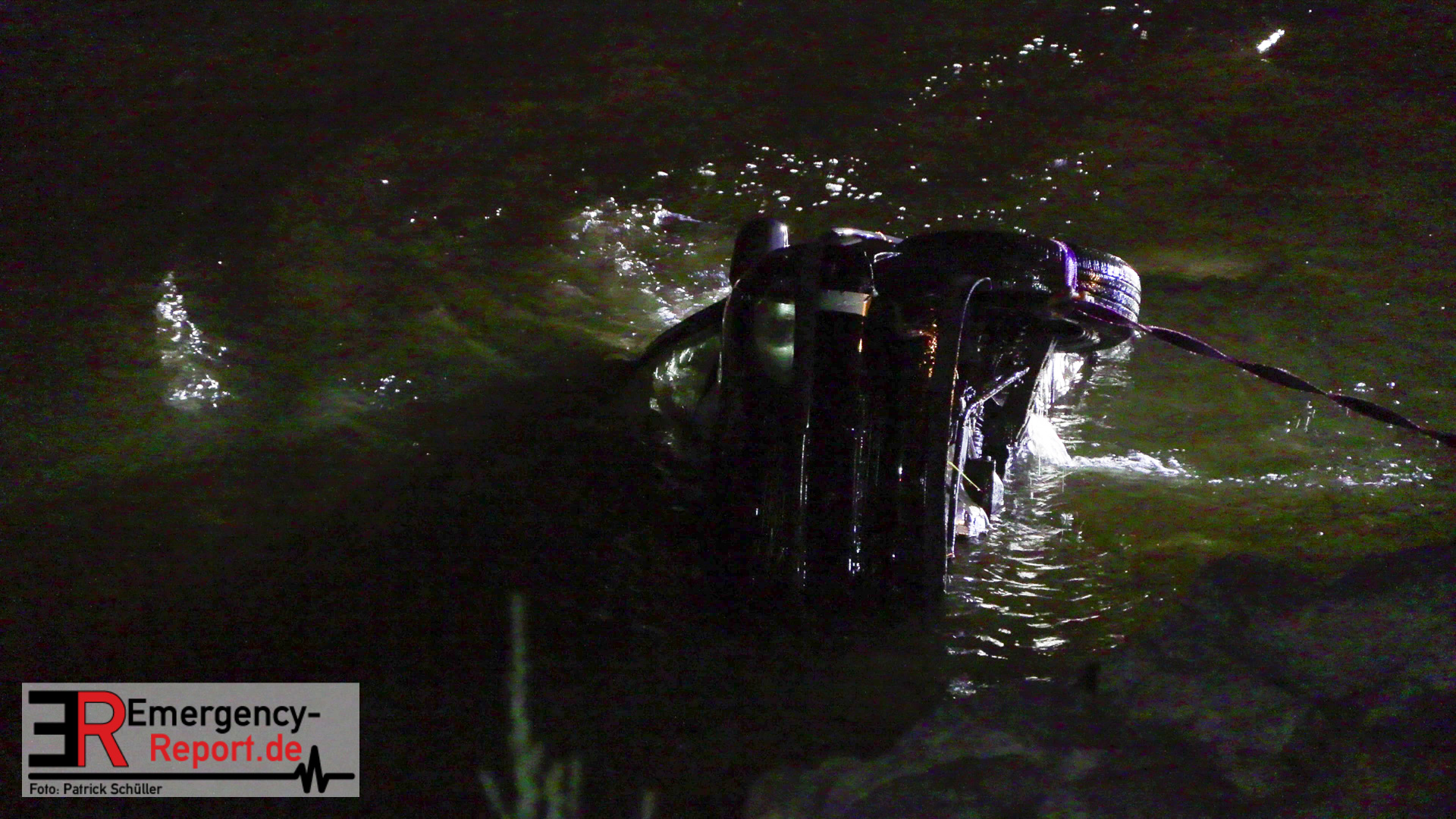 Am späten Freitagabend erreichte ein Notruf die Feuerwehrleitstelle mit der Meldung Person im Rhein. Aufgrund der unklaren Lage wurden von der Leitstelle mehrere Rettungsboote, Taucher, Kräfte des Rettungsdienstes und landgebundene Feuerwehrkräfte entsandt. Vor Ort trafen die Einheiten auf zwei durchnässte Personen. Diese wurden sofort vom Rettungsdienst betreut. Sie waren unverletzt und gaben an, dass sie sich selbst aus einem PKW retten konnten. Das Fahrzeug ist vermutlich bei einem Wendemanöver zu nah an die Rheinböschung geraten und abgerutscht. Bei Eintreffen der Feuerwehr war das Fahrzeug nicht mehr zu sehen. Aufgrund der Situation wurde mit Unterstützung der Wasserschutzpolizei und der DRK Wasserwacht die Unglücksstelle abgesichert. Der abgetauchte Wagen wurde rechtsrheinisch in der Nähe der Theodor-Heuss-Brücke vermutet. Die Besatzung des Feuerwehrlöschboots konnte das versunkene Auto mithilfe des Sonars lokalisieren. Das Wasserschifffahrtsamt bestellte einen Berufstaucher, der bei der starken Rheinströmung zum Fahrzeug tauchte, um es mit Anschlagsmittel zu sichern. Der Tauchgang wurde von den Tauchern der Feuerwehr begleitet. Das nun gesicherte Fahrzeug konnte mit einer Seilwinde aus dem Rhein gezogen und sicher abgestellt werden. Nach circa 4 Stunden konnten die letzten der insgesamt 40 eingesetzten Kräfte der Feuerwehr Düsseldorf den Einsatz beenden.