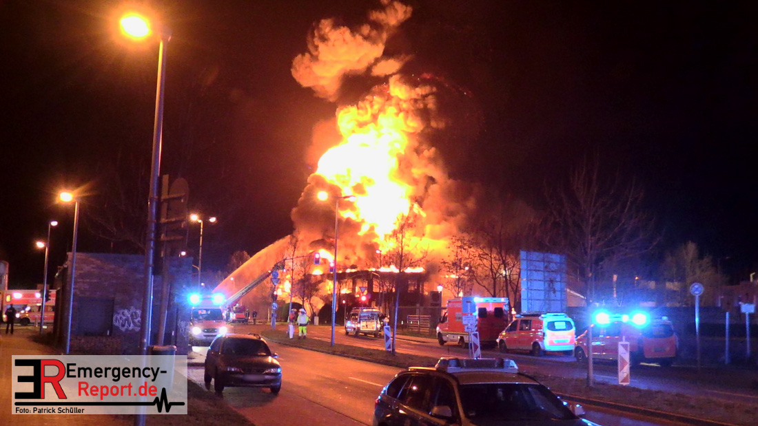 Am Donnerstag Abend wurde die Feuerwehr Düsseldorf über die Notrufnummer 112 über ein Feuer in einem Gewerbeobjekt in Heerdt informiert. Durch einen Leitstellenmitarbeiter wurde umgehend die zuständigen Wachen Oberkassel, Pempelfort und Friedrichstadt sowie der Technik und Kommunikationszug der Freiwilligen Feuerwehr zur Einsatzstelle entsendet. Als die ersten Einsatzkräfte bereits sechs Minuten nach der Alarmierung an der Einsatzstelle eintrafen, schlugen bereits Flammen aus Teilen des Daches lichterloh in den Nachthimmel. Der Einsatzleiter leitete umgehend die Brandbekämpfung ein und ließ über die Leitstelle weitere Einsatzkräfte zur Unterstützung alarmieren. Das Feuer war bereits zu diesem frühen Zeitpunkt so stark fortgeschritten, dass sich die Flammen schnell auf fast das ganze Gebäude ausbreiteten.
