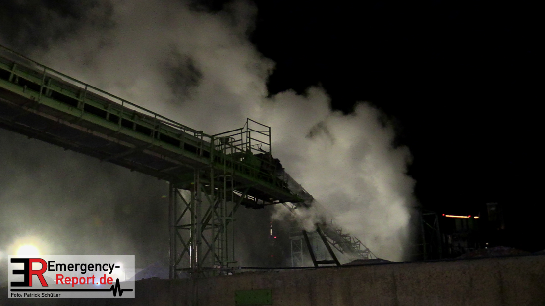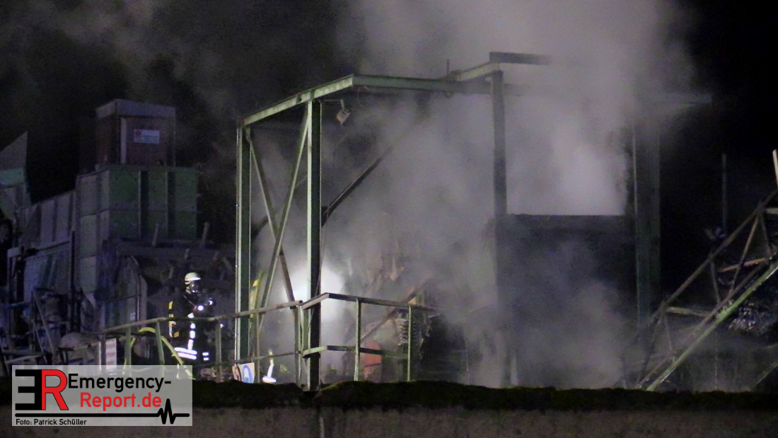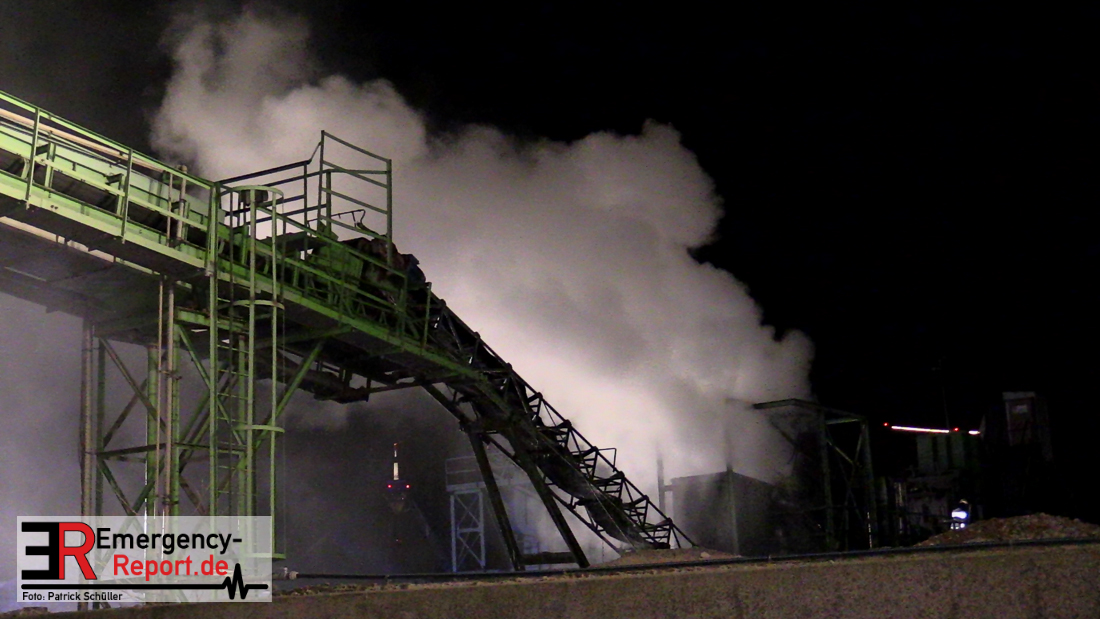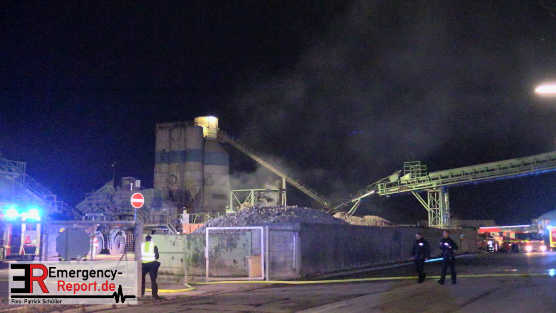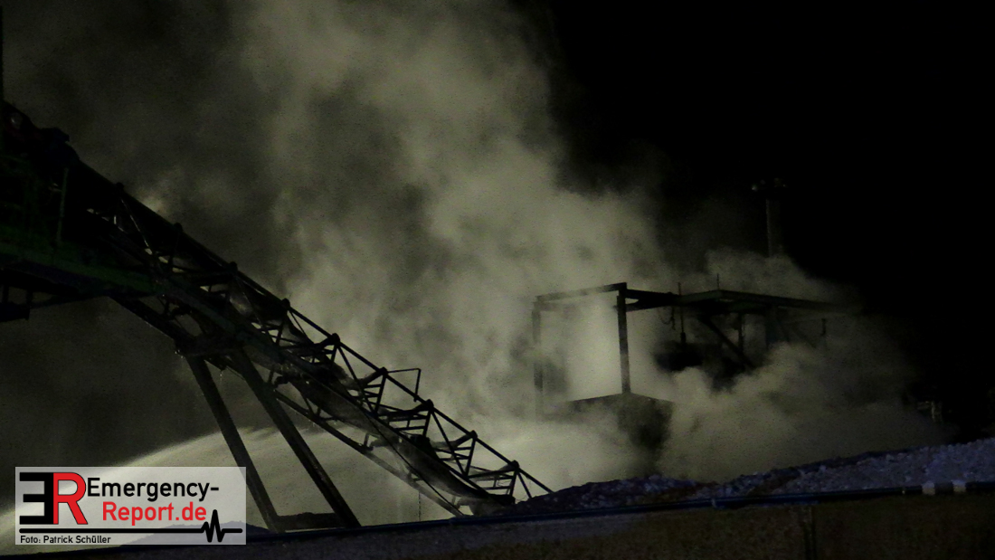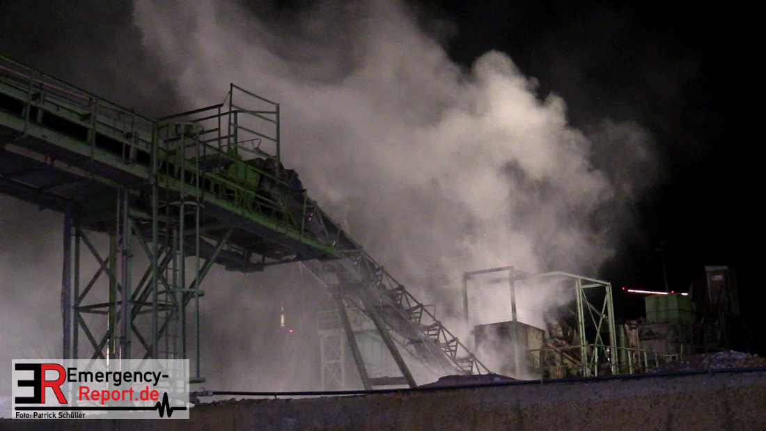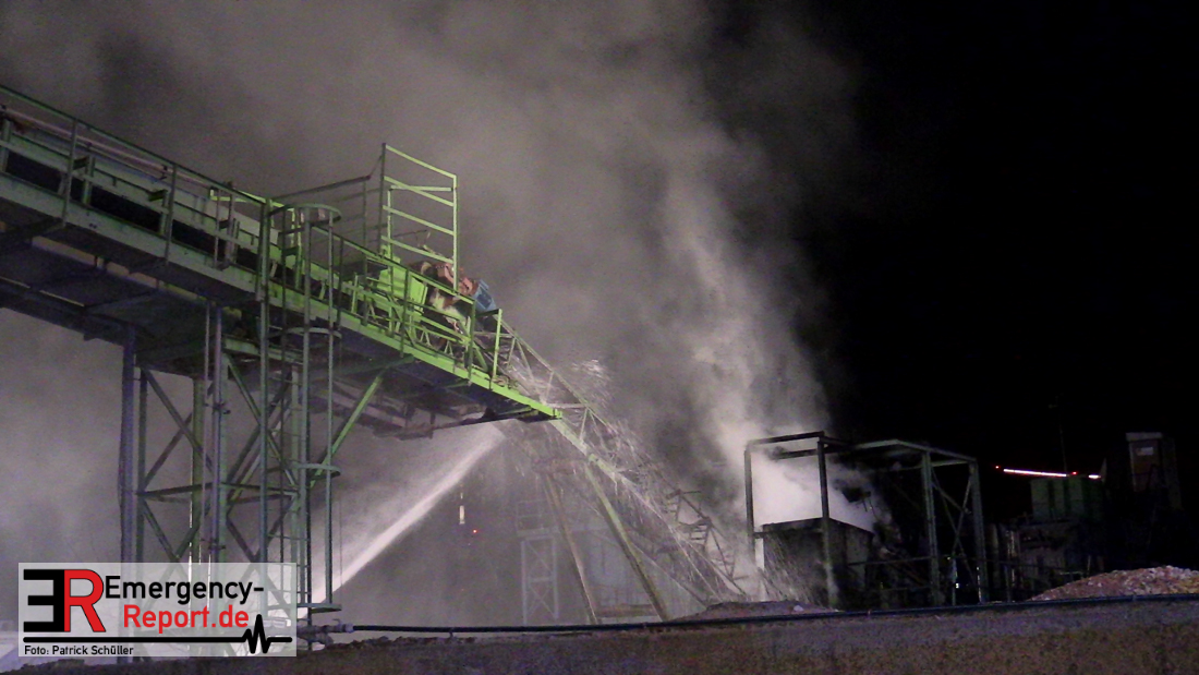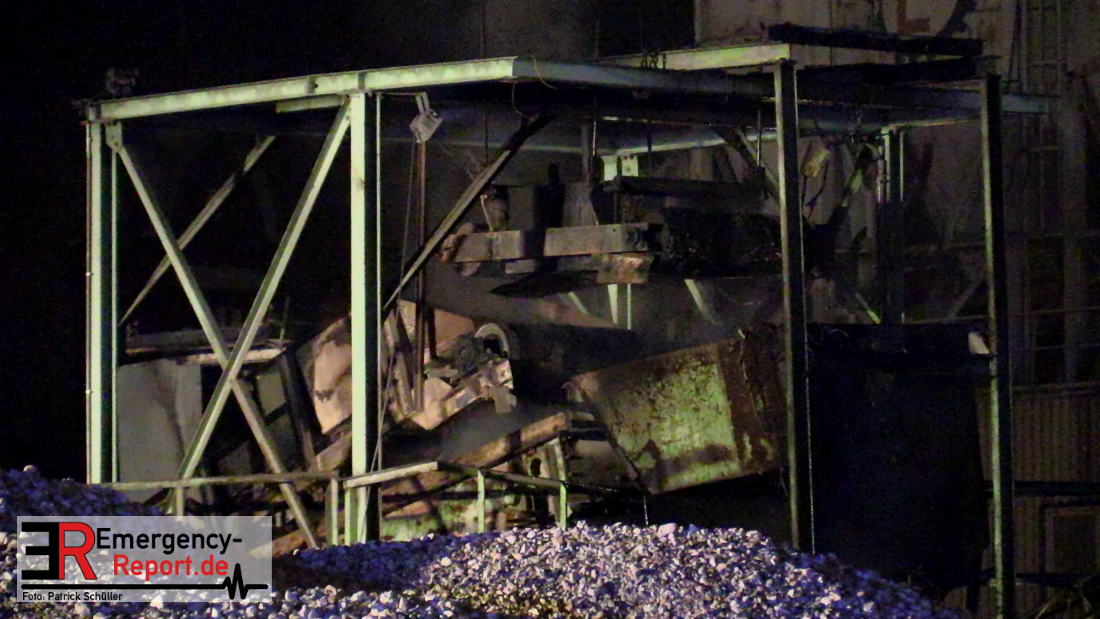 Aus bislang ungeklärter Ursache hat am späten Samstagabend eine Recyclingmaschine mit Förderbändern Feuer gefangen. Die Flammen konnten mit zwei Strahlrohren schnell unter Kontrolle gebracht werden. Der entstandene Schaden liegt trotzdem im sechsstelligen Bereich. Die Kriminalpolizei hat die Ermittlungen zur Brandursache aufgenommen.