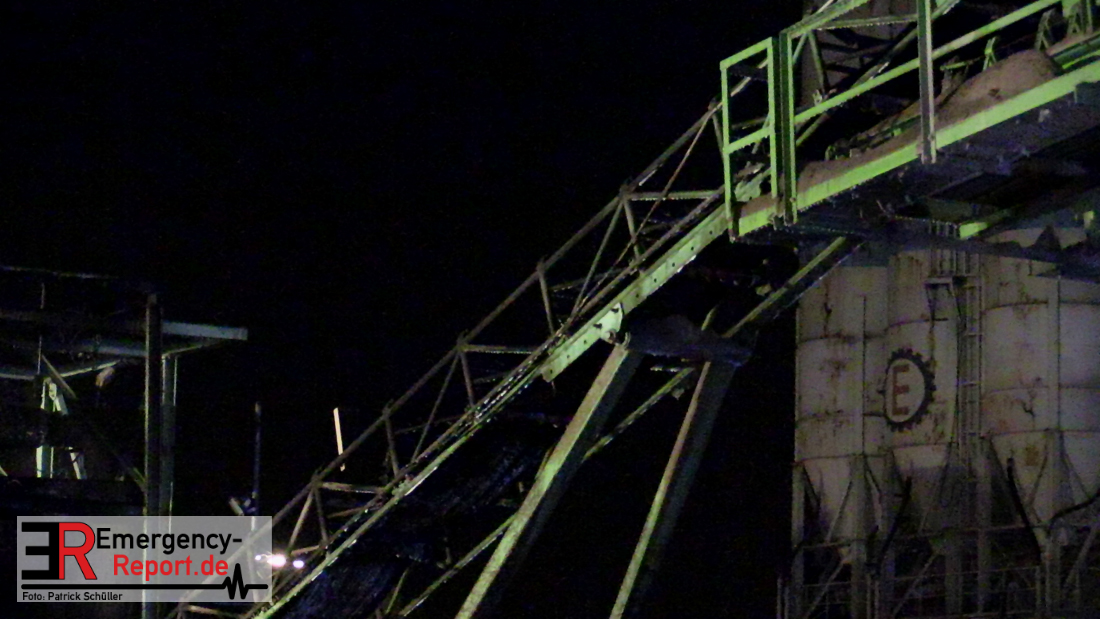 Um Zutritt zu dem Gelände zu bekommen, musste ein Tor mittels Bolzschneider geöffnet werden. Danach entsendete der Einsatzleiter sofort zwei Trupps mit Strahlrohren zu der Maschine. Bereits nach zehn Minuten konnten die Flammen unter Kontrolle gebracht werden und damit eine Flammenausbreitung über die Gummiförderbänder auf weitere Anlagenteile verhindert werden.