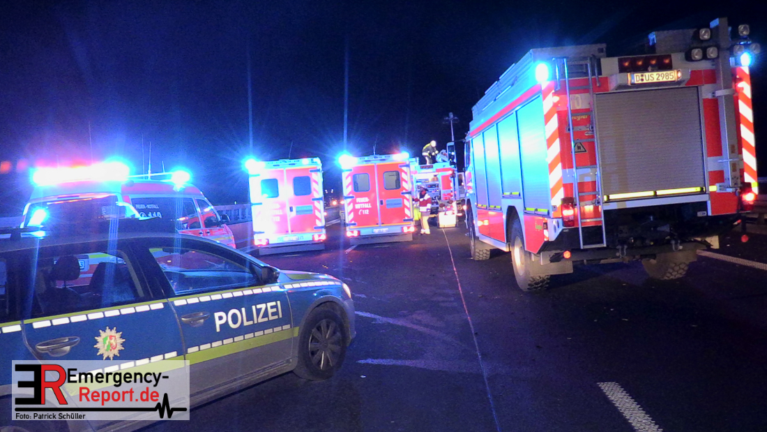 Nach den bisherigen Ermittlungen der Polizei waren zur Unfallzeit der 34-Jährige und sein Beifahrer in dem Mazda auf der Fleher Brücke (A 46) in Richtung Neuss unterwegs. Plötzlich wechselte nach Angaben des 34-Jährigen unmittelbar vor ihm ein Pkw auf seinen Fahrstreifen. Um eine Kollision zu vermeiden, musste er ausweichen und geriet dabei ins Schleudern. In der Folge kam der Mazda auf dem mittleren Fahrstreifen zum Stillstand. Ein nachfolgender Hyundai-Fahrer konnte mit seinem Fahrzeug nicht mehr rechtzeitig ausweichen und kollidierte frontal mit dem Mazda. Hierbei verletzte sich der Hyundai-Fahrer ebenfalls leicht. Zwei weitere Fahrzeuge wurden durch umherliegende Trümmerteile leicht beschädigt. Der mögliche Unfallverursacher entfernte sich. Die Brücke musste in Richtung A 57 für etwa 1 ½ Stunden gesperrt werden. Der Verkehr staute sich auf einer Länge von 1.500 Metern. Der Sachschaden wird auf etwa 40.000 Euro geschätzt.
