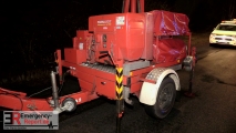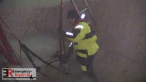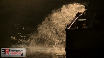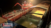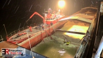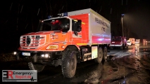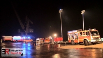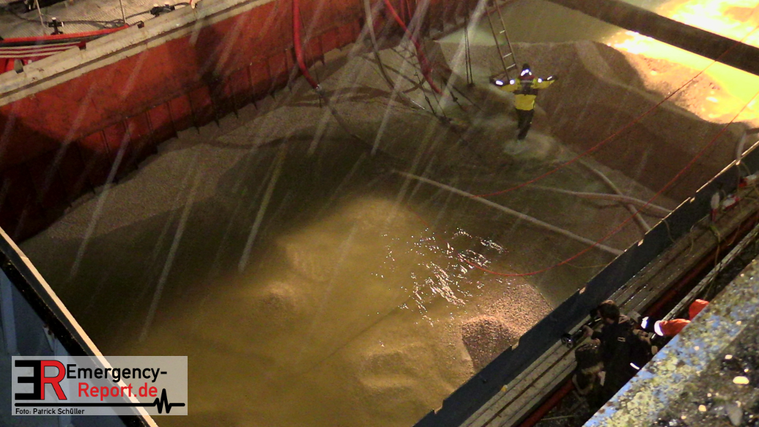 Während des Löschens der Ladung von ca. 1700 t Kies droht der seit gestern im Reisholzer Hafen liegende Havarist nun zu sinken. Durch mehrere Risse im Rumpf dringt weit mehr Wasser ein, als die bisher eingesetzten Pumpen des Feuerlöschbootes leisten können. Daher wurden von der Leitstelle der Feuerwehr Düsseldorf Einheiten der Feuerwache Technische Dienste, die Löschgruppen Garath und Himmelgeist-Itter, sowie der Technik- und Kommunikation- und der Umweltschutzzug der Freiwilligen Feuerwehr zur Unterstützung alarmiert. Auf Anforderung ist auch das Feuerlöschboot der Feuerwehr Köln auf dem Weg in den Reisholzer Hafen. Es wird nun versucht, weitere leistungsstarke Pumpen in den Havaristen einzubringen um so das eindringende Wasser wieder aus dem Schiff zu pumpen. Neben tragbaren Pumpen steht auch das Pumpenmodul des Hytrans-Fire-System zum Einsatz bereit. Dabei handelt es sich um eine hydraulisch betriebene Pumpe, die bis zu 8000 ltr. Wasser pro Minute fördern kann. Diese Pumpe wurde bereits erfolgreich bei Hochwasserlagen, z.B. 2013 in Magdeburg oder 2016 am Niederrhein eingesetzt.