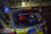 Gegen 00:30 Uhr kam es auf der Friedrich-Ebert-Straße zu einem Polizeieinsatz in dessen Verlauf ein Streifenwagen beschädigt wurde. Die Heckscheibe des Fahrzeuges wurde eingeschlagen.