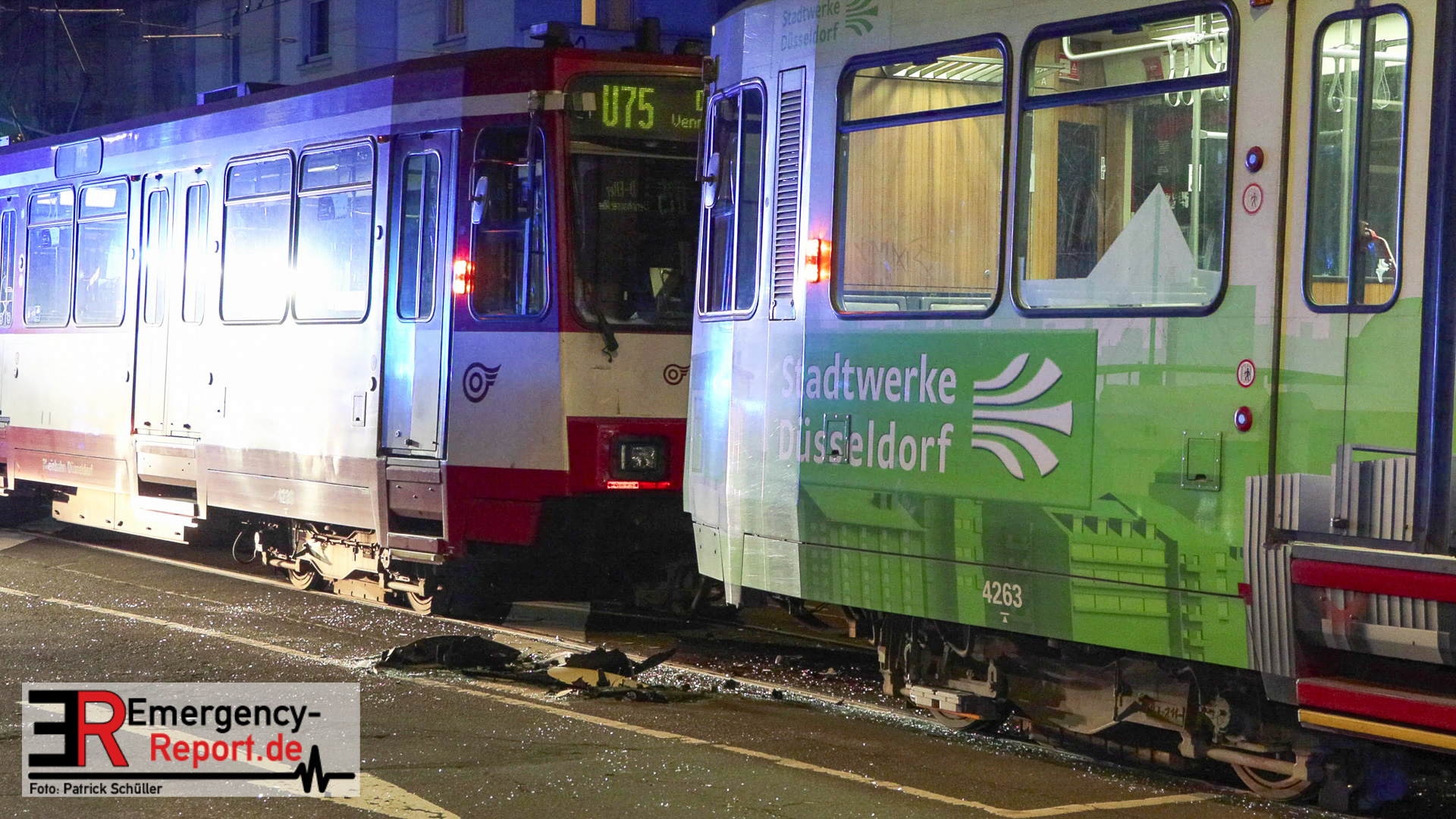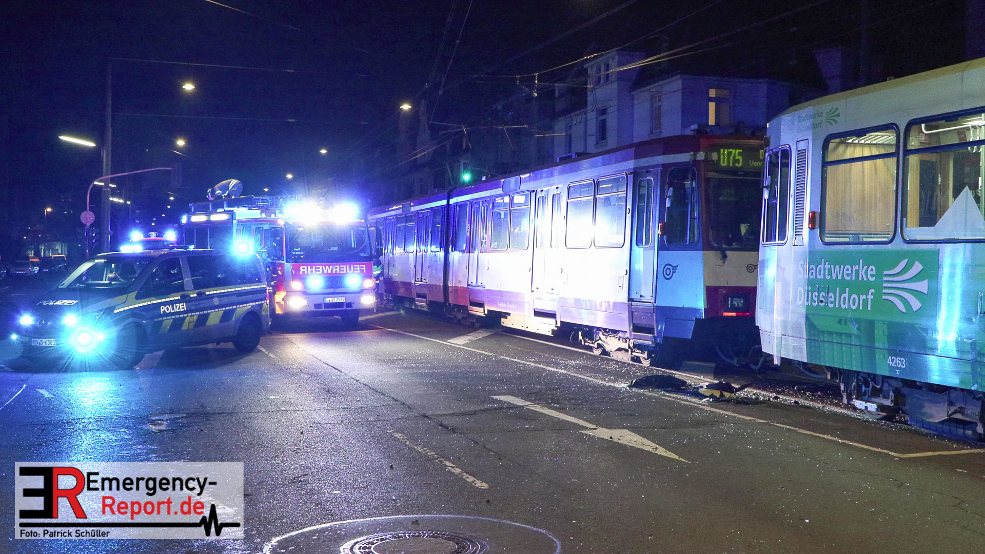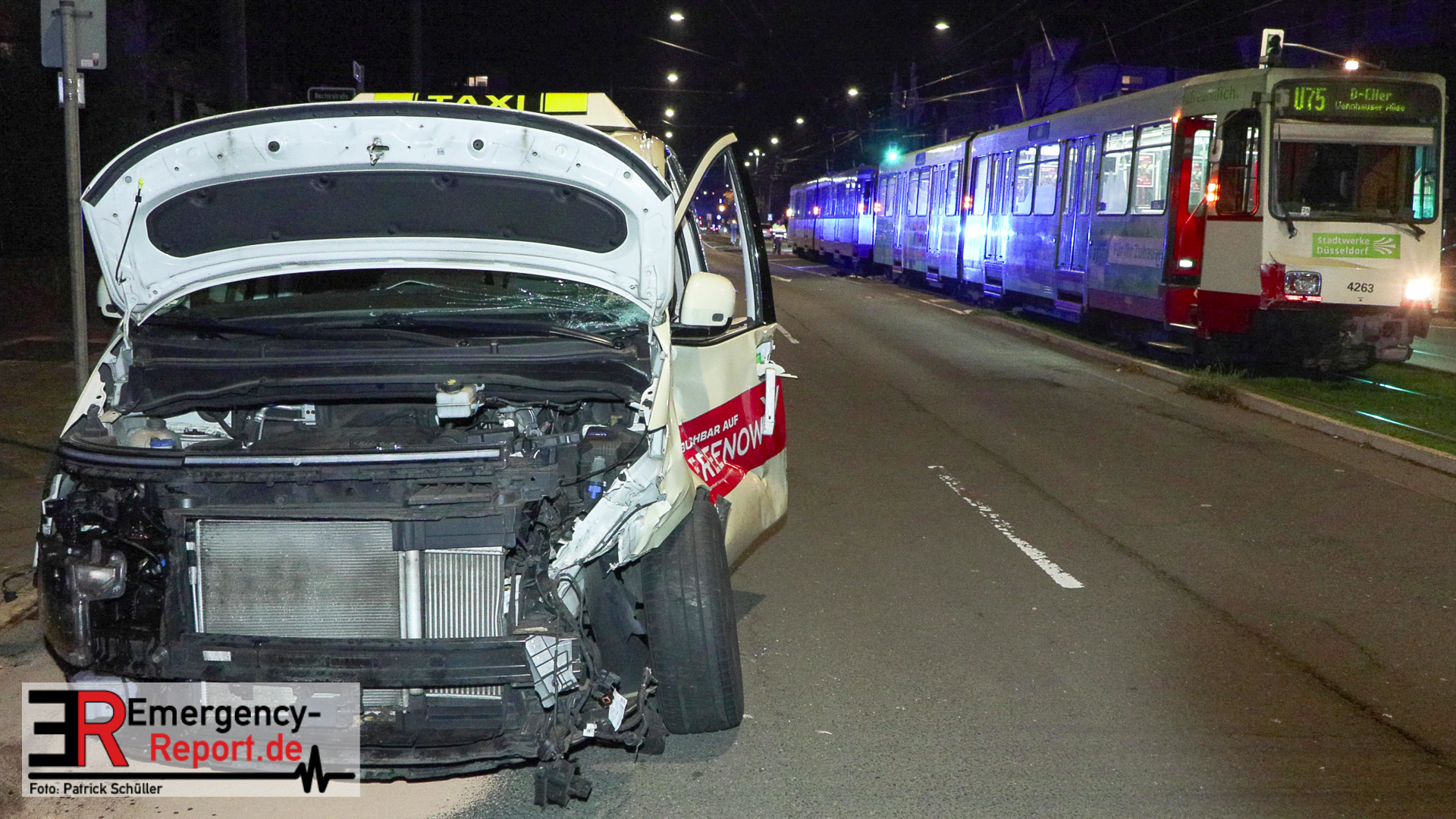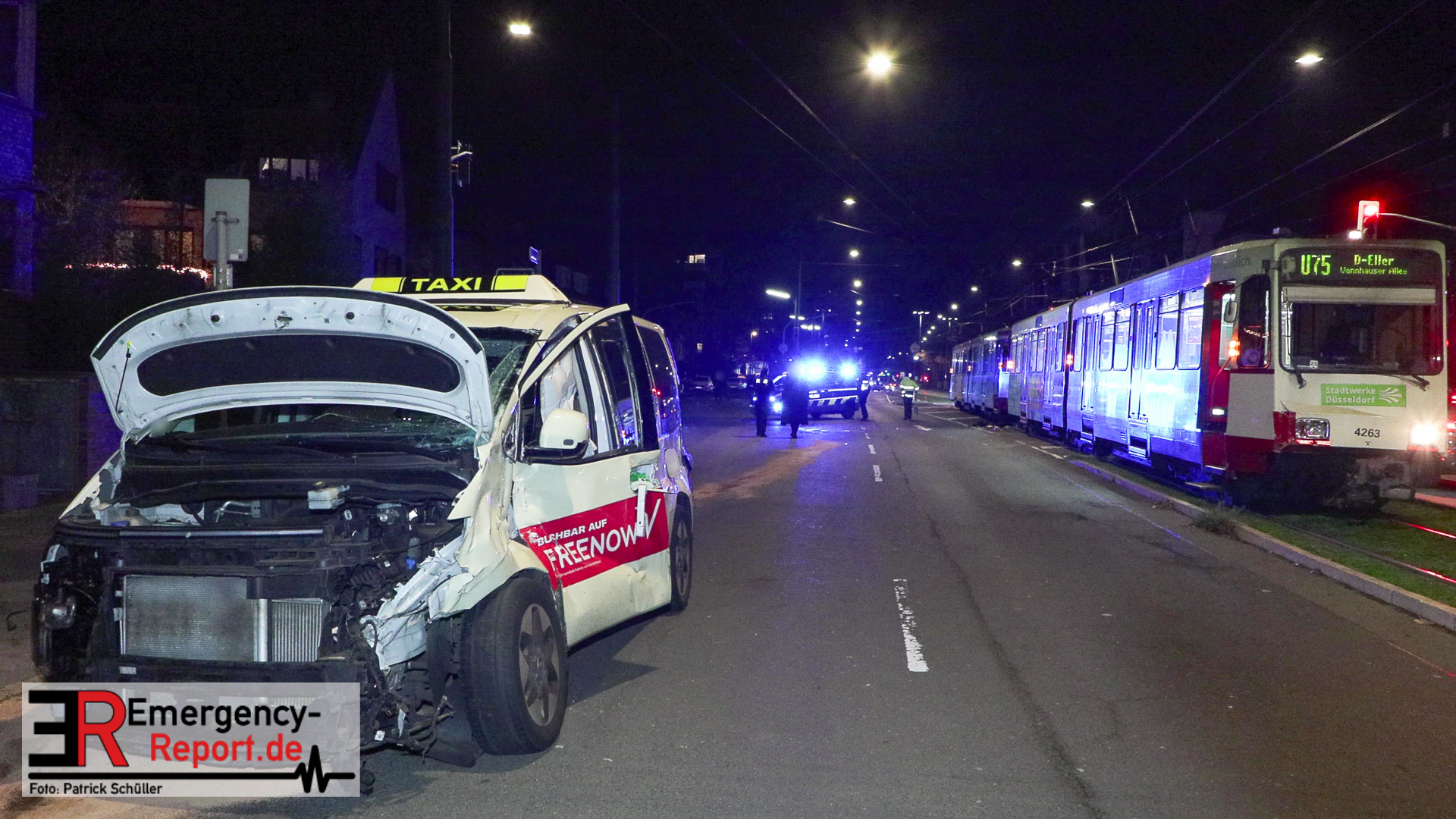 Am späten Abend des 21.11.2025 kam es in Düsseldorf, auf der Düsseldorfer Straße, zu einem Verkehrsunfall. In Höhe der Hectorstraße kam es zu einer Kollision zwischen einer Stadtbahn der Linie U75 und einem Taxi. Laut offiziellen Informationen erlitt eine Person Verletzungen und wurde, nach der rettungsdienstlichen Erstversorgung,
