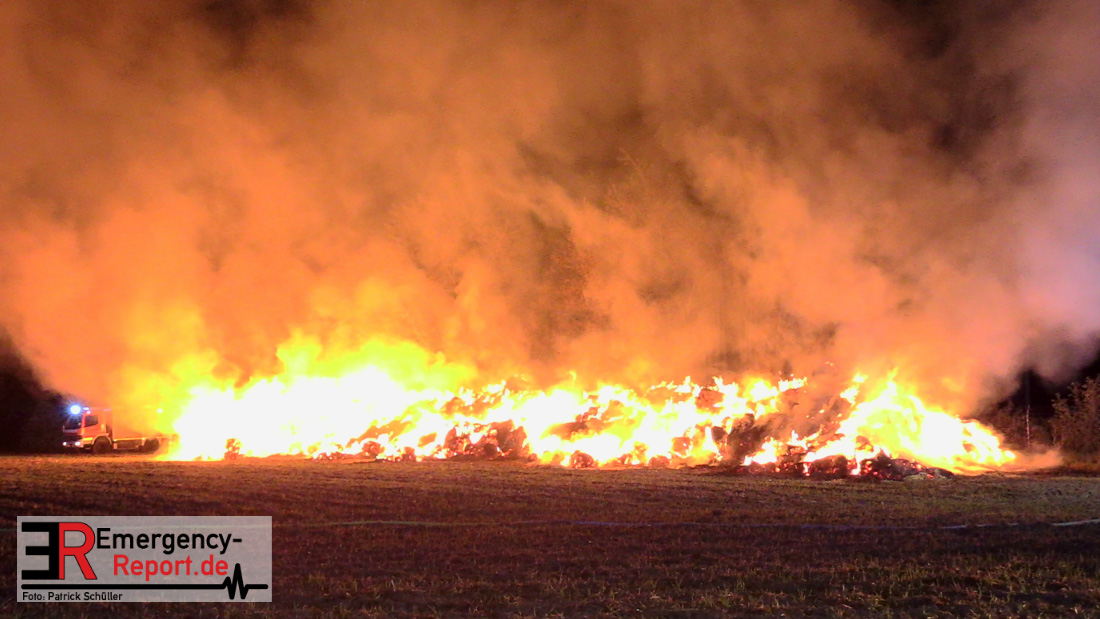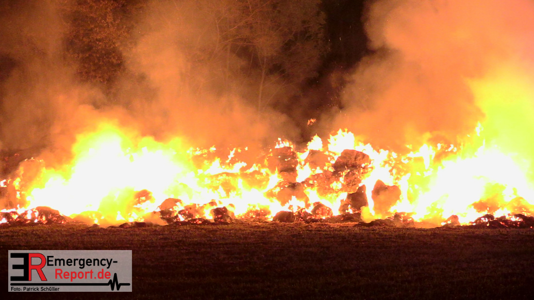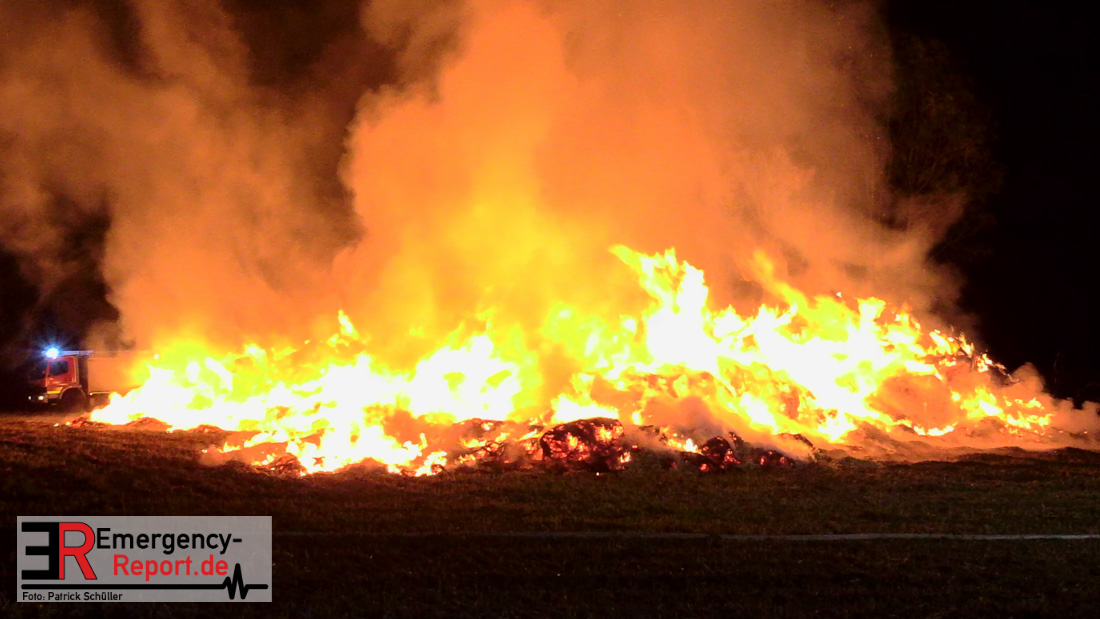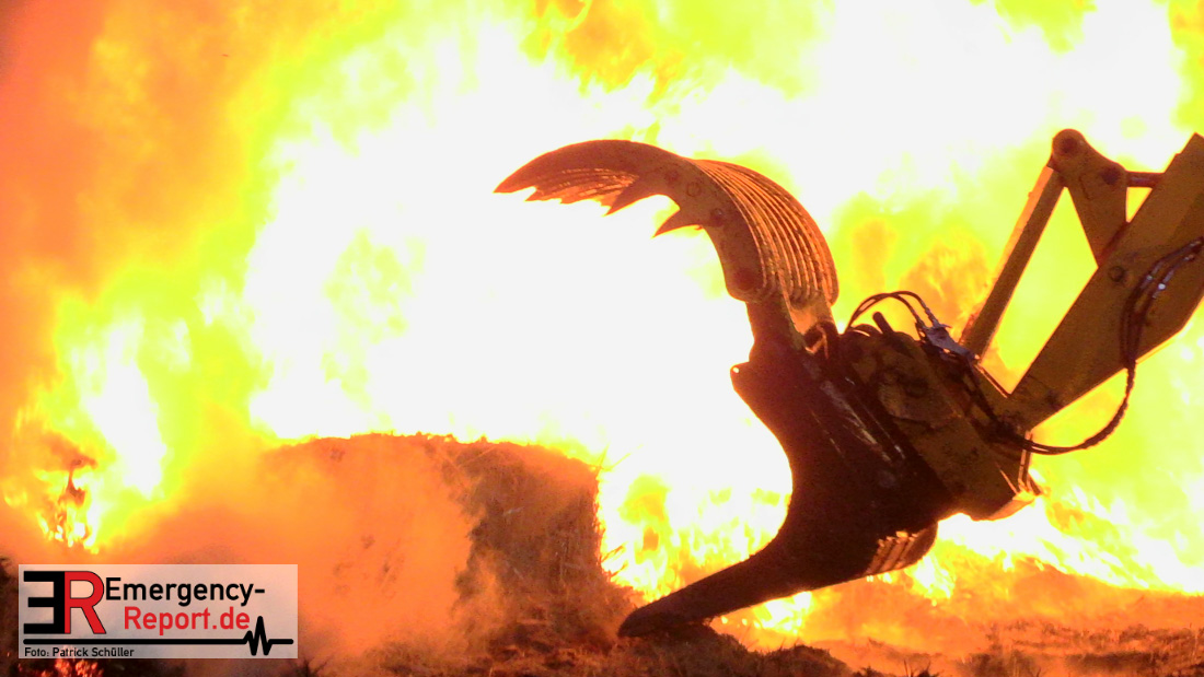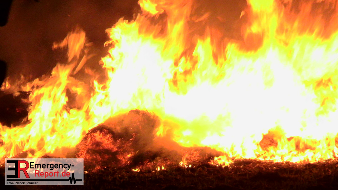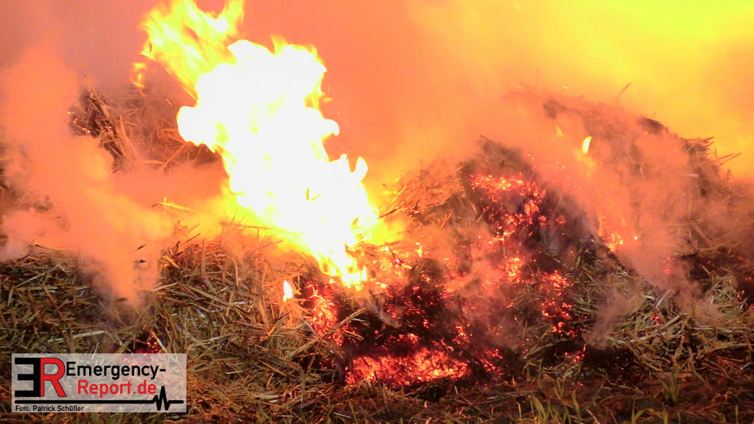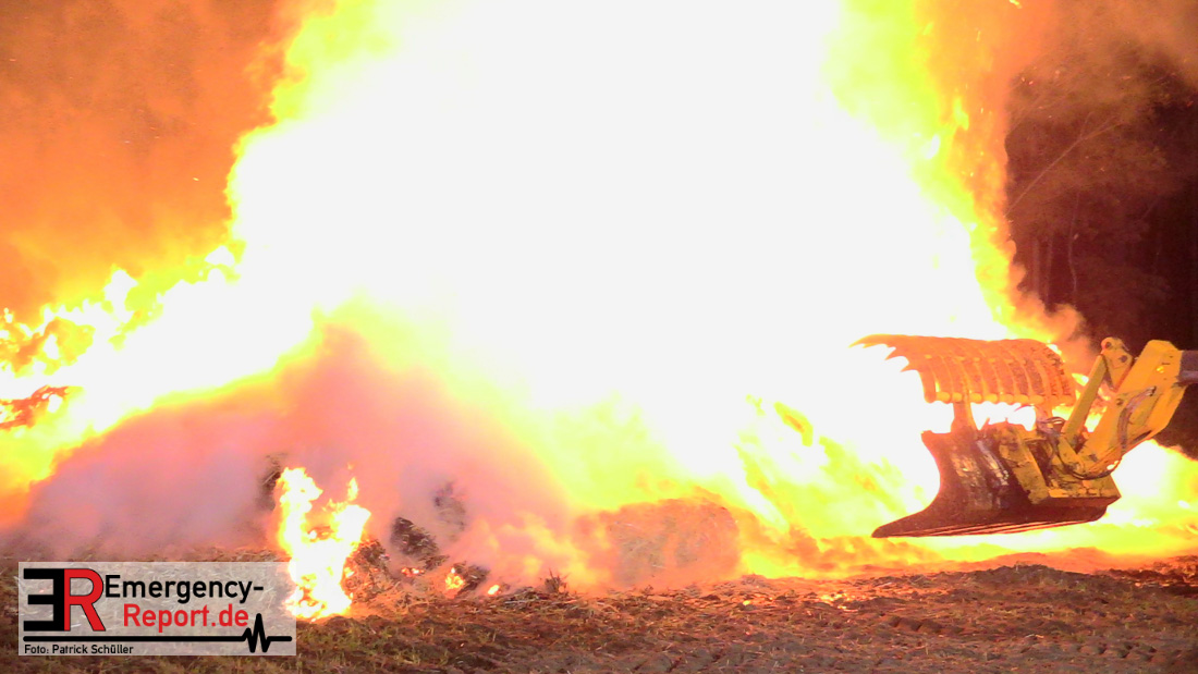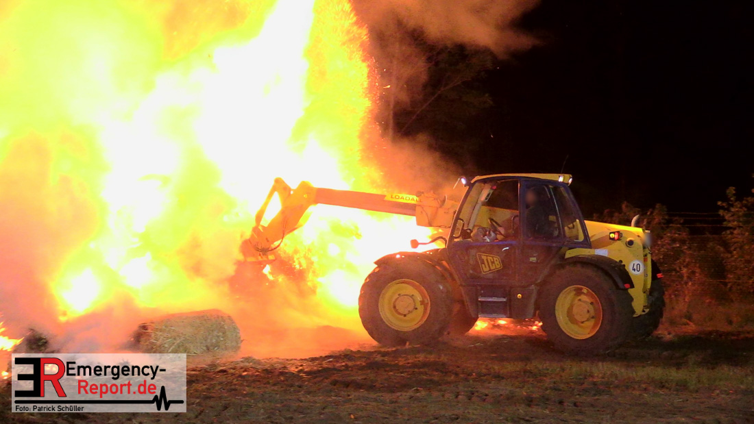 Am frühen Donnerstagmorgen informierte ein Passant die Feuerwehr über brennende Strohballen im Bereich Wasserwerksweg. Ein Leitstellenmitarbeiter der Feuerwehr Düsseldorf alarmierte daraufhin die zuständige Wache Flughafenstraße sowie die Freiwillige Feuerwehr Wittlaer zur gemeldeten Einsatzstelle. Als die ersten Einsatzkräfte am Wasserwerksweg eintrafen, brannten bereits circa 180 Strohballen der dort gelagerten Strohmiete. Umgehend setzte der Einsatzleiter zwei Löschtrupps zum Schutz der restlichen Strohballen und zur Brandbekämpfung ein. Um ein besseres Ablöschen der Flammen und Glutnester zu ermöglichen, setzte die Feuerwehr in Zusammenarbeit mit einem Landwirt zwei Teleskoplader ein. So war es möglich die einzelnen Strohballen auseinander zuziehen, sodass auch tieferliegende Glutnester abgelöscht werden konnten. Gerade diese Arbeiten stellten sich als sehr zeitintensiv heraus – die letzten Flammen konnten erst gegen sieben Uhr morgens gelöscht werden.