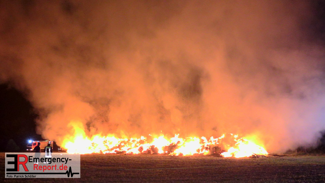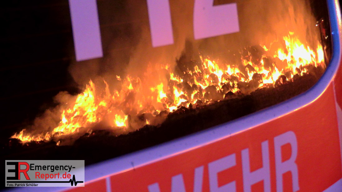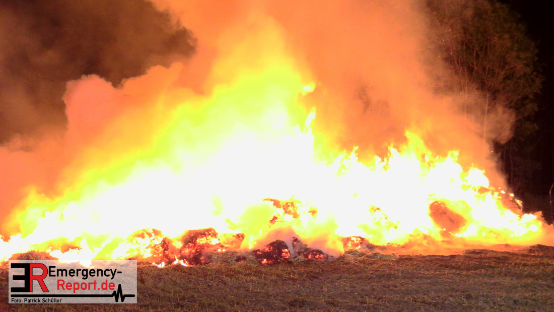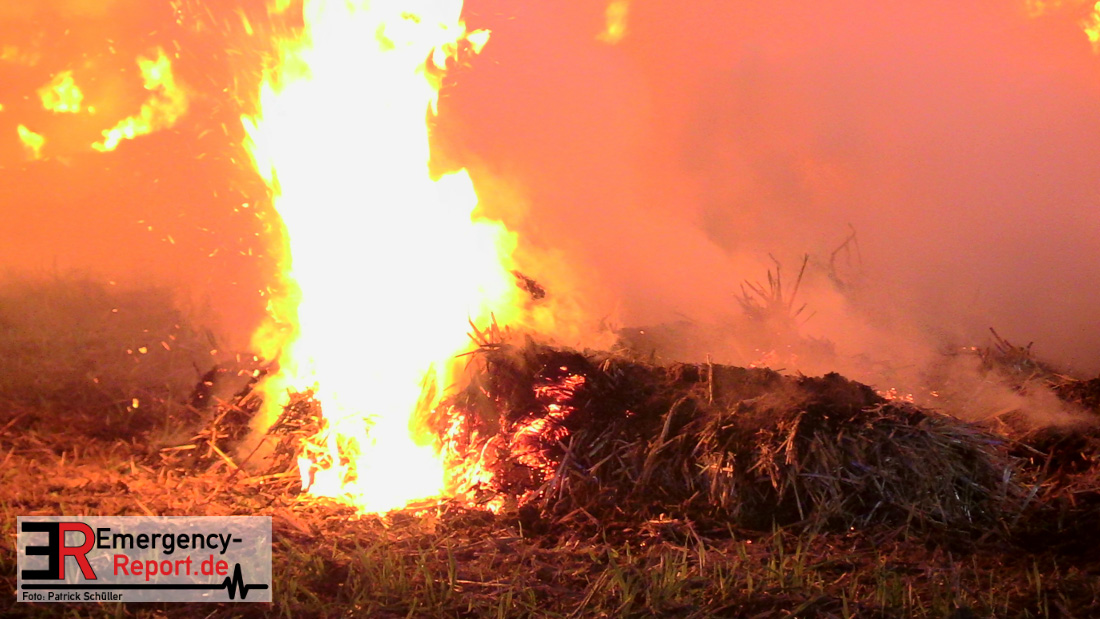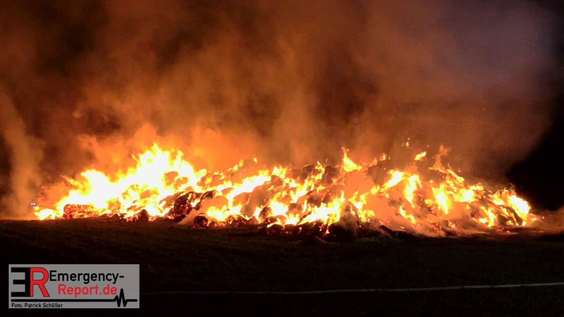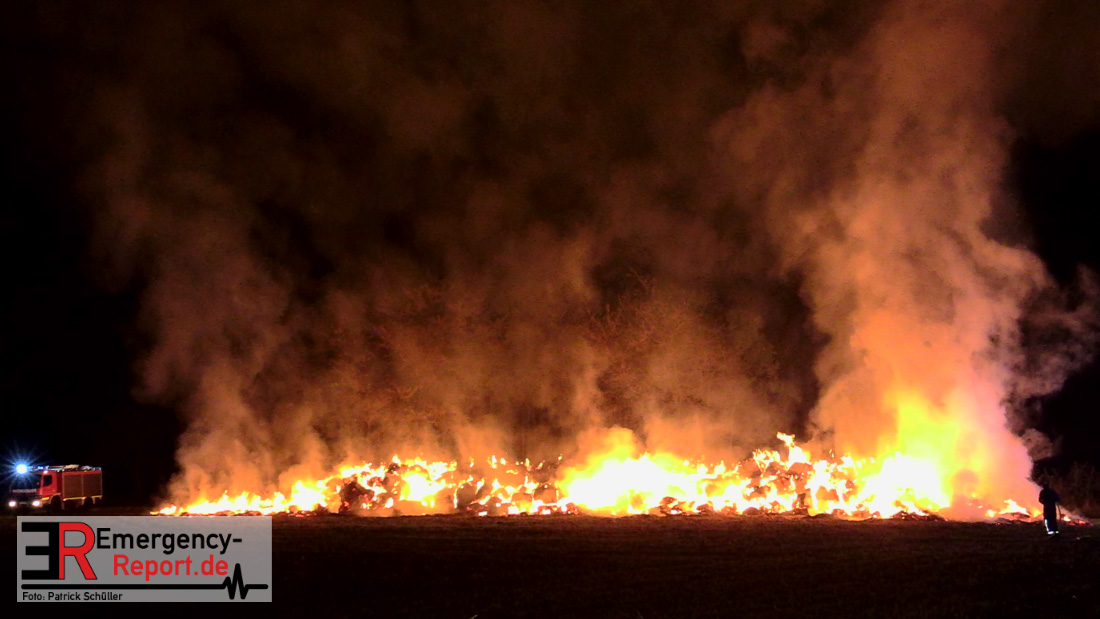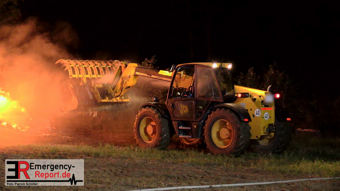 Am frühen Donnerstagmorgen informierte ein Passant die Feuerwehr über brennende Strohballen im Bereich Wasserwerksweg. Ein Leitstellenmitarbeiter der Feuerwehr Düsseldorf alarmierte daraufhin die zuständige Wache Flughafenstraße sowie die Freiwillige Feuerwehr Wittlaer zur gemeldeten Einsatzstelle. Als die ersten Einsatzkräfte am Wasserwerksweg eintrafen, brannten bereits circa 180 Strohballen der dort gelagerten Strohmiete. Umgehend setzte der Einsatzleiter zwei Löschtrupps zum Schutz der restlichen Strohballen und zur Brandbekämpfung ein. Um ein besseres Ablöschen der Flammen und Glutnester zu ermöglichen, setzte die Feuerwehr in Zusammenarbeit mit einem Landwirt zwei Teleskoplader ein. So war es möglich die einzelnen Strohballen auseinander zuziehen, sodass auch tieferliegende Glutnester abgelöscht werden konnten. Gerade diese Arbeiten stellten sich als sehr zeitintensiv heraus – die letzten Flammen konnten erst gegen sieben Uhr morgens gelöscht werden.
