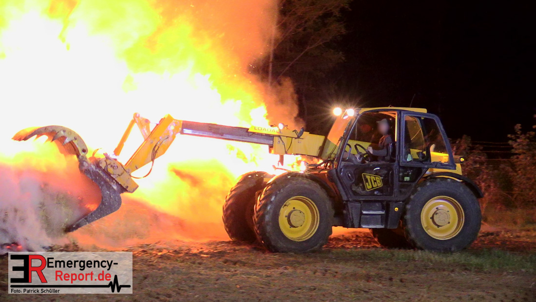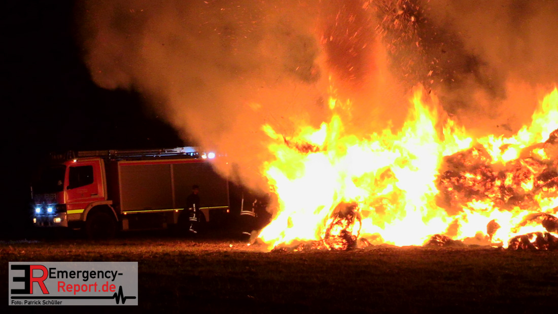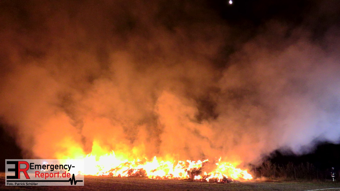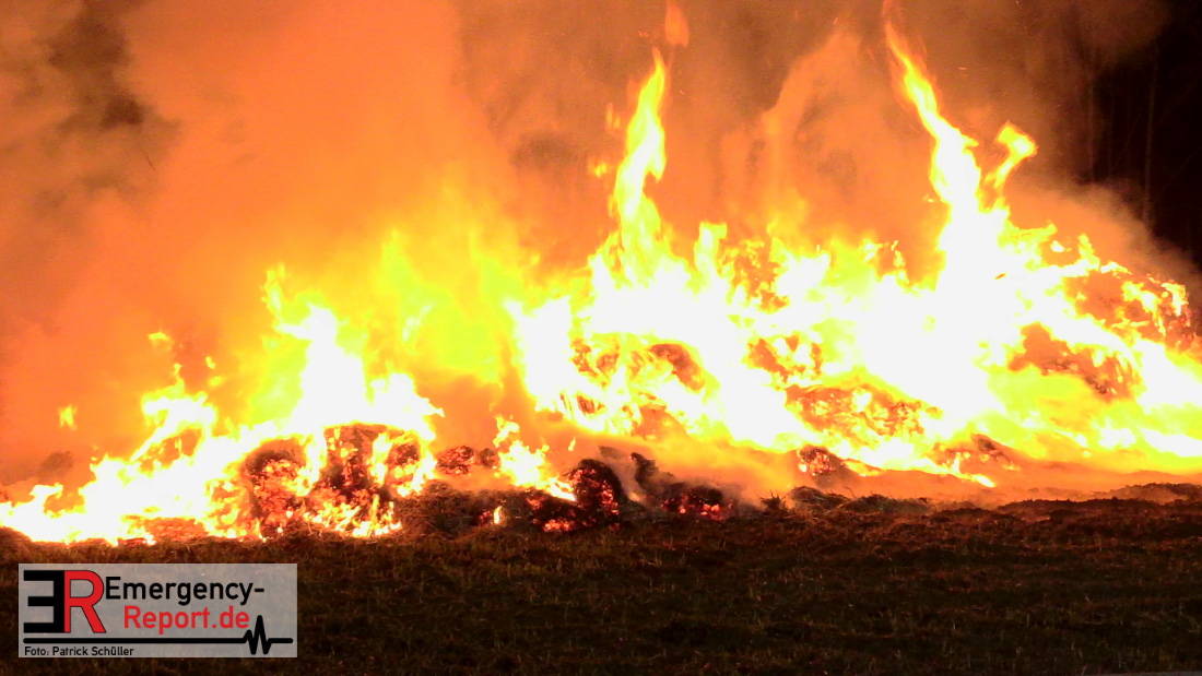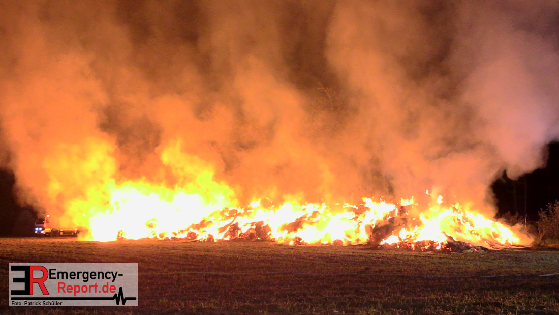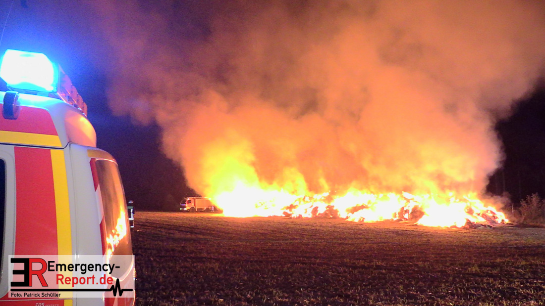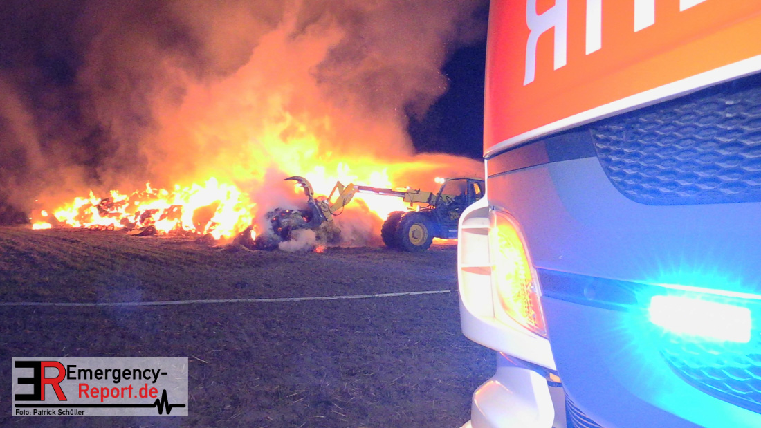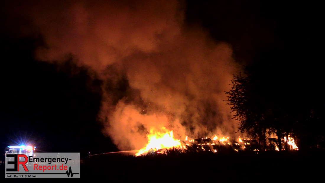 Am frühen Donnerstagmorgen informierte ein Passant die Feuerwehr über brennende Strohballen im Bereich Wasserwerksweg. Ein Leitstellenmitarbeiter der Feuerwehr Düsseldorf alarmierte daraufhin die zuständige Wache Flughafenstraße sowie die Freiwillige Feuerwehr Wittlaer zur gemeldeten Einsatzstelle. Als die ersten Einsatzkräfte am Wasserwerksweg eintrafen, brannten bereits circa 180 Strohballen der dort gelagerten Strohmiete. Umgehend setzte der Einsatzleiter zwei Löschtrupps zum Schutz der restlichen Strohballen und zur Brandbekämpfung ein. Um ein besseres Ablöschen der Flammen und Glutnester zu ermöglichen, setzte die Feuerwehr in Zusammenarbeit mit einem Landwirt zwei Teleskoplader ein. So war es möglich die einzelnen Strohballen auseinander zuziehen, sodass auch tieferliegende Glutnester abgelöscht werden konnten. Gerade diese Arbeiten stellten sich als sehr zeitintensiv heraus – die letzten Flammen konnten erst gegen sieben Uhr morgens gelöscht werden.