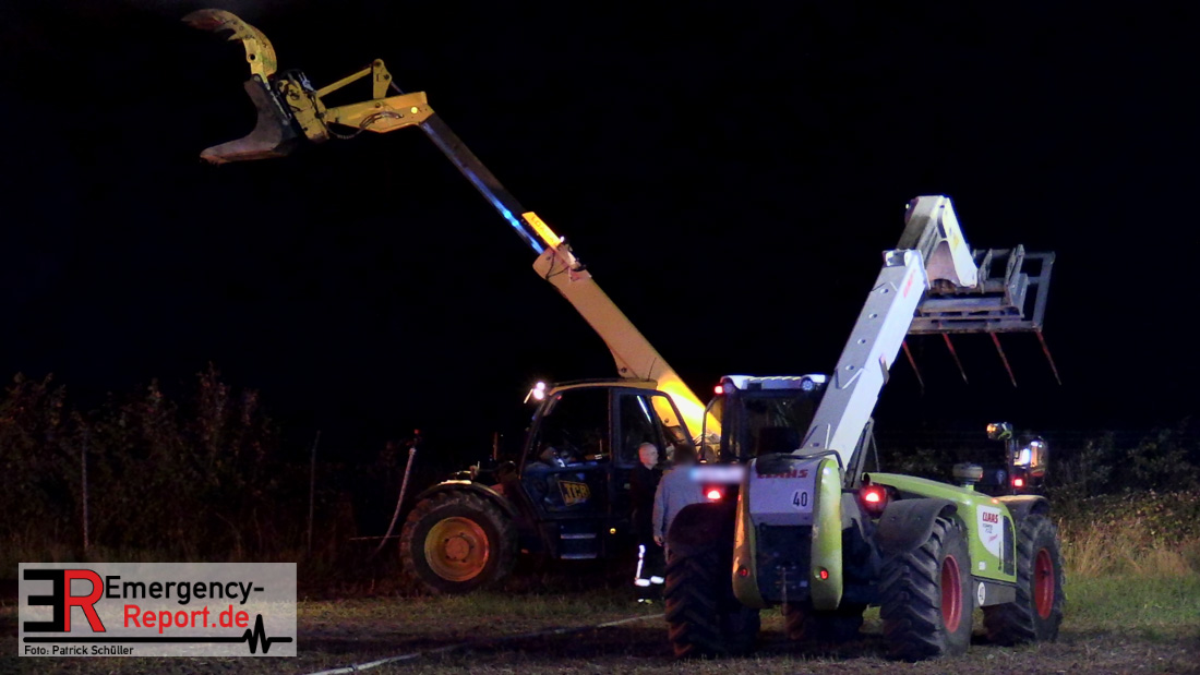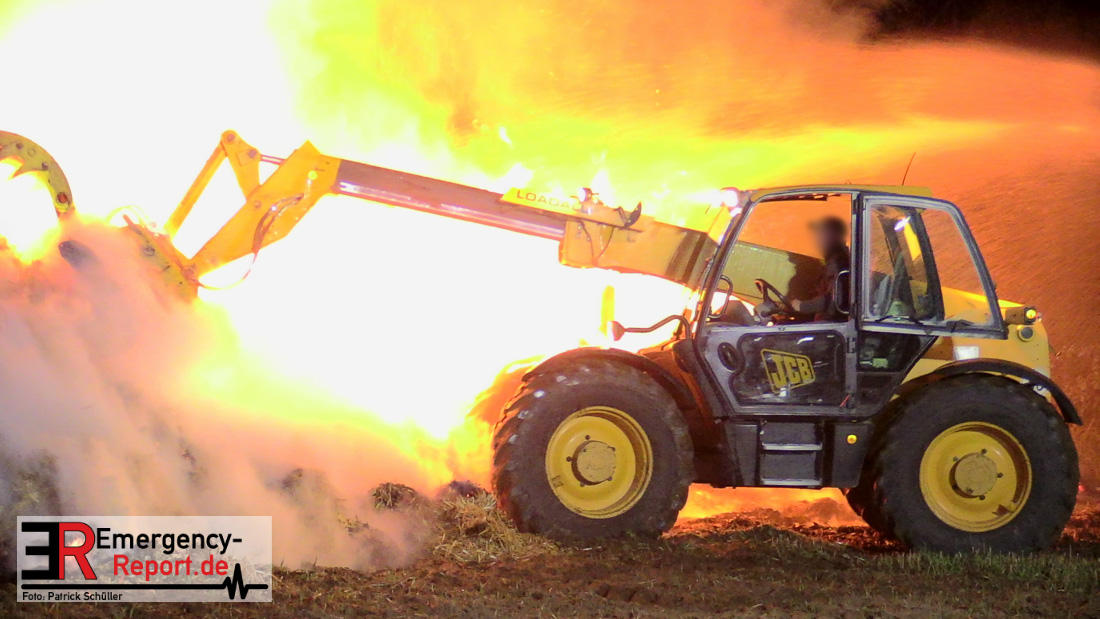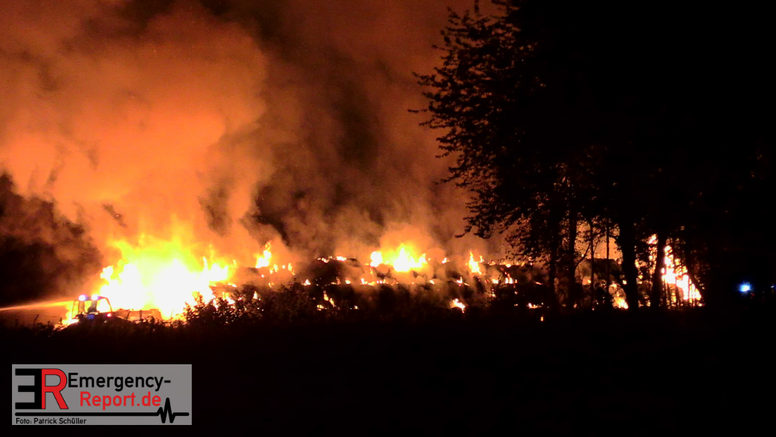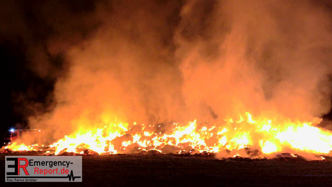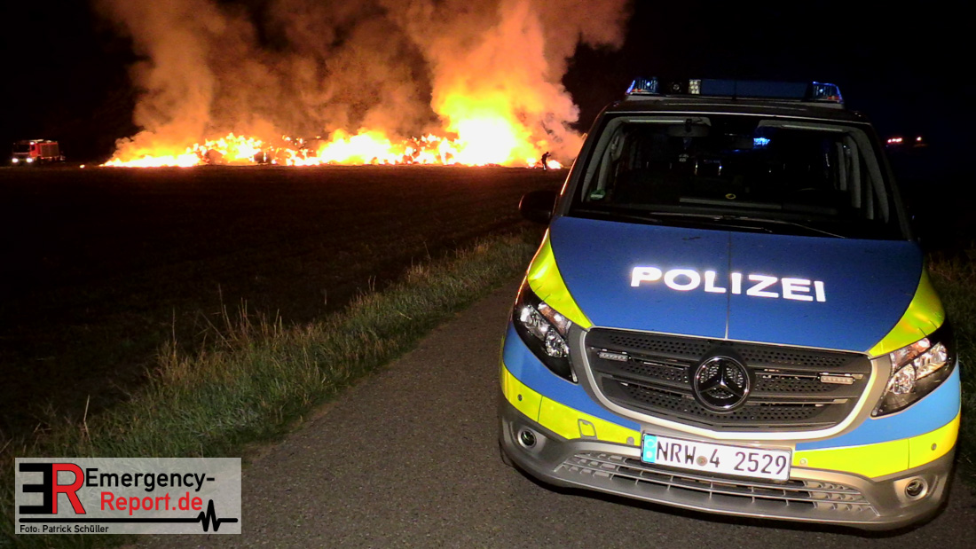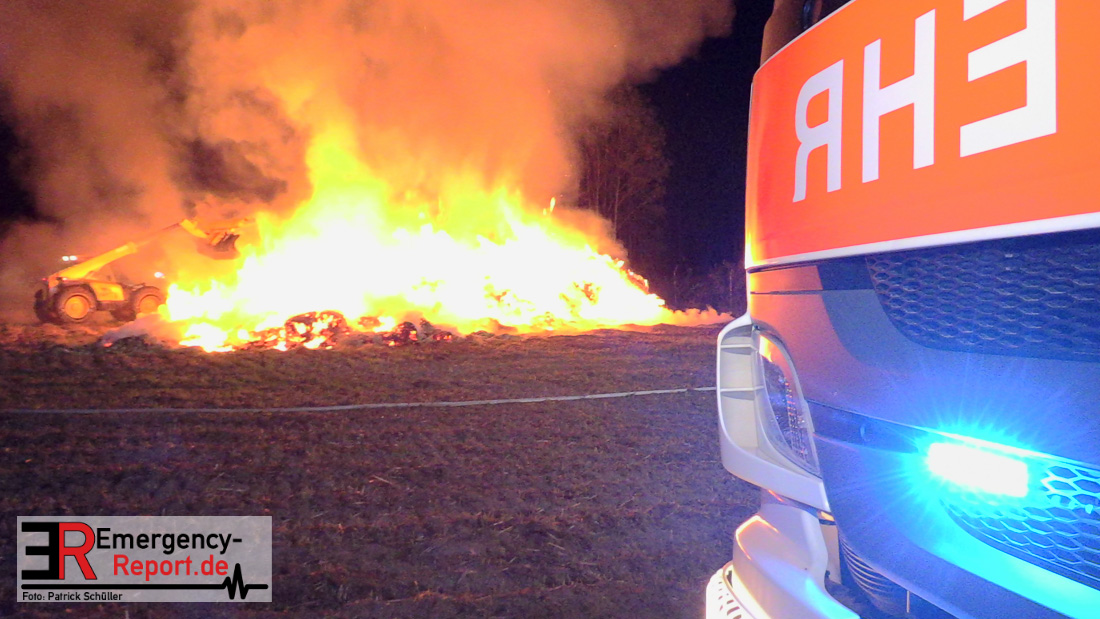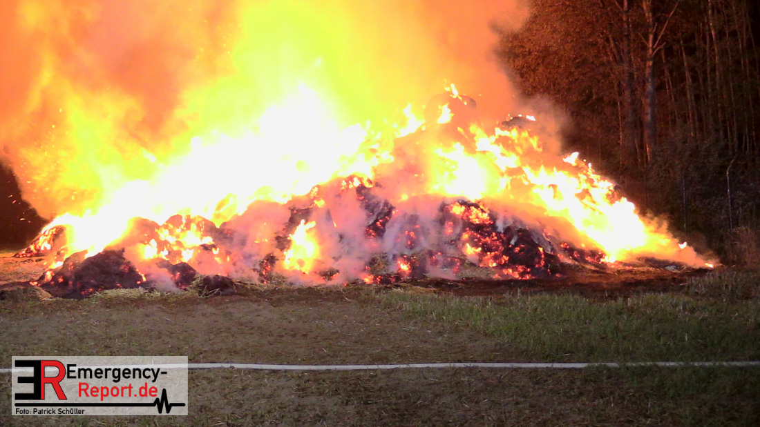 Am frühen Donnerstagmorgen informierte ein Passant die Feuerwehr über brennende Strohballen im Bereich Wasserwerksweg. Ein Leitstellenmitarbeiter der Feuerwehr Düsseldorf alarmierte daraufhin die zuständige Wache Flughafenstraße sowie die Freiwillige Feuerwehr Wittlaer zur gemeldeten Einsatzstelle. Als die ersten Einsatzkräfte am Wasserwerksweg eintrafen, brannten bereits circa 180 Strohballen der dort gelagerten Strohmiete. Umgehend setzte der Einsatzleiter zwei Löschtrupps zum Schutz der restlichen Strohballen und zur Brandbekämpfung ein. Um ein besseres Ablöschen der Flammen und Glutnester zu ermöglichen, setzte die Feuerwehr in Zusammenarbeit mit einem Landwirt zwei Teleskoplader ein. So war es möglich die einzelnen Strohballen auseinander zuziehen, sodass auch tieferliegende Glutnester abgelöscht werden konnten. Gerade diese Arbeiten stellten sich als sehr zeitintensiv heraus – die letzten Flammen konnten erst gegen sieben Uhr morgens gelöscht werden.