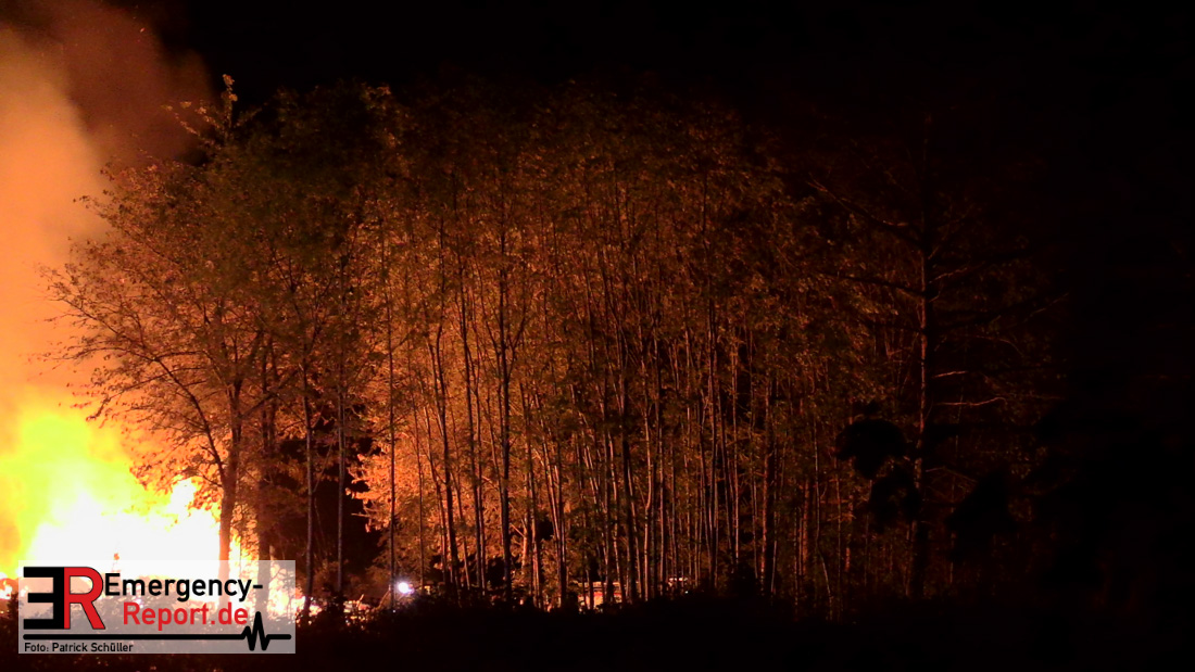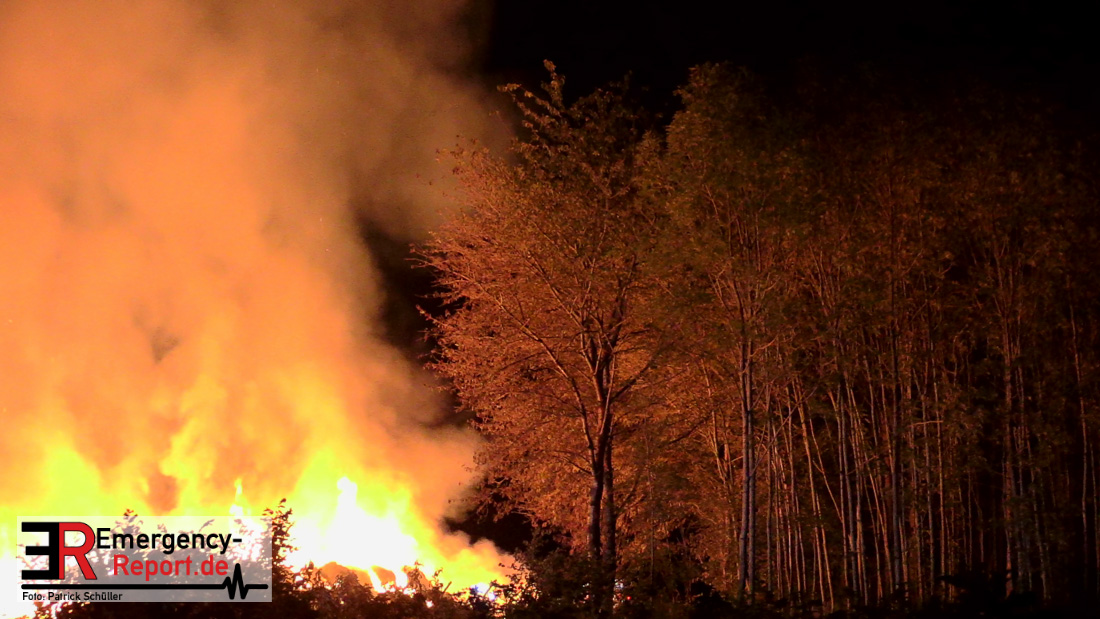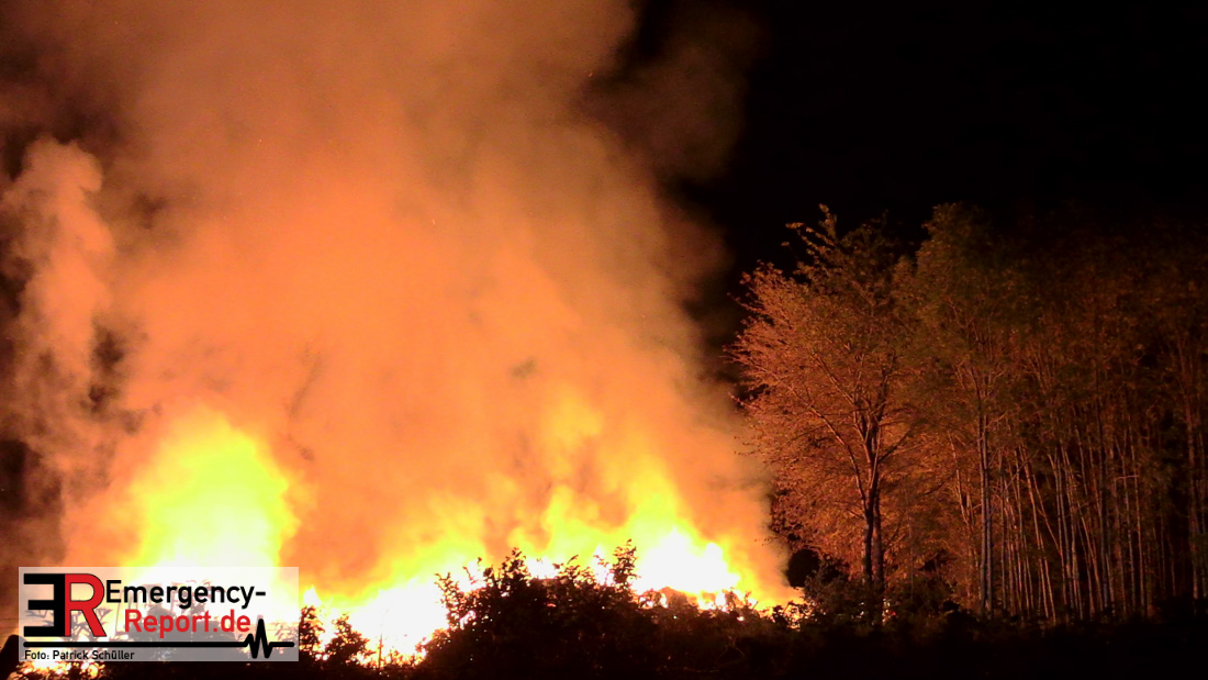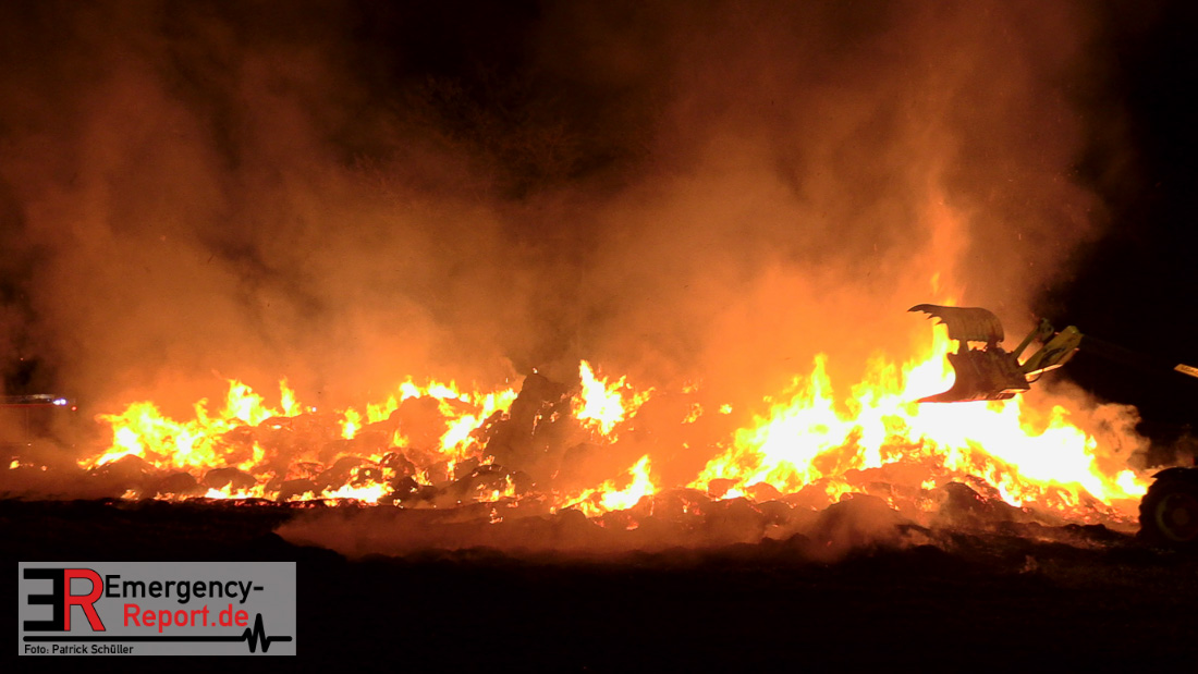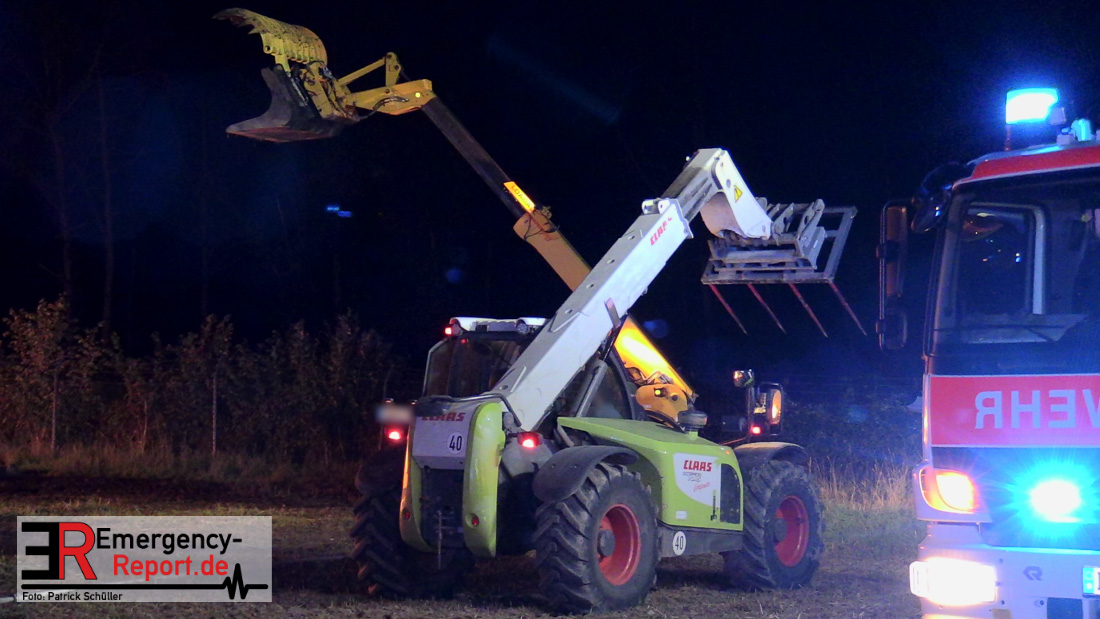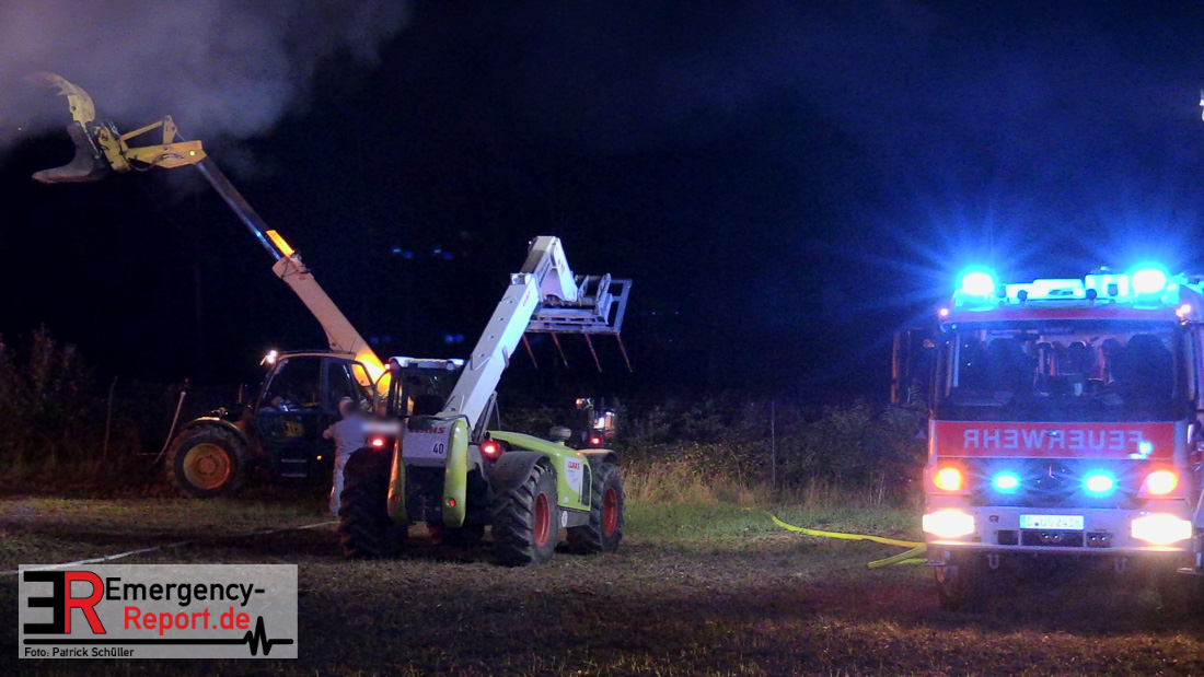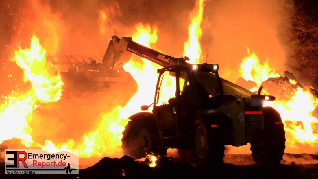 Am frühen Donnerstagmorgen informierte ein Passant die Feuerwehr über brennende Strohballen im Bereich Wasserwerksweg. Ein Leitstellenmitarbeiter der Feuerwehr Düsseldorf alarmierte daraufhin die zuständige Wache Flughafenstraße sowie die Freiwillige Feuerwehr Wittlaer zur gemeldeten Einsatzstelle. Als die ersten Einsatzkräfte am Wasserwerksweg eintrafen, brannten bereits circa 180 Strohballen der dort gelagerten Strohmiete. Umgehend setzte der Einsatzleiter zwei Löschtrupps zum Schutz der restlichen Strohballen und zur Brandbekämpfung ein. Um ein besseres Ablöschen der Flammen und Glutnester zu ermöglichen, setzte die Feuerwehr in Zusammenarbeit mit einem Landwirt zwei Teleskoplader ein. So war es möglich die einzelnen Strohballen auseinander zuziehen, sodass auch tieferliegende Glutnester abgelöscht werden konnten. Gerade diese Arbeiten stellten sich als sehr zeitintensiv heraus – die letzten Flammen konnten erst gegen sieben Uhr morgens gelöscht werden.