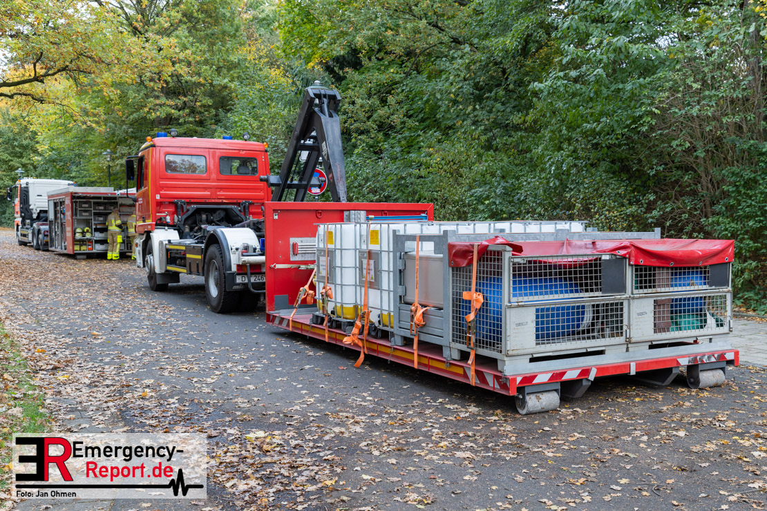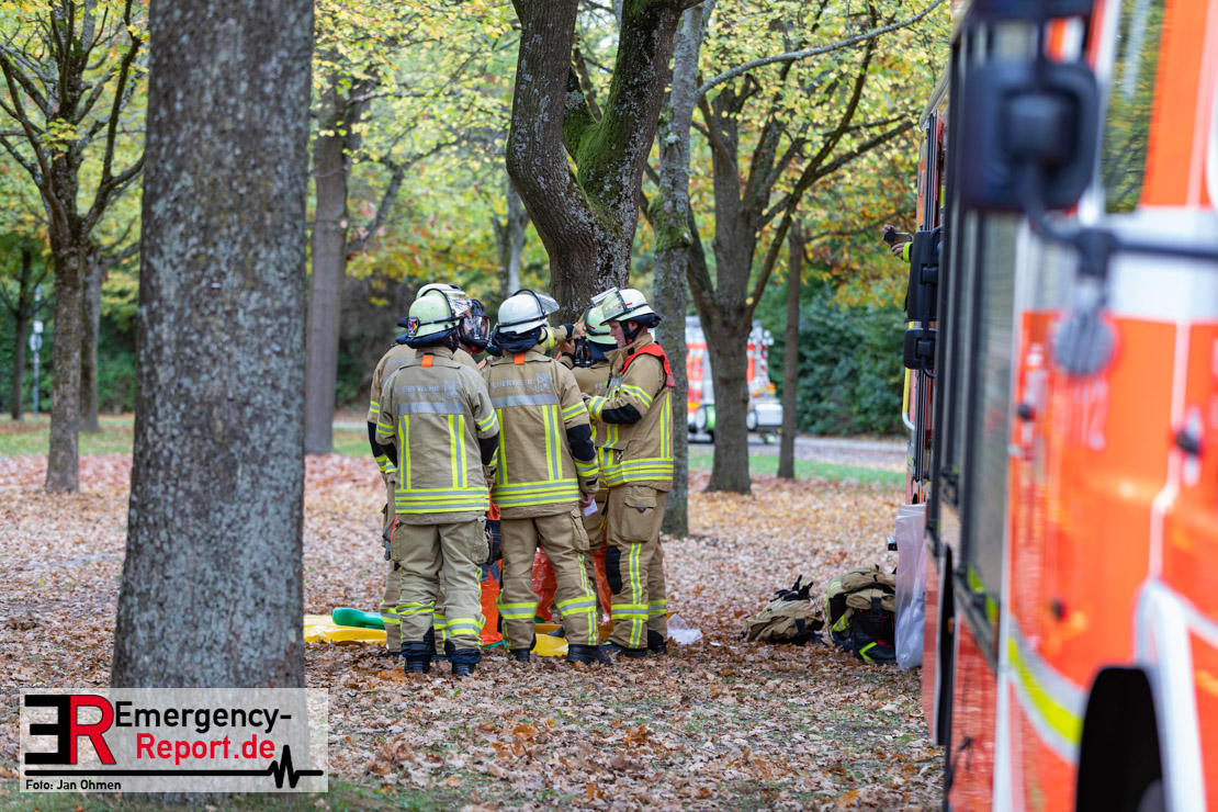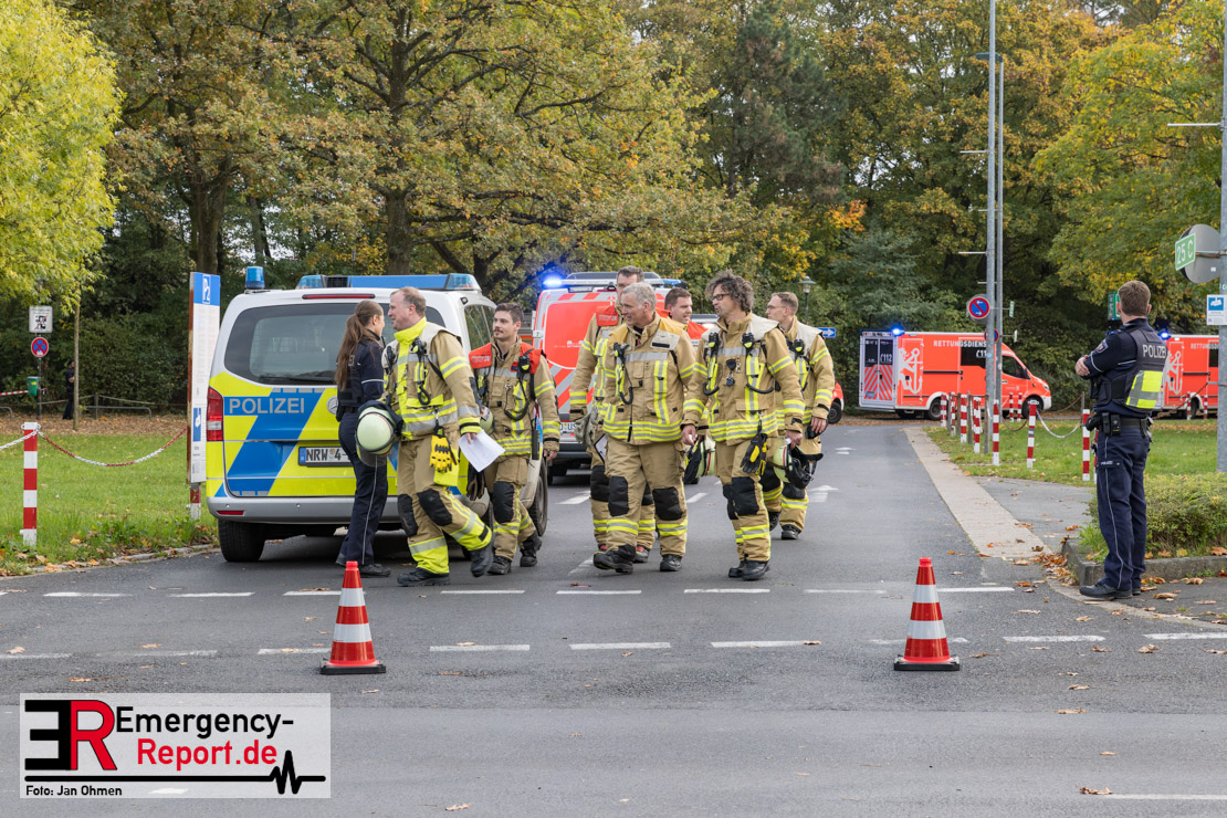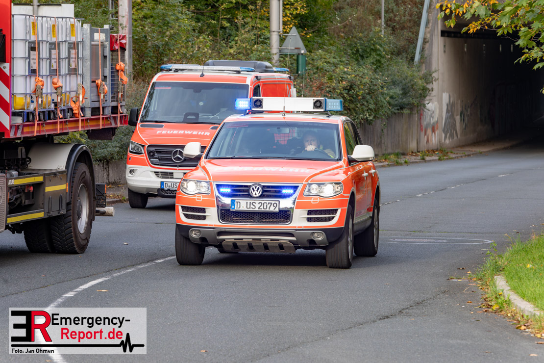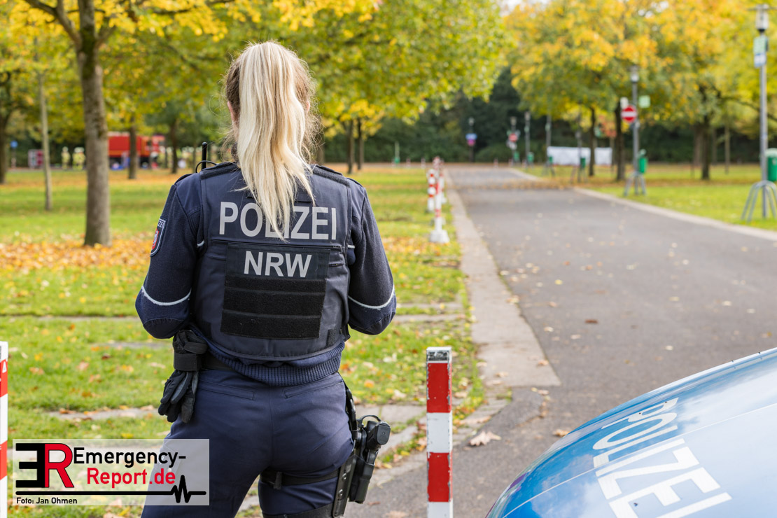 Am Mittwochmittag meldete die Polizei einen möglichen Gefahrstoff auf einem Parkplatz in Stockum an die Leitstelle der Feuerwehr Düsseldorf. Die alarmierten Einsatzkräfte sperrten den Bereich großräumig ab und führten eine Stofferkundung durch. Hierbei konnten keine gefährlichen Stoffe nachgewiesen werden. Verletzt wurde bei dem Einsatz niemand.