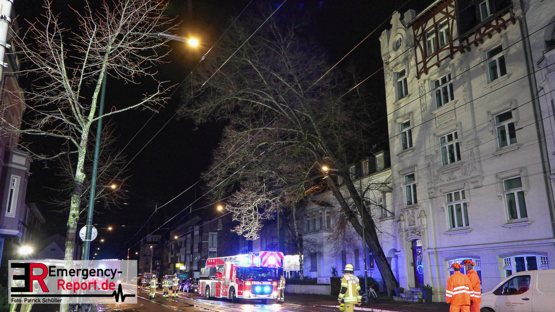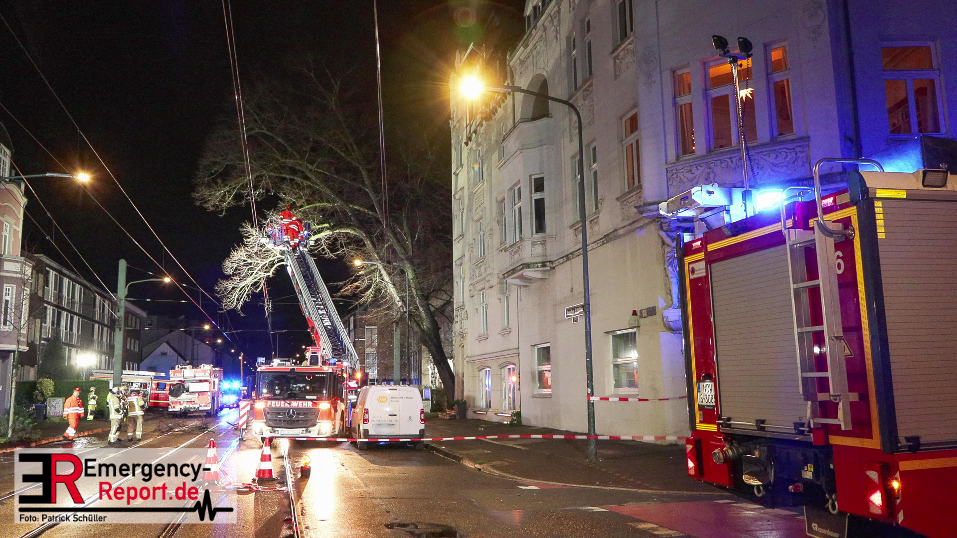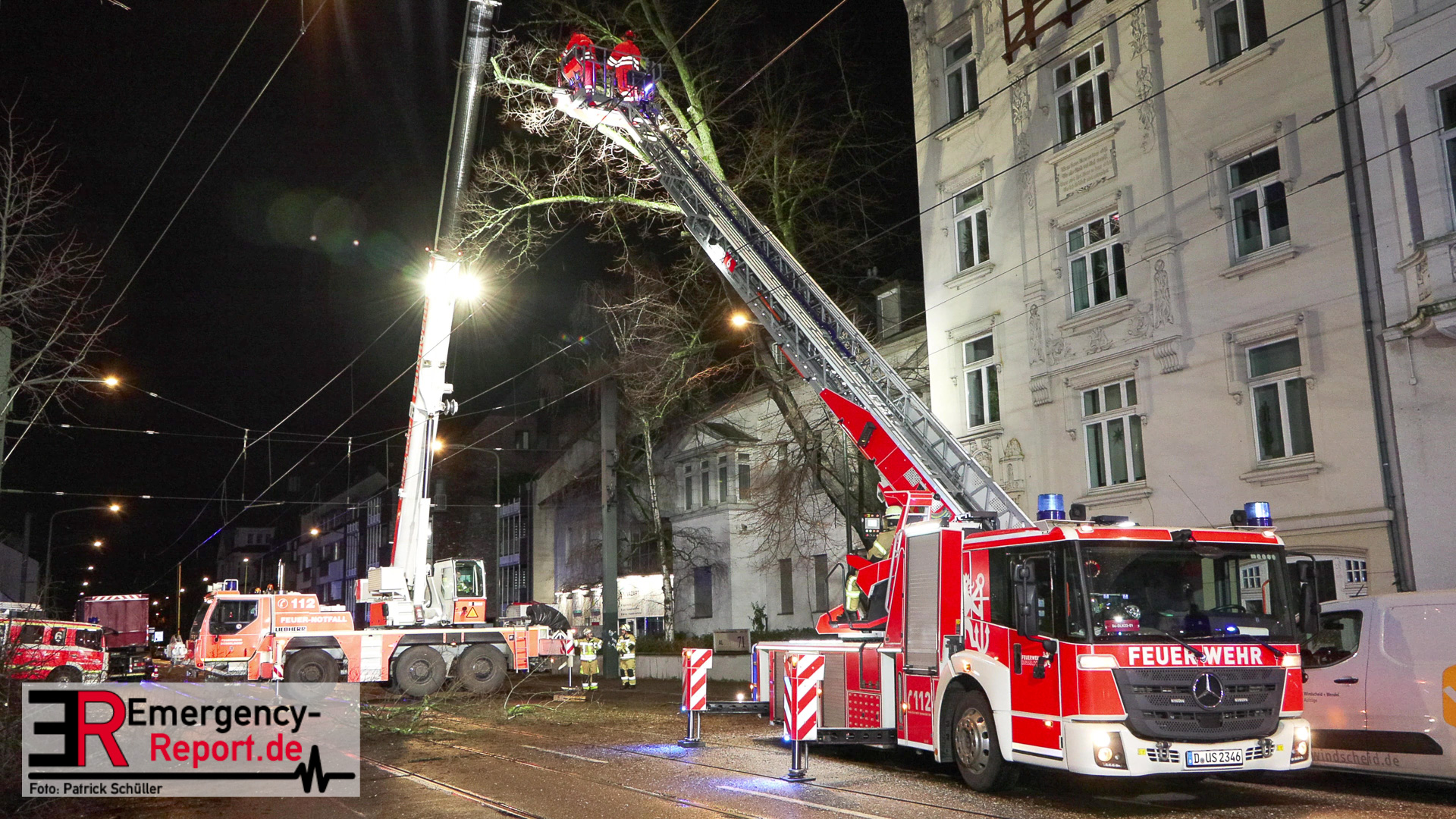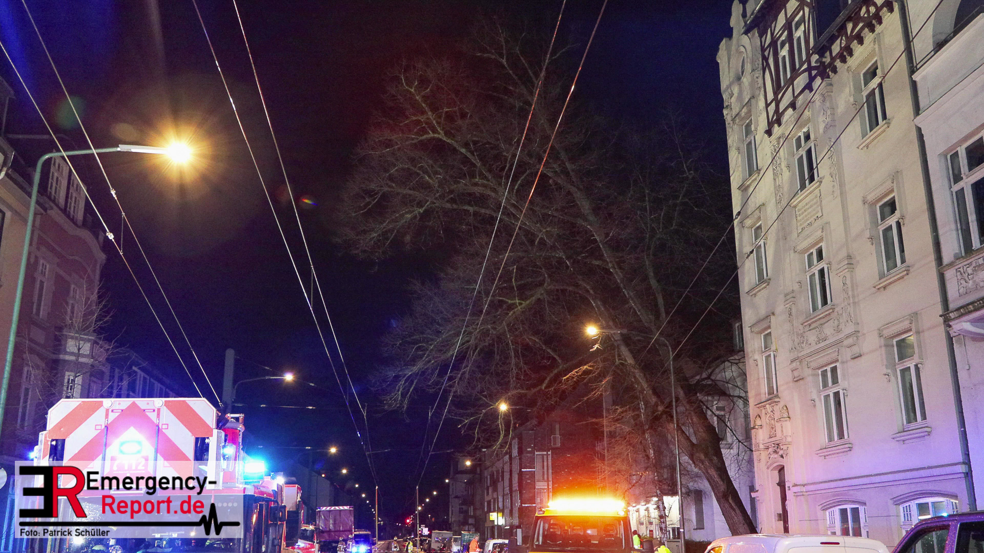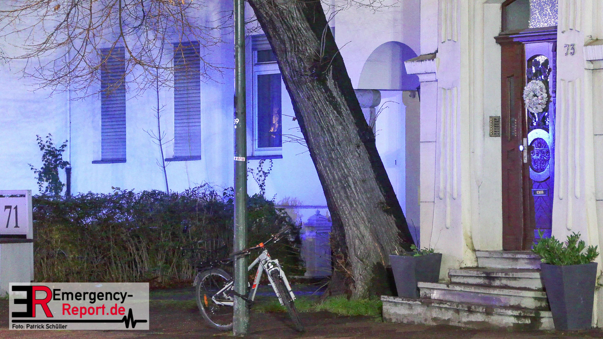 Bei Eintreffen der Einsatzkräfte stellte sich heraus, dass ein großer Baum, zwischen der Hausnummer 71 und 73, in akute Schieflage geraten war. Umgehend wurde die Einsatzstelle großflächig abgesperrt und weitere Kräfte nachgefordert.
