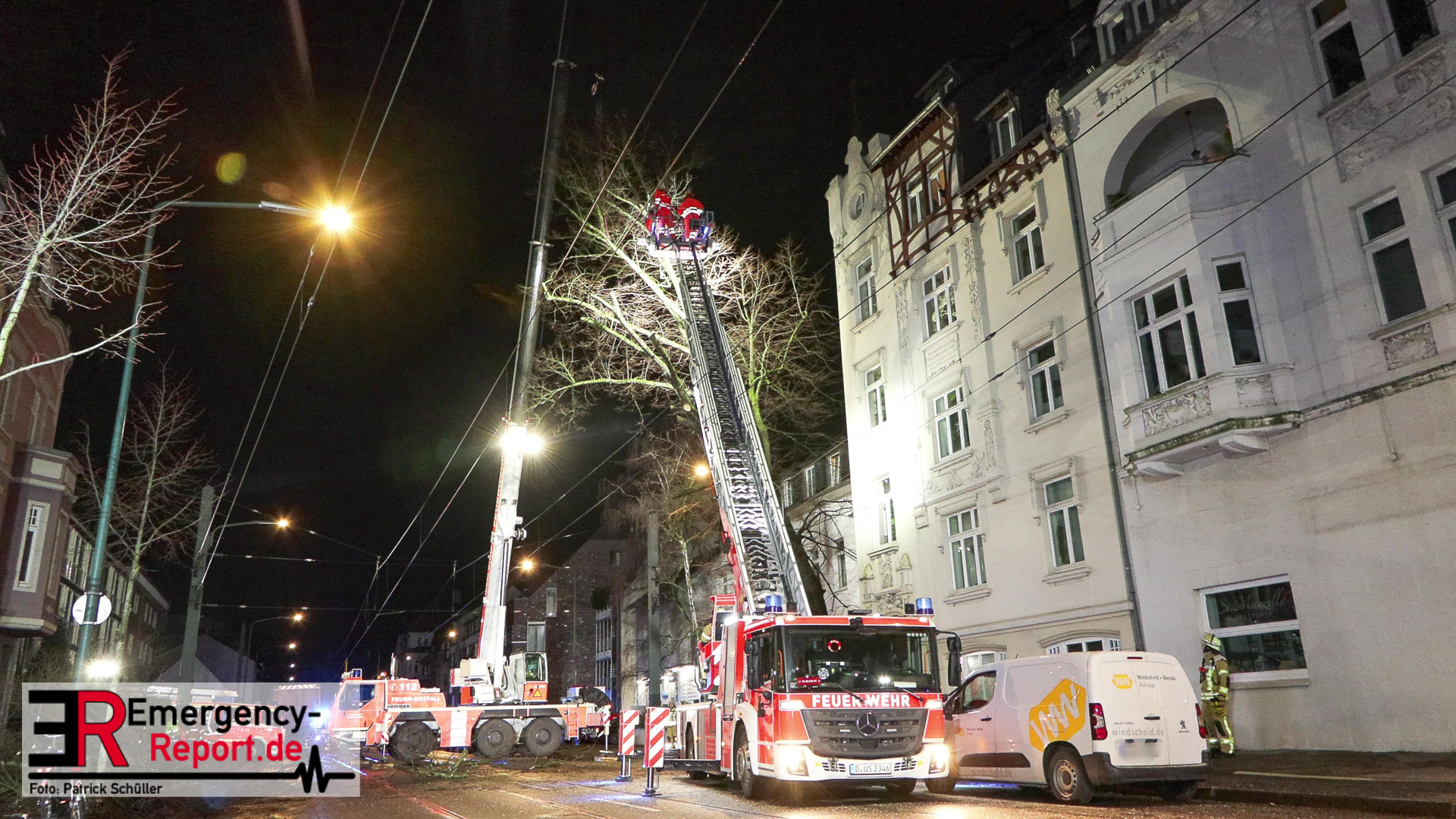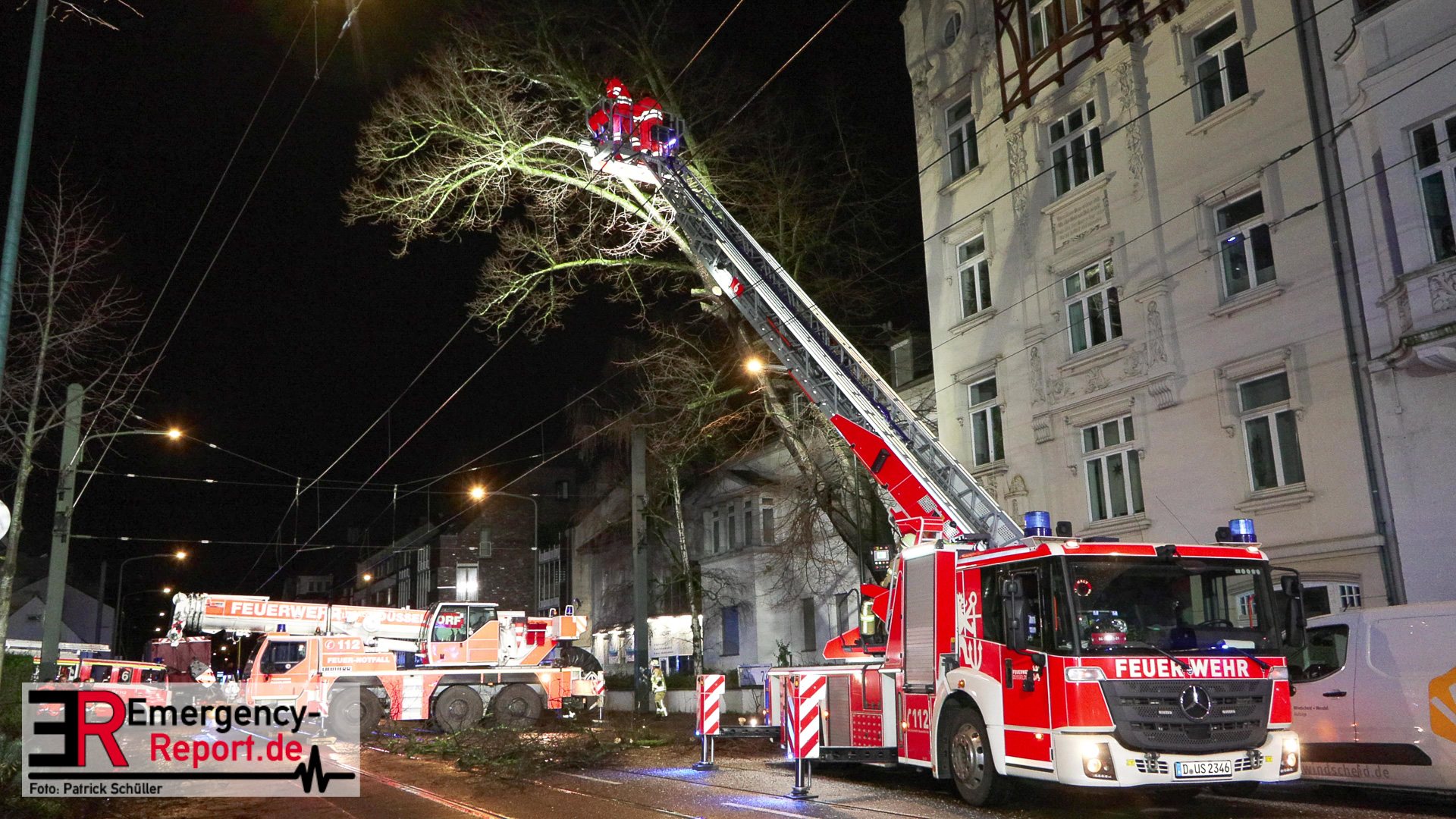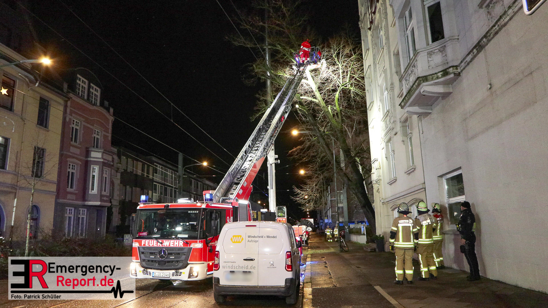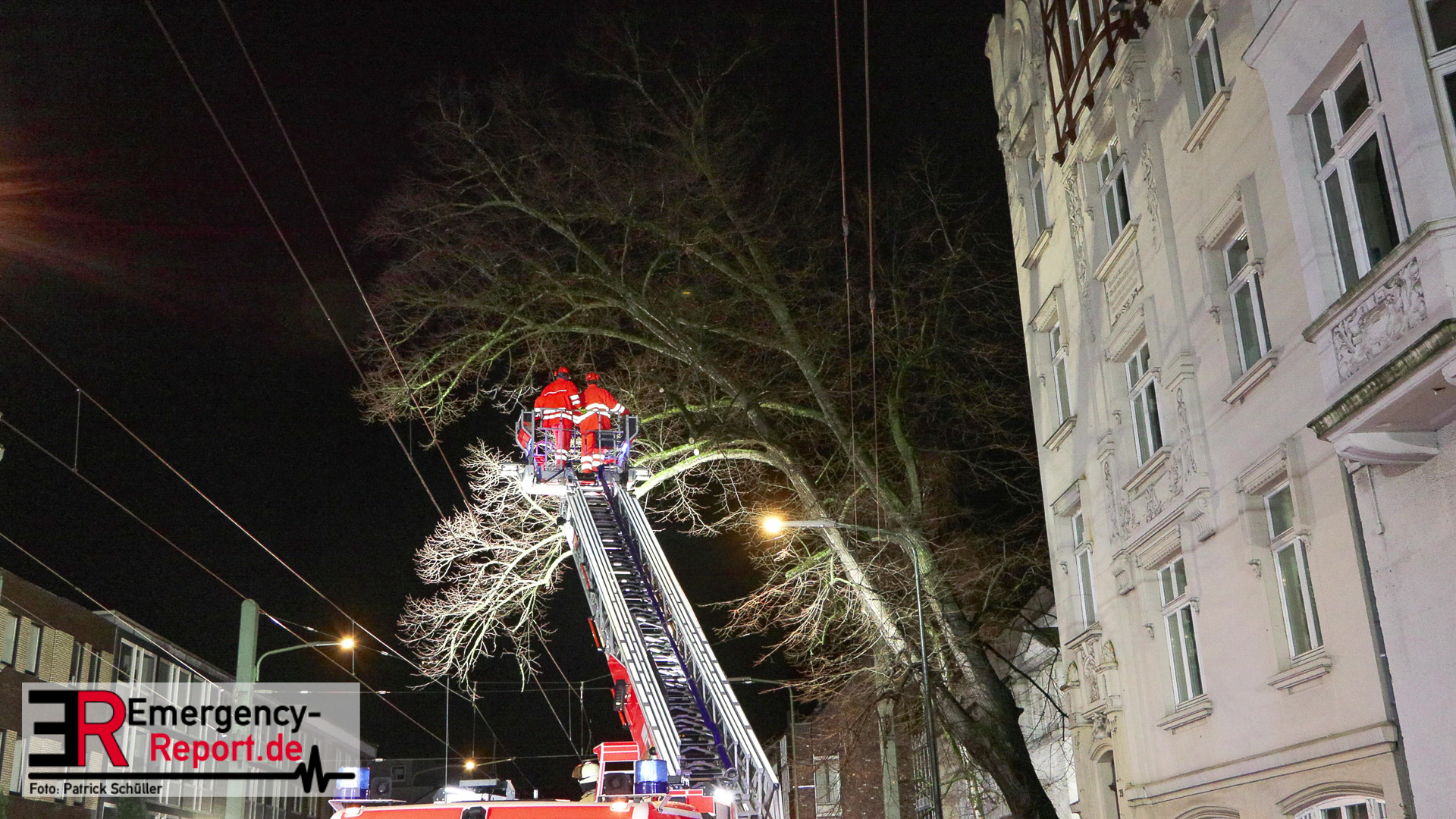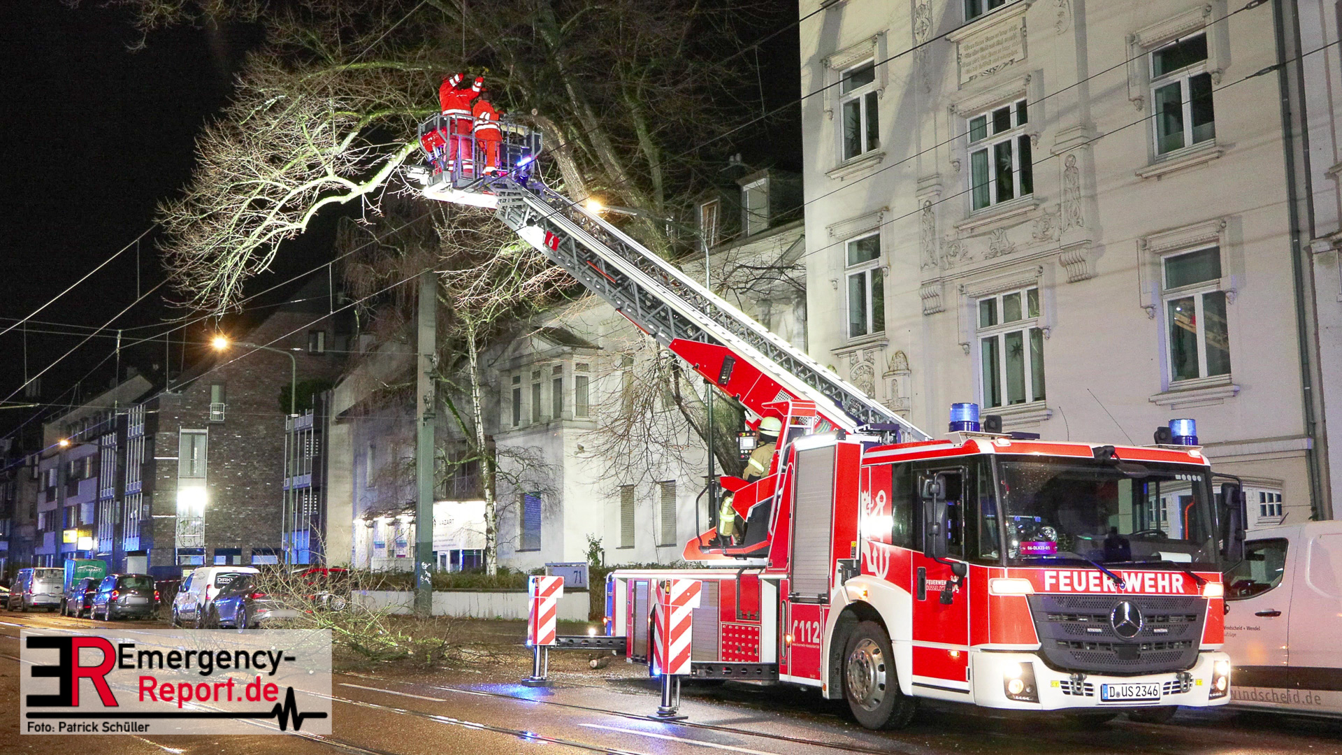 gesichert und vorsichtig zu Boden gebracht. Während der mehrstündigen Einsatzmaßnahmen war die Benrather Schloßallee, zwischen der