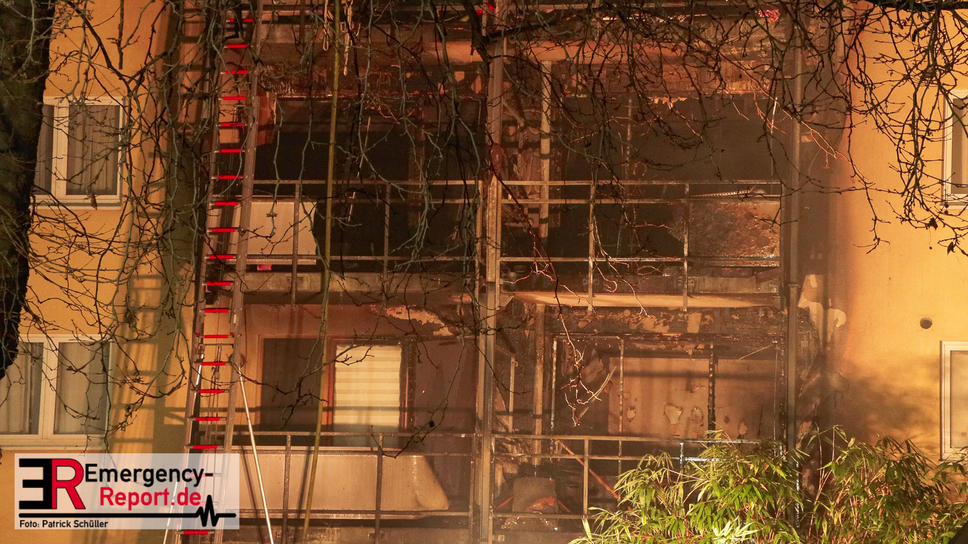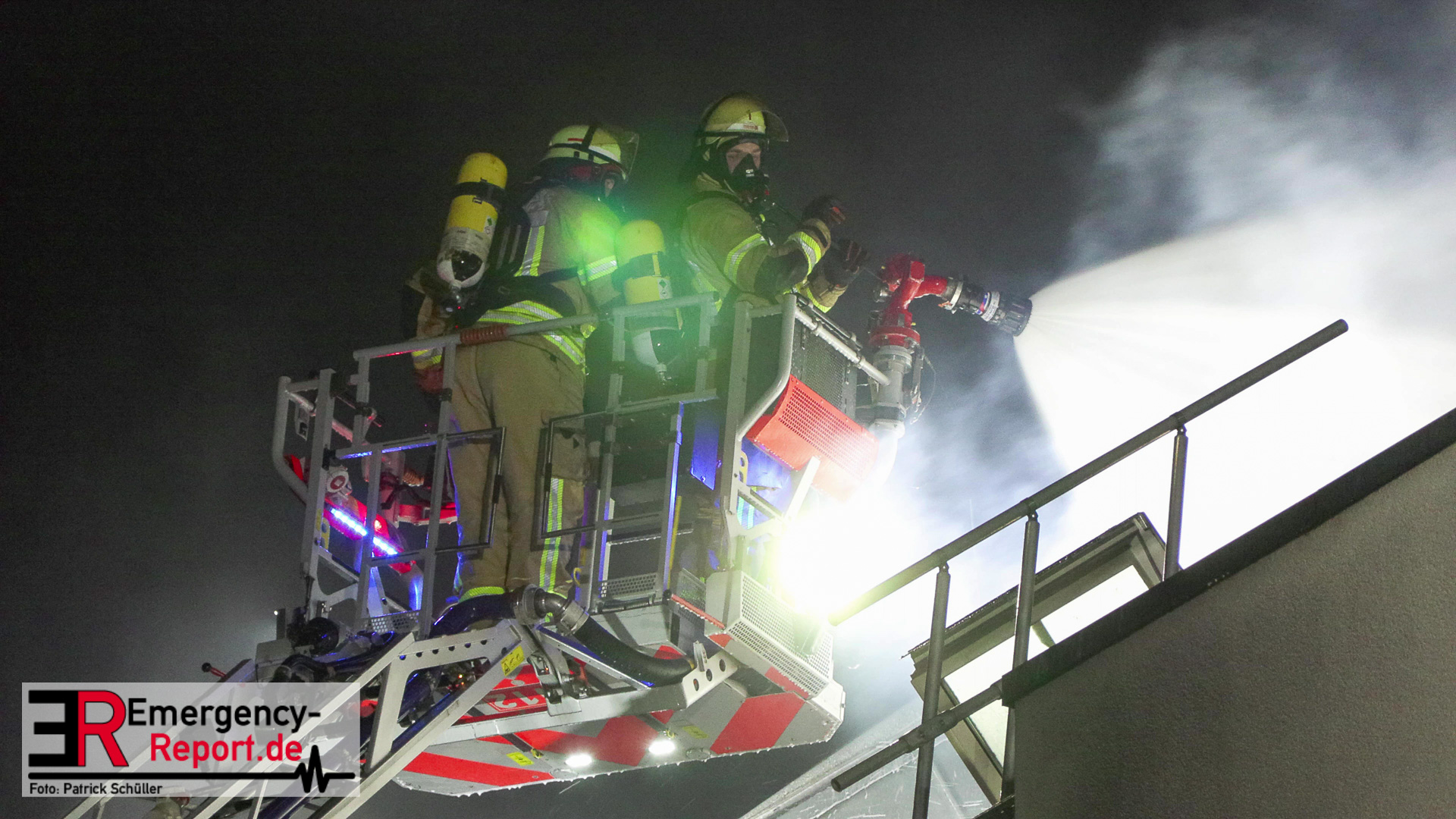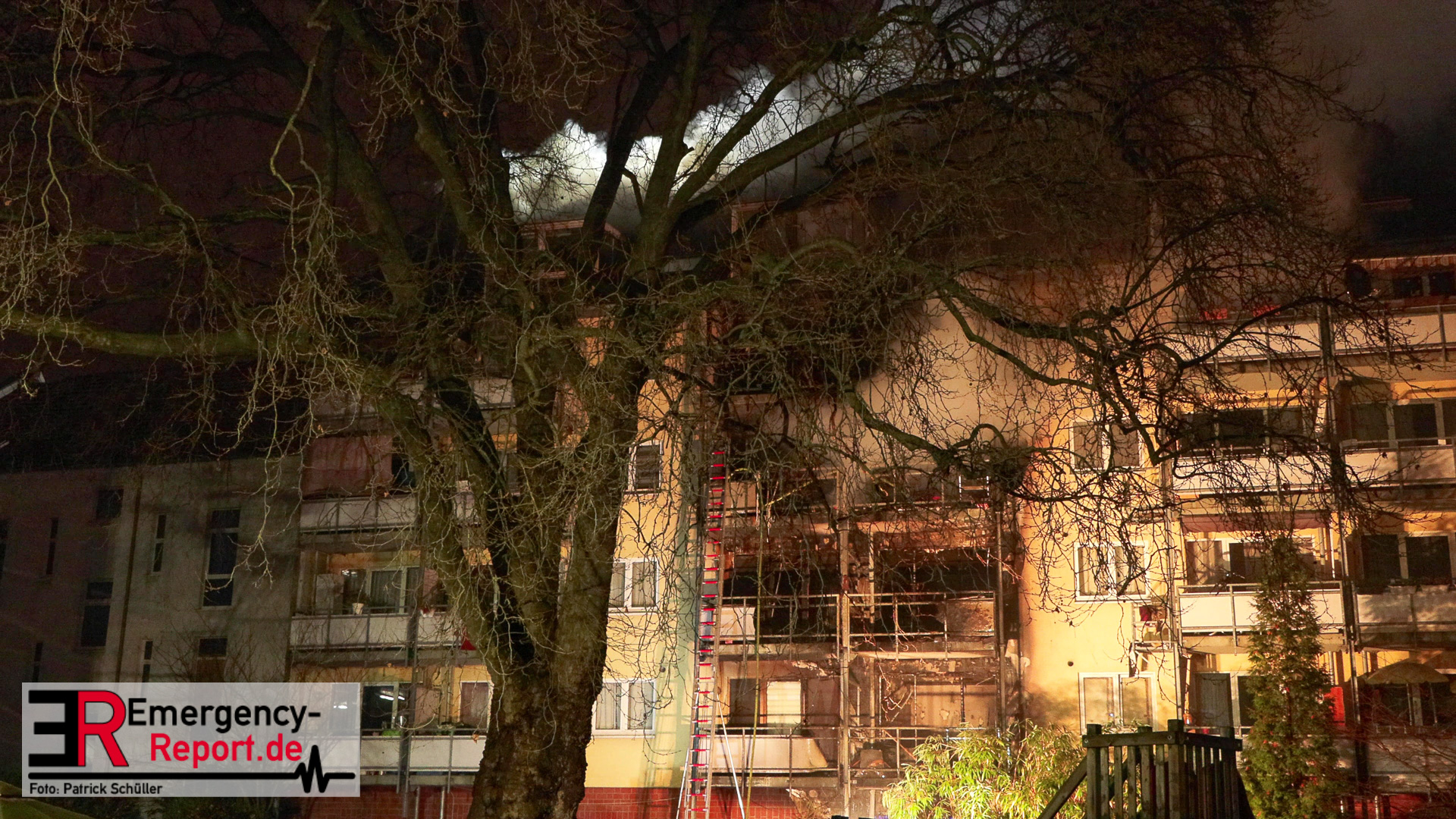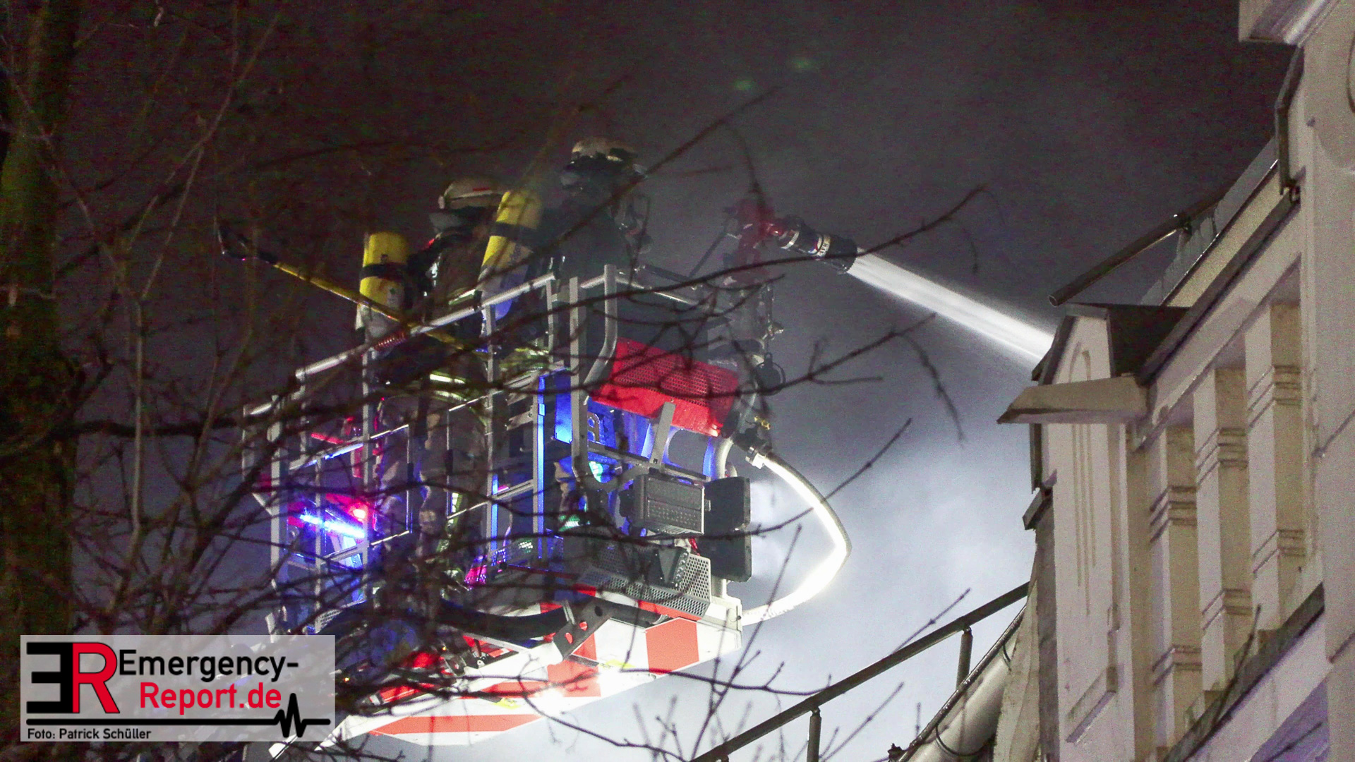 In der Industriestraße brannte laut dem Anrufer zunächst nur ein Mülleimer, im Bereich eines Gebäudedurchgangs. Noch während der Leitstellendisponent den Anrufer befragte, hörte er deutliche Brandgeräusche. Es wurden sofort zwei Löschzüge alarmiert. Beim Eintreffen an der Einsatzstelle bot sich den Einsatzkräften folgendes Bild: Die Flammen schlugen sowohl an der vorderen-, als auch an der hinteren Gebäudefront nach oben. Dort hatten sie bereits die Fensterscheiben mehrerer Wohnungen in verschiedenen Etagen zerstört. Somit brannte es zeitgleich in mehreren Wohnungen und den Fassaden. An vielen Fenstern machten sich Menschen bemerkbar, die durch die Feuerwehr gerettet werden mussten. Parallel wurden über zwei Drehleiterfahrzeuge als auch über den Treppenraum über 30 Menschen gerettet. Zwei Personen wurden lebensgefährlich verletzt. Der Brand entwickelte sich indes in den Dachstuhl und in das angrenzende Gebäude. Ein massiver Einsatz von ca. 140 Feuerwehr und ca. 60 Rettungsdienstkräften waren notwendig. Ebenfalls wurde im Bereich Rettungsdienst Unterstützung aus dem Rheinkreis Neuss angefordert, um gemeinsam die Patienten in die umliegenden Krankenhäuser zu transportieren. Für manche Bewohner stellt die Stadt Düsseldorf eine Notunterkunft bereit. Die beiden betroffenen Wohnhäuser sind zurzeit nicht bewohnbar, ein angrenzendes Altenheim konnte geschützt werden und ist nicht betroffen. Akut löscht die Feuerwehr noch Glutnester, wodurch ein Ende des Einsatzes sich bis in den Heiligen Abend ziehen wird.