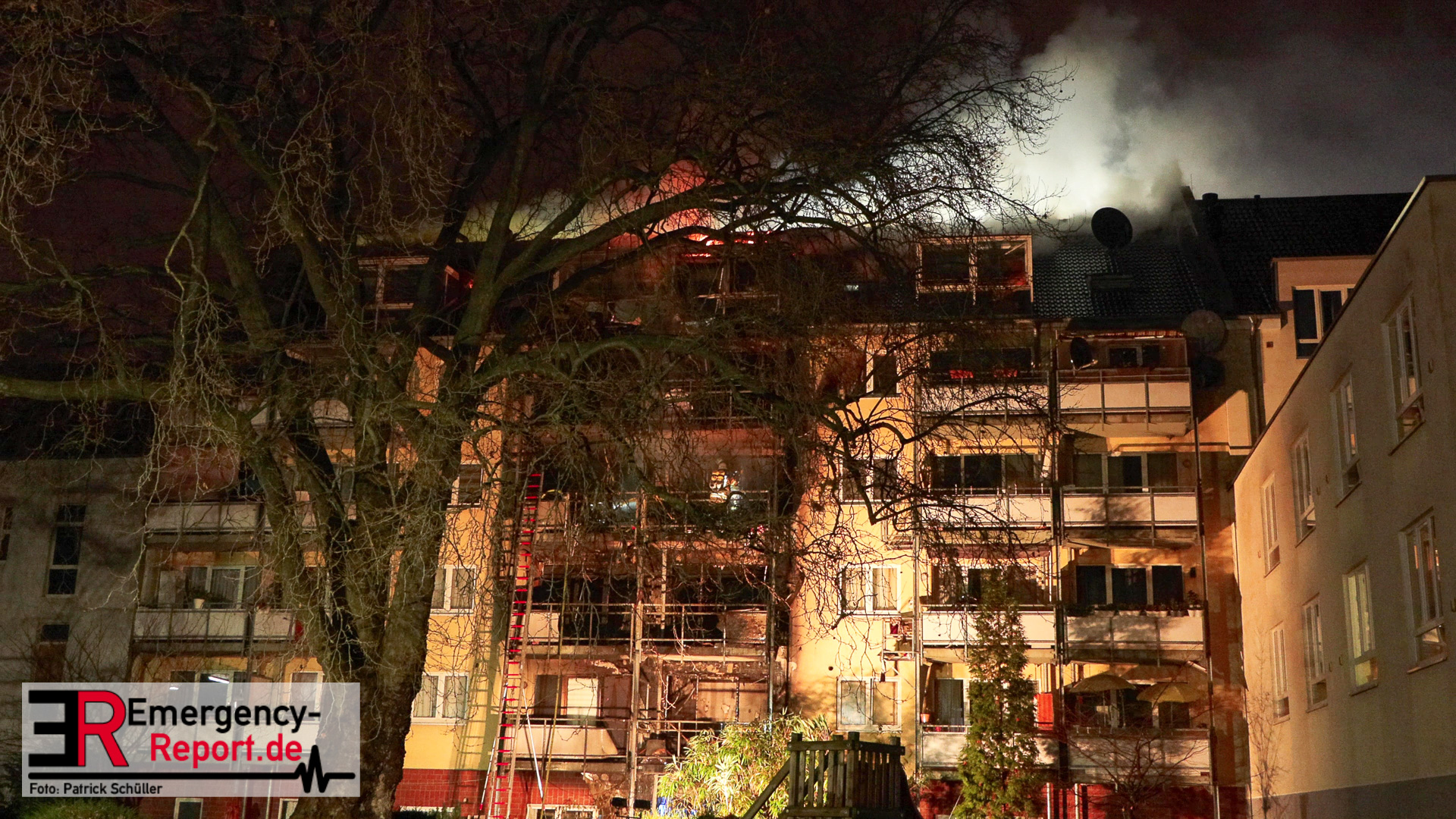 Wie bereits durch die Feuerwehr Düsseldorf berichtet, schlug der Brand eines Mülleimers auf ein Mehrfamilienhaus in Oberbilk über und löste einen Großeinsatz aus.