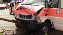 An der Unfallstelle bot sich den Einsatzkräften folgendes Bild: Unfallbeteiligt waren ein Rettungswagen eines privaten Unternehmens, dass nicht aus Düsseldorf kommt und ein PKW, die aus bisher ungeklärter Ursache miteinander kollidierten.