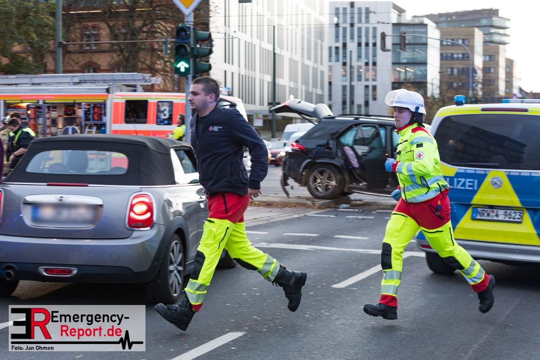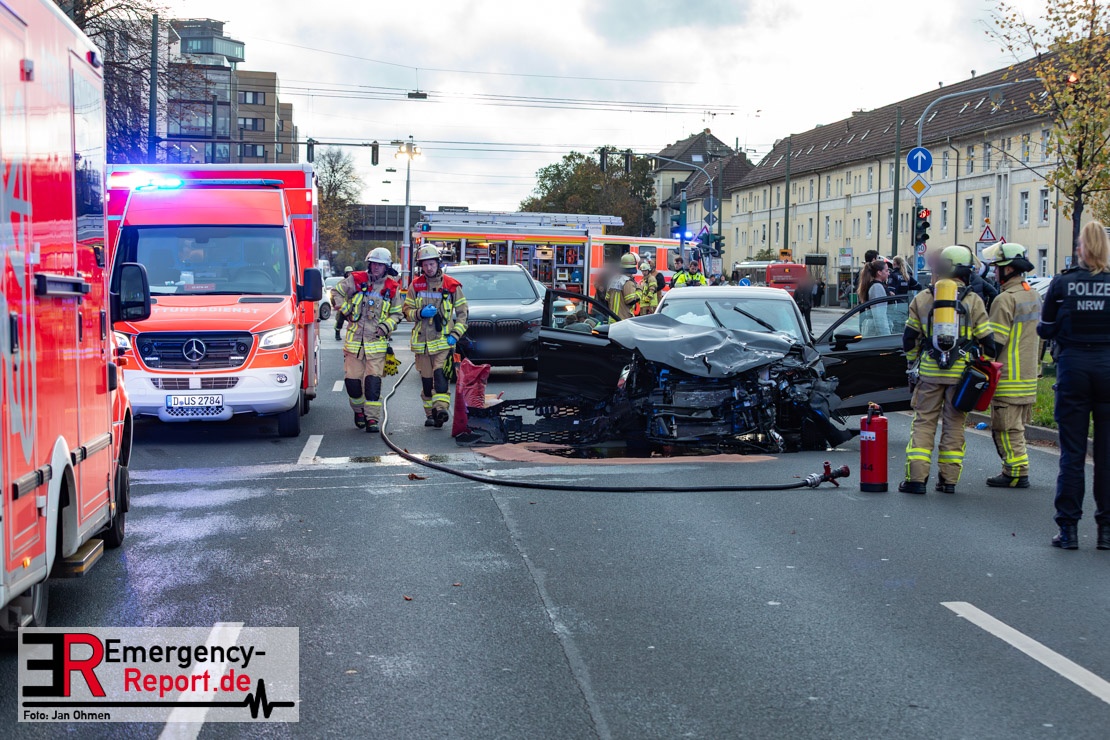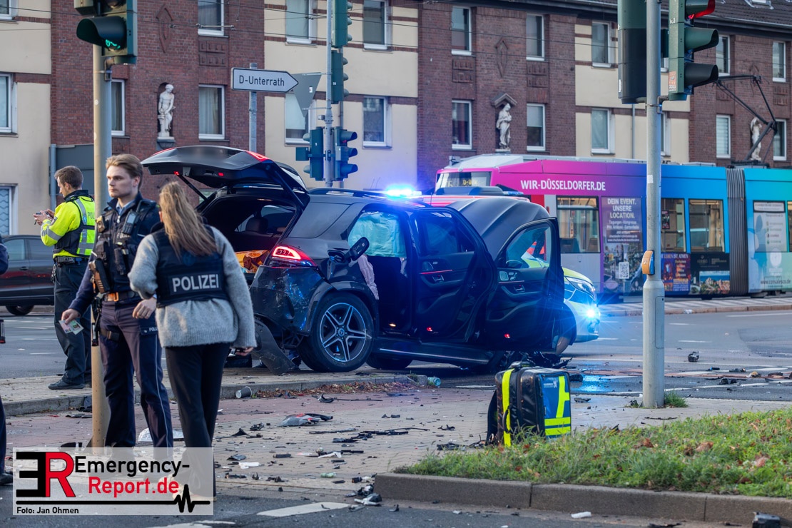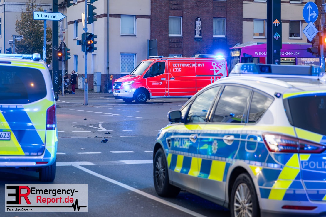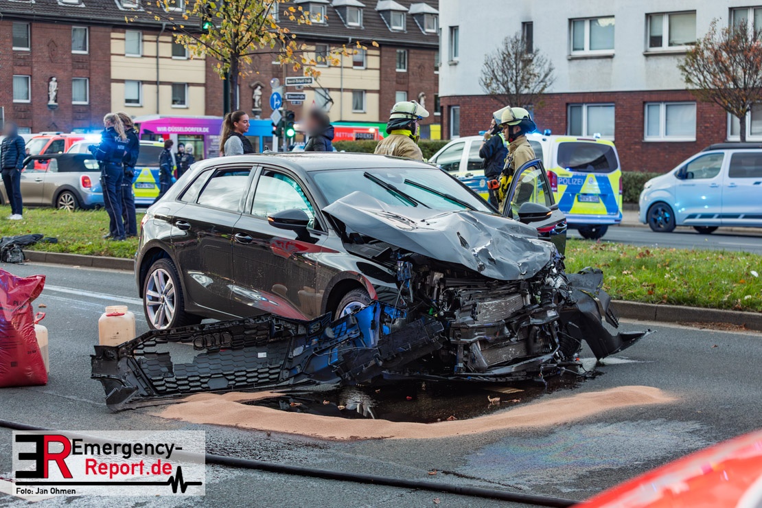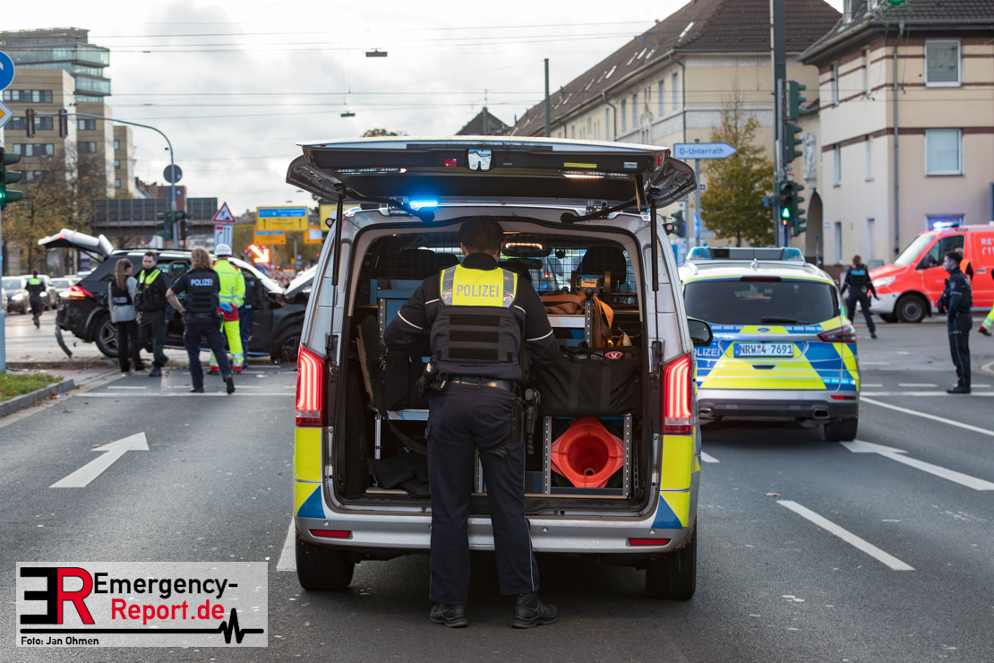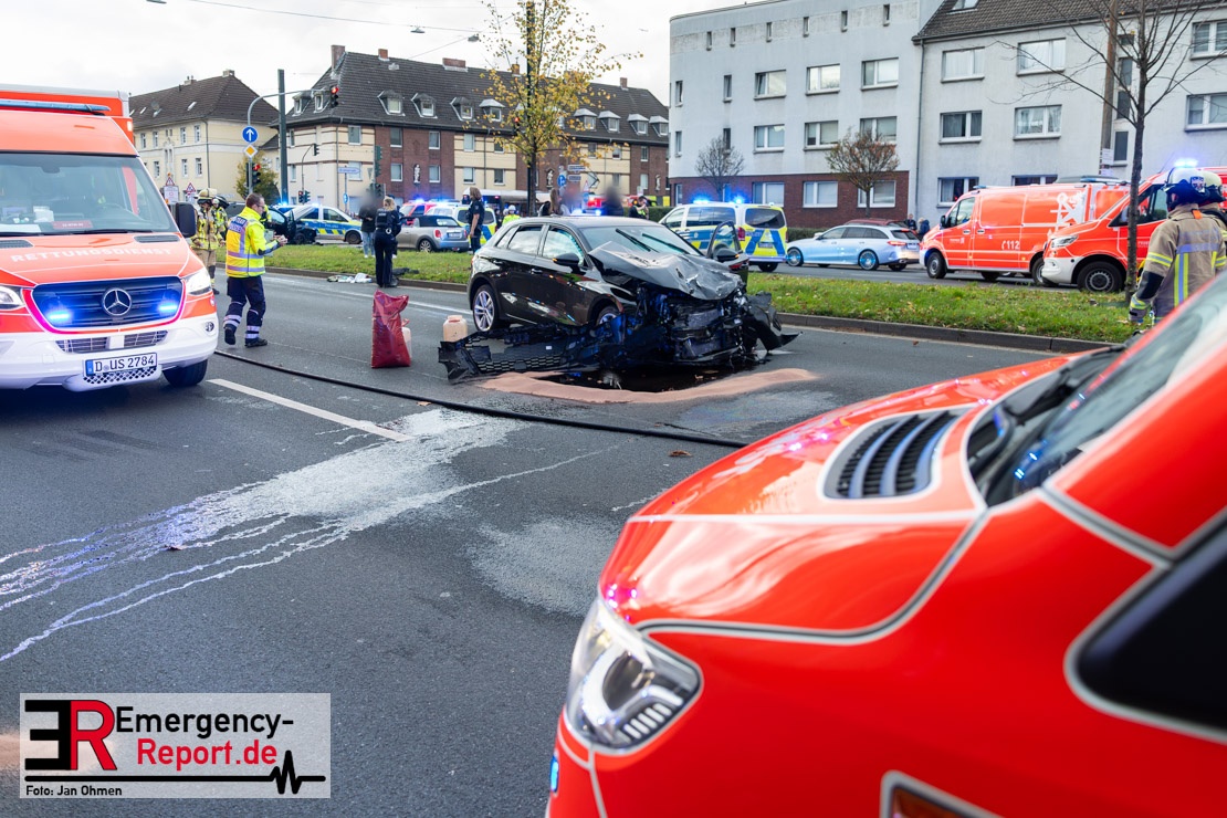 Bei einem Verkehrsunfall am Freitagnachmittag in Derendorf wurde eine Fußgängerin lebensgefährlich verletzt. Zwei Pkw waren im Kreuzungsbereich kollidiert, wobei eines der Fahrzeuge dann die Frau erfasste. Vier weitere Menschen wurden leicht verletzt.