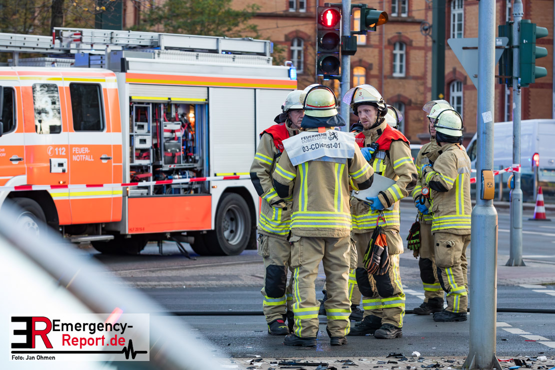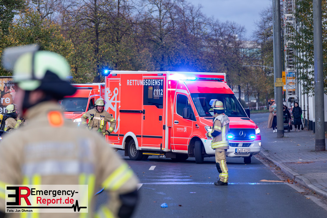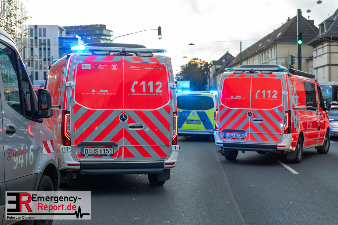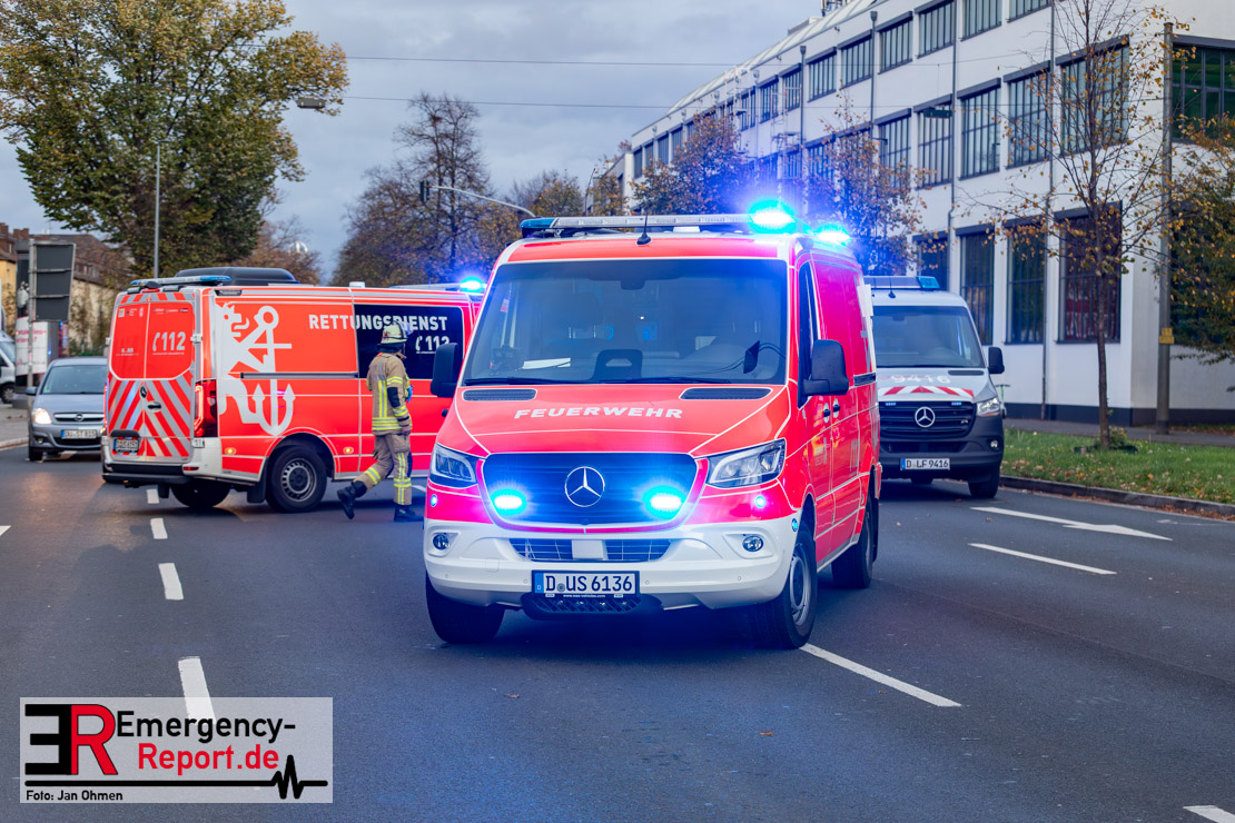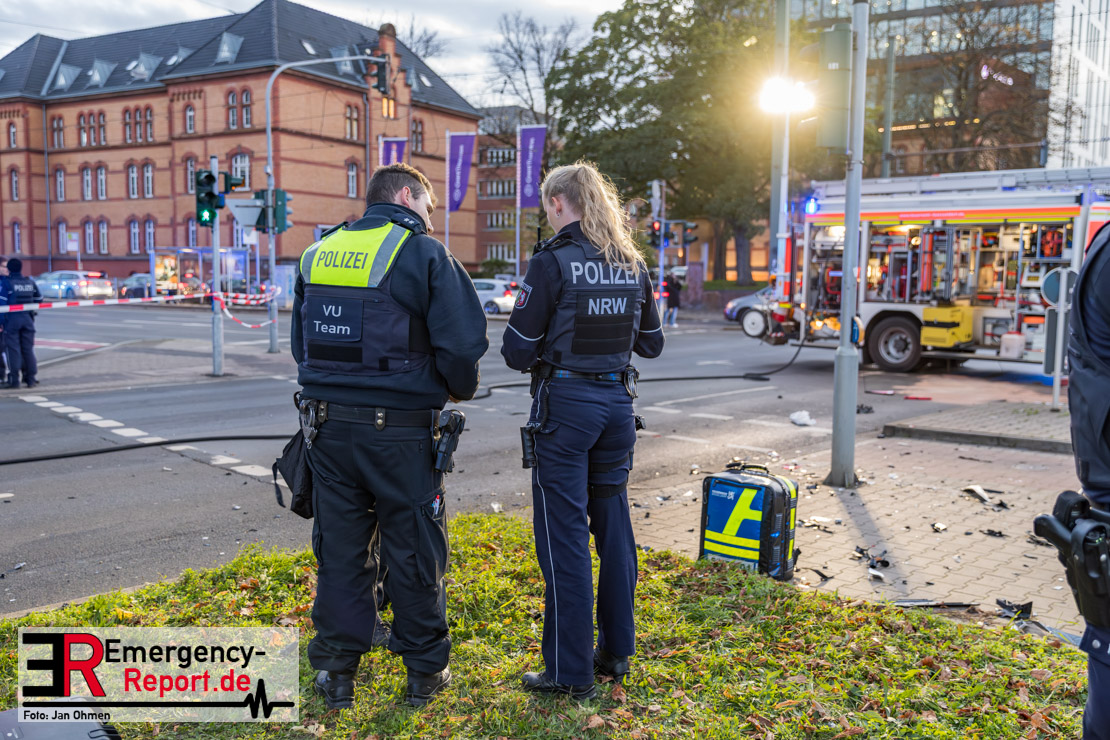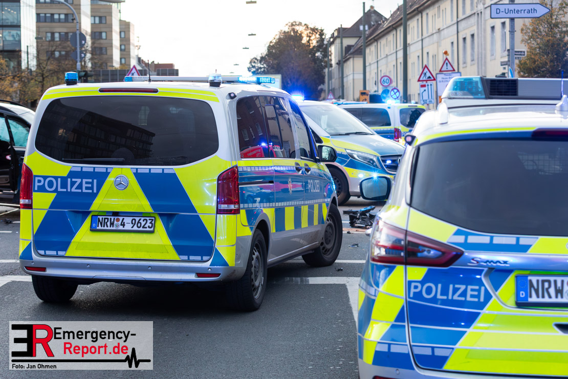 Bei einem Verkehrsunfall am Freitagnachmittag in Derendorf wurde eine Fußgängerin lebensgefährlich verletzt. Zwei Pkw waren im Kreuzungsbereich kollidiert, wobei eines der Fahrzeuge dann die Frau erfasste. Vier weitere Menschen wurden leicht verletzt.