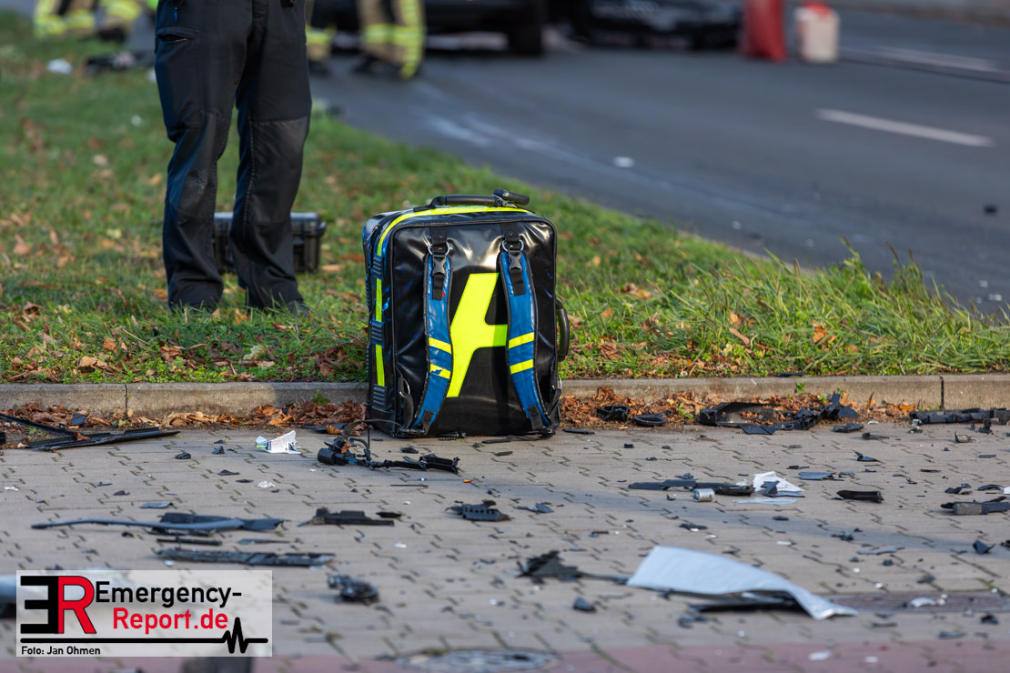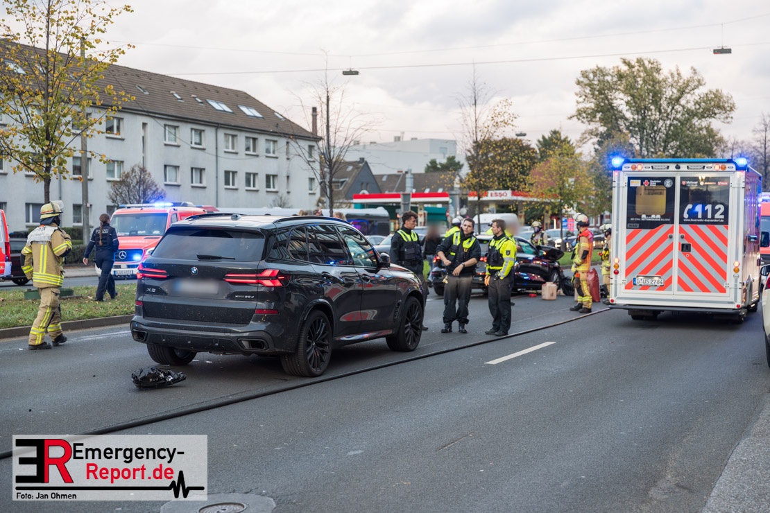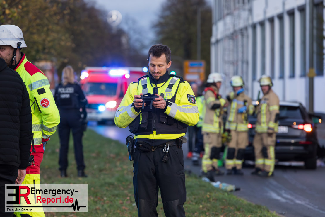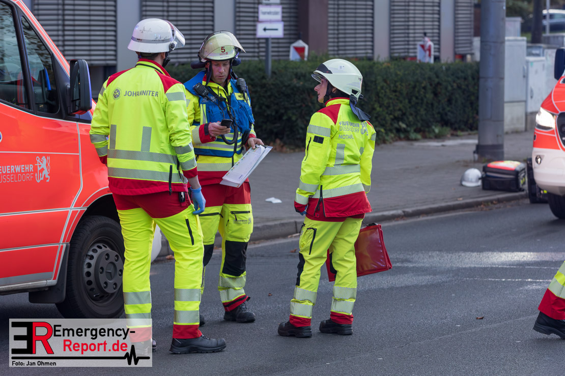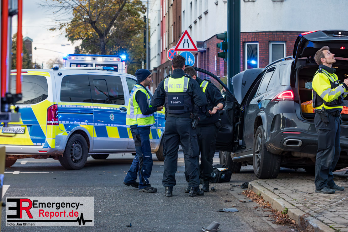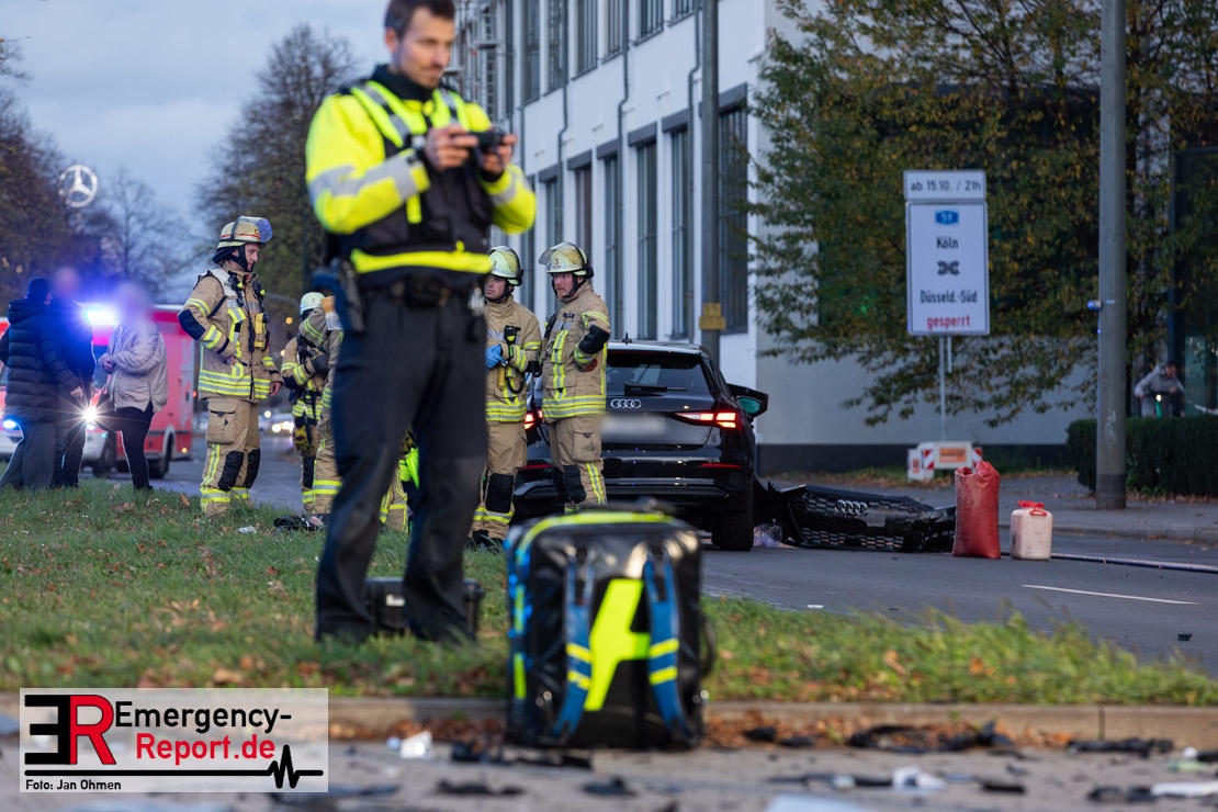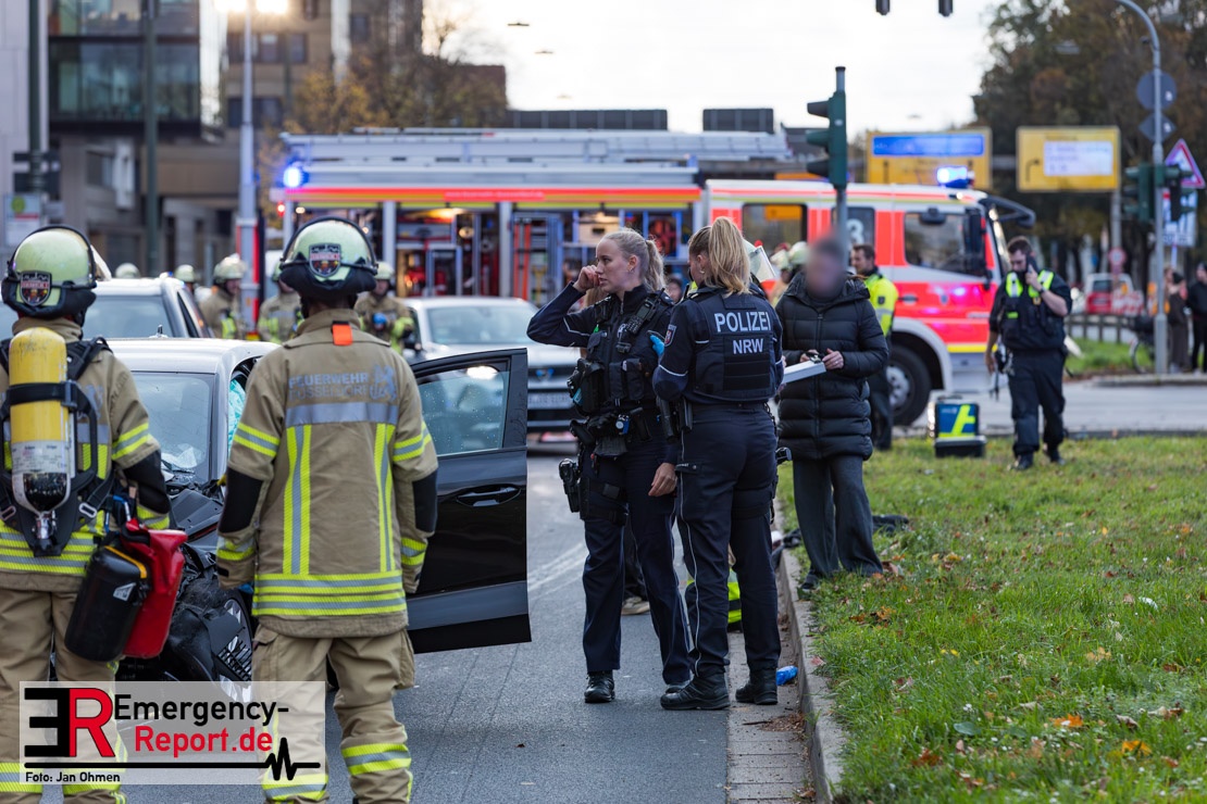 Bei einem Verkehrsunfall am Freitagnachmittag in Derendorf wurde eine Fußgängerin lebensgefährlich verletzt. Zwei Pkw waren im Kreuzungsbereich kollidiert, wobei eines der Fahrzeuge dann die Frau erfasste. Vier weitere Menschen wurden leicht verletzt.