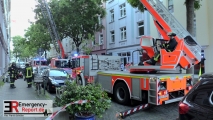 Um 20:14 Uhr ging auf der Leitstelle der Feuerwehr Düsseldorf der Notruf ein. Der Anrufer meldete einen Zimmerbrand, bei dem sich noch Personen in der Wohnung befinden sollten. Nach diesen Informationen, entschied der Leitstellendisponent den Löschzug Hütten- und Münsterstraße, den Führungsdienst, Sonderfahrzeuge und den Rettungsdienst Richtung Weiherstraße zu schicken. Der ersteintreffende Rettungswagen konnte, was die Person anging Entwarnung geben. Als der Bewohner das Feuer in seiner Dachgeschosswohnung entdeckte, unternahm er noch einen Löschversuch. Diesen musste er aber aufgeben und flüchtete sich nach unten, wo er vom Rettungsdienst aufgenommen und untersucht wurde. Er musste mit einer Rauchgasintoxikation in die Universitätsklinik transportiert werden. Die zwischenzeitlich eingetroffenen Feuerwehrkräfte begannen umgehend mit der Brandbekämpfung in der Dachgeschosswohnung. Nach circa 20 Minuten konnte der Einsatzleiter dann Feuer in Gewalt melden. Im Anschluss mussten Teile der Deckenverkleidung abgenommen werden, um weitere Glutnester ausfindig zu machen und abzulöschen. Parallel wurde mit Hochleistungslüftern das Gebäude gelüftet. Durch weitere Einsatztrupps wurden die benachbarten Wohnungen kontrolliert um eventuelle Schäden zu lokalisieren. Durch die Stadtwerke wurde die Stromversorgung des Gebäudes getrennt. Zur Brandursachenermittlung wurde die Kriminalpolizei zu der komplett ausgebrannten Dachgeschosswohnung gerufen. Für die knapp vierzig Einsatzkräfte war der Einsatz nach zwei Stunden beendet.