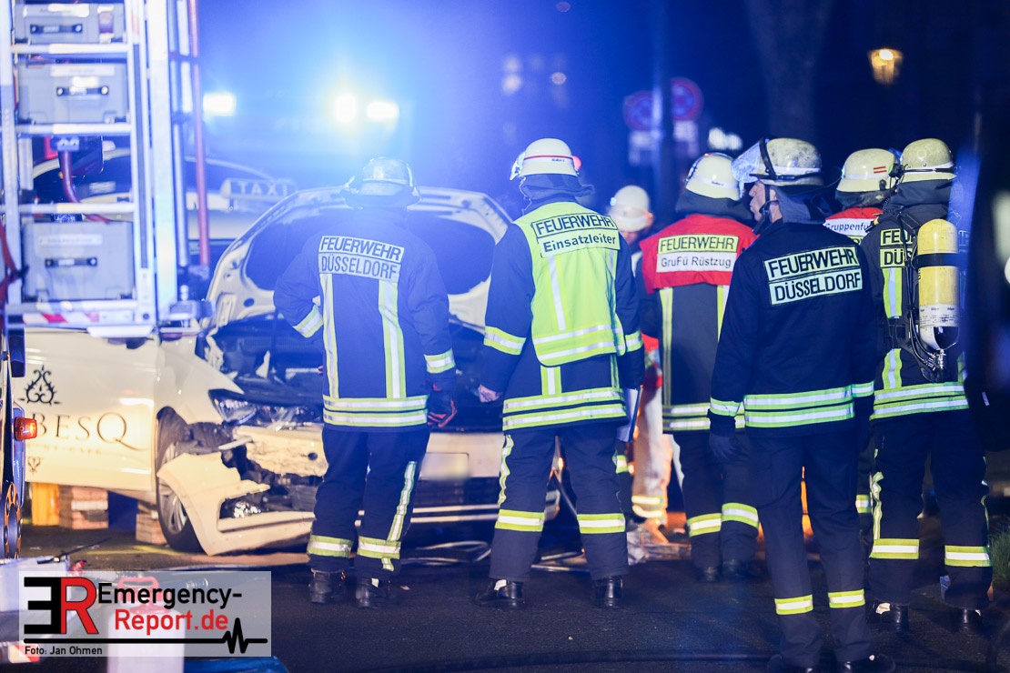 Nach derzeitigem Stand der Ermittlungen der Polizei Düsseldorf beabsichtigte eine 31 Jahre alte Frau aus Bonn mit ihrem Golf auf der Hammer Straße rückwärts auszuparken. Dabei kam es zu einem Zusammenstoß mit einem Taxi, das ein 37-Jähriger aus Düsseldorf steuerte. Der Taxifahrer musste von Rettungskräften der Feuerwehr aus seinem Fahrzeug befreit werden. Im Anschluss wurde er in eine Klinik gebracht.