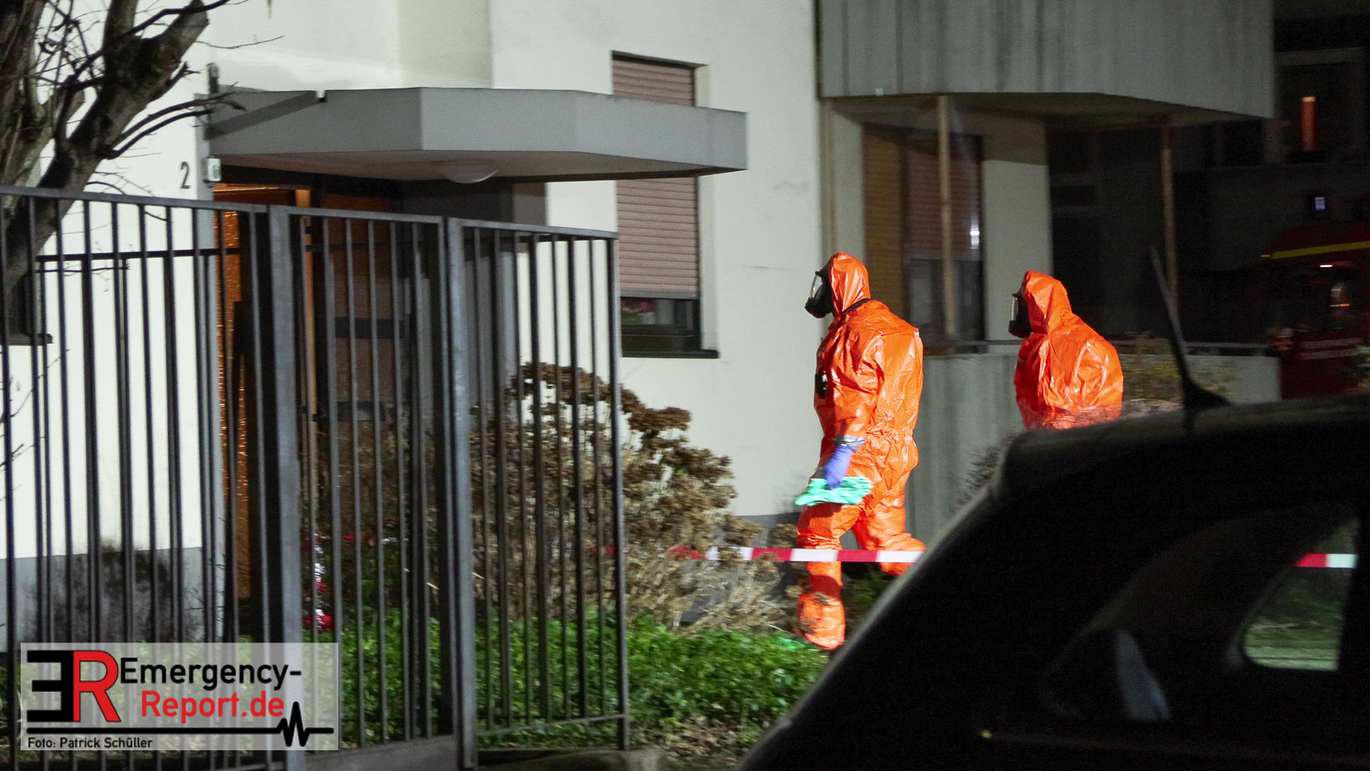 Es entwickelte sich ein langwieriger Großeinsatz von Feuerwehr und Polizei. Die Wohnung wurde nur noch mit Chemikalienschutzanzügen betreten. Evakuierte Hausbewohner wurden im Großraumkrankenwagen der Feuerwehr betreut. Im Laufe der Nacht konnte schließlich
