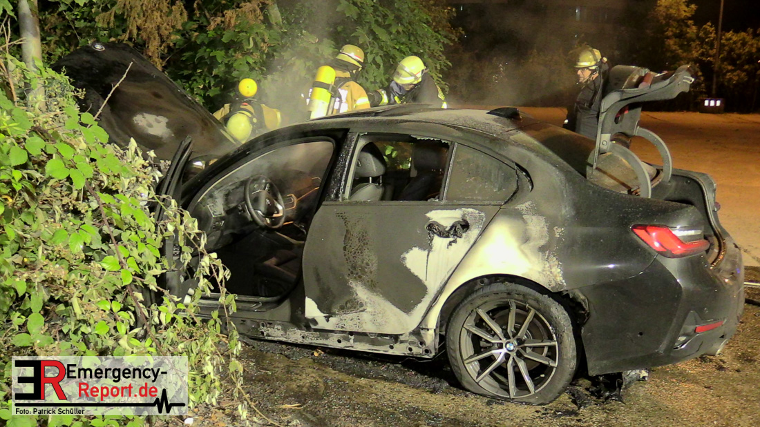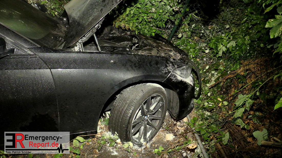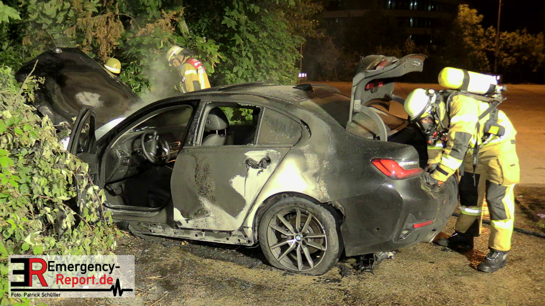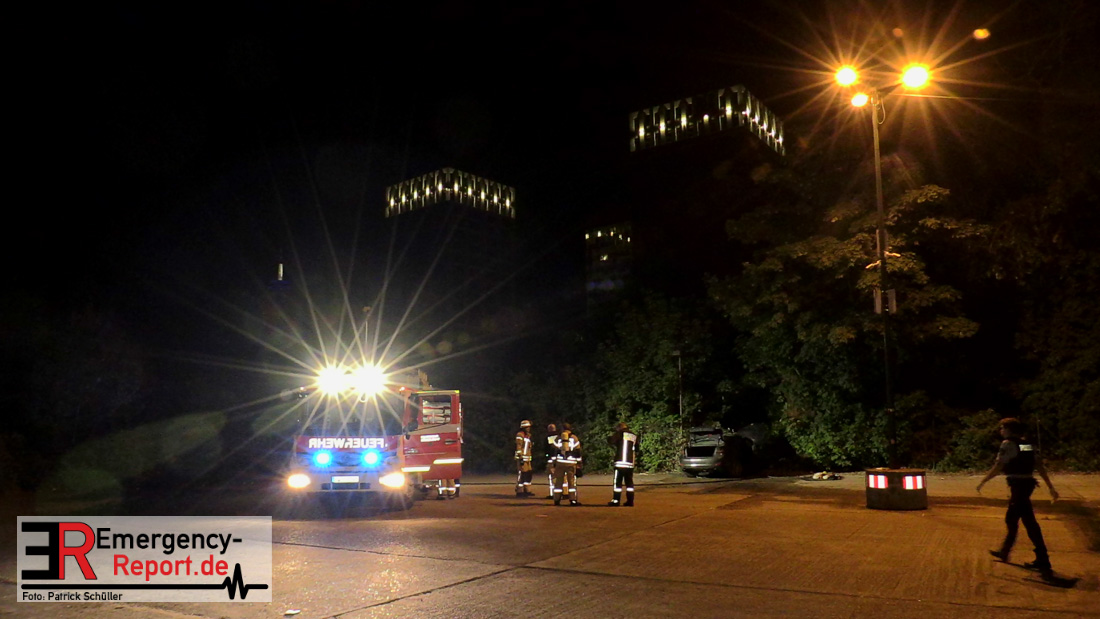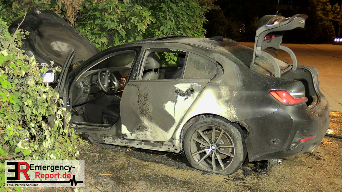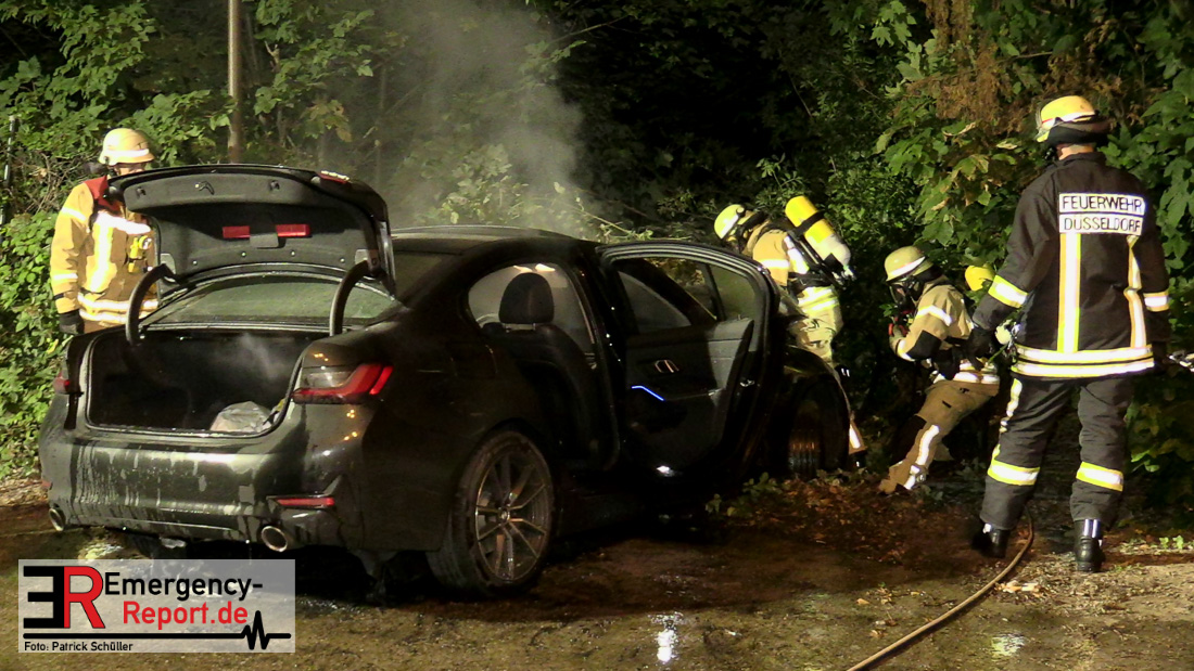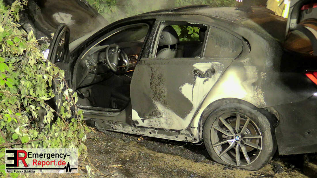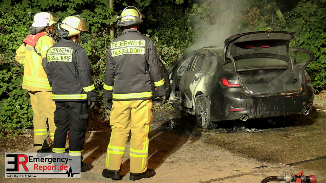 Gegen 00:33 Uhr erhielt ein Streifenteam der Polizei Düsseldorf den Einsatz, dass sich auf einem Parkplatz an der Kesselstraße ein Verkehrsunfall ereignet habe. Die Melder berichteten zudem, dass sie von dem Parkplatz seit geraumer laute Motorengeräusche und Reifenquietschen gehört hätten. An der Örtlichkeit eingetroffen, stellten die Beamten einen BMW fest, aus dessen Fahrzeugfront bereits Flammen schlugen. Der BMW hatte zuvor die Umzäunung des Parkplatzes durchbrochen und stand zum Teil in einer Hecke. Die Feuerwehr konnte den Brand schnell löschen. Große Teile des Innenraums waren jedoch von den Flammen in Mitleidenschaft gezogen worden. Von der Unfallörtlichkeit flüchteten bei Eintreffen des Streifenwagens mehrere Personen. Im Rahmen der Nahbereichsfahndung konnte der mutmaßliche Fahrzeugführer, ein 22-Jähriger aus Düsseldorf mit türkischer Staatsangehörigkeit angetroffen und vorläufig festgenommen werden. Zwei mutmaßliche Beifahrer des jungen Düsseldorfers konnten ebenfalls angetroffen und kontrolliert werden. Während der Sachverhaltsklärung vor Ort stellte sich heraus, dass der 22-Jährige nicht im Besitz einer Fahrerlaubnis ist. Obendrein wurden im Fahrzeug Betäubungsmittel aufgefunden. Bei dem BMW handelte es sich um einen Mietwagen. In einer ersten Einlassung gab der Düsseldorfer an, gefahren zu sein und mit seinen Freunden für den Führerschein geübt zu haben. Ihm wurde eine Blutprobe entnommen. Eine Strafanzeige wegen Fahrens ohne Fahrerlaubnis wurde gefertigt.