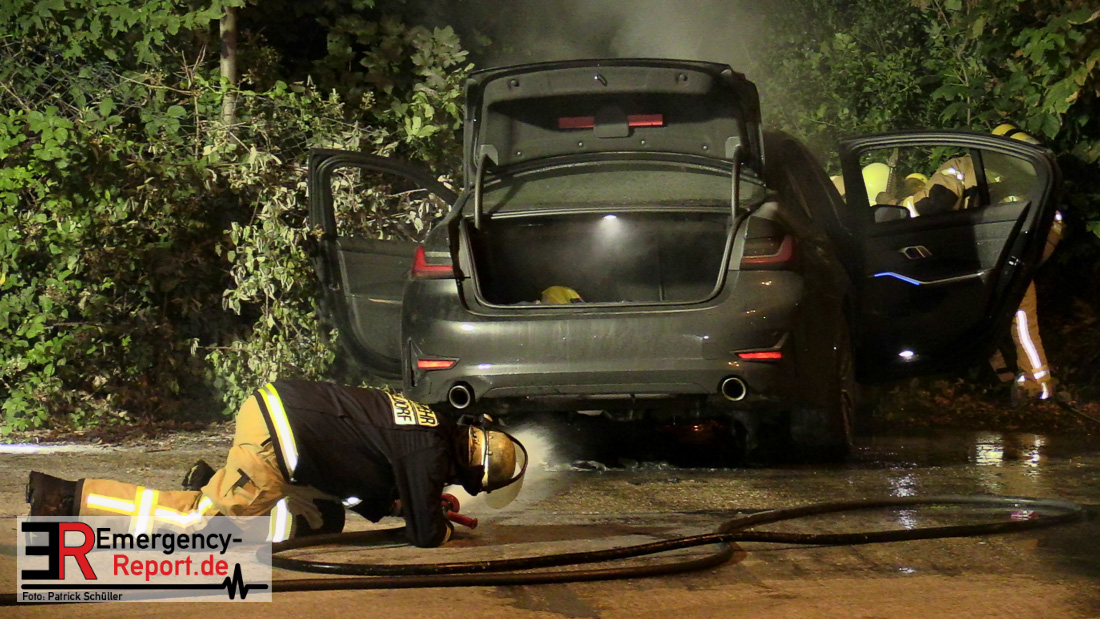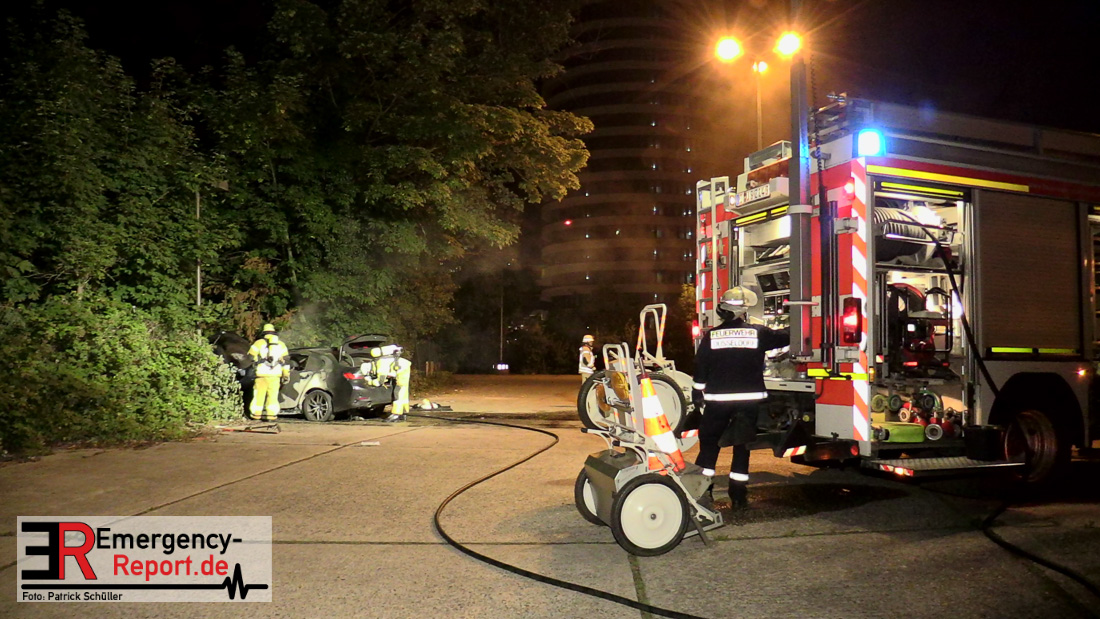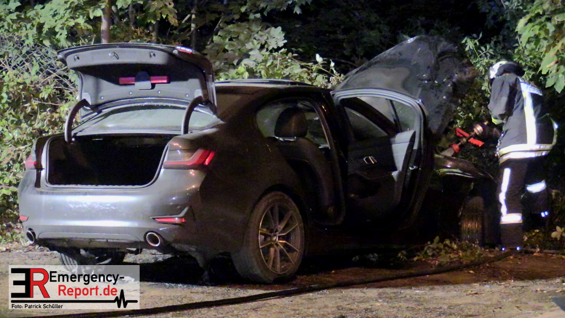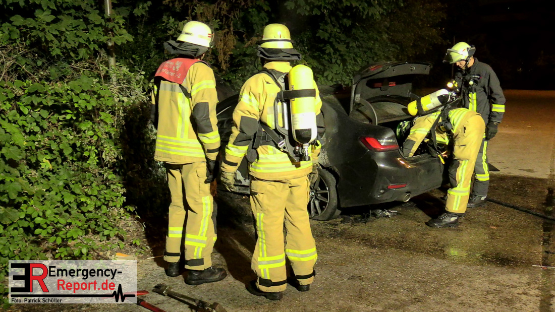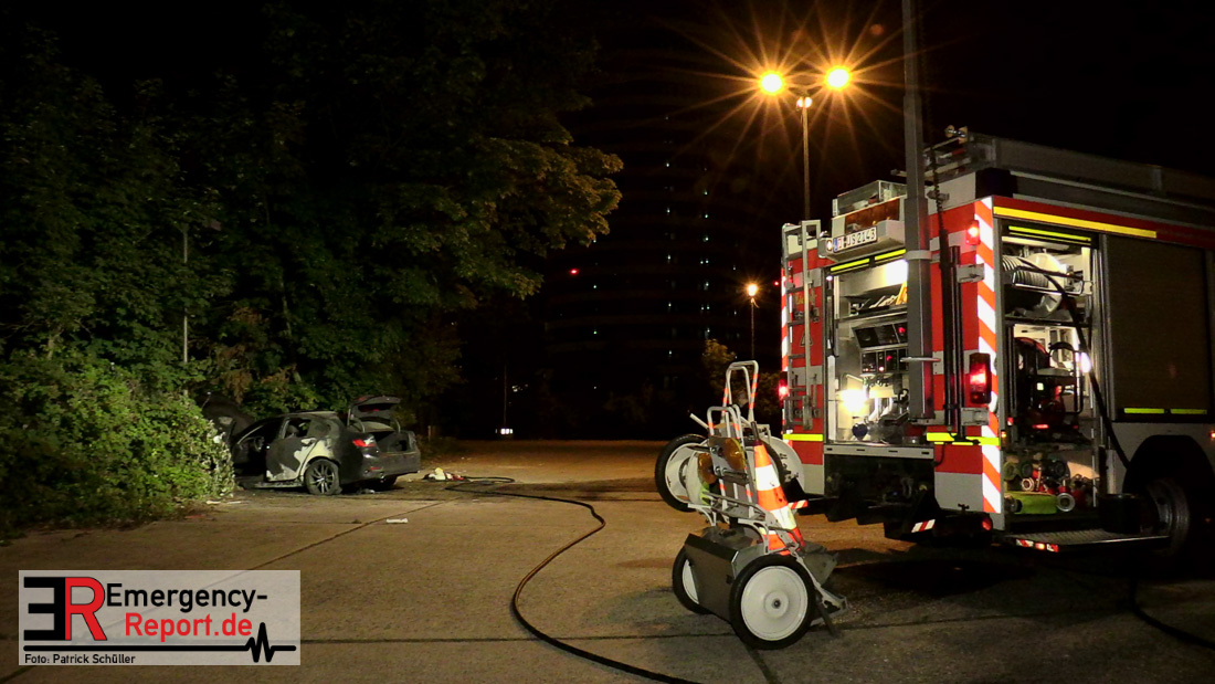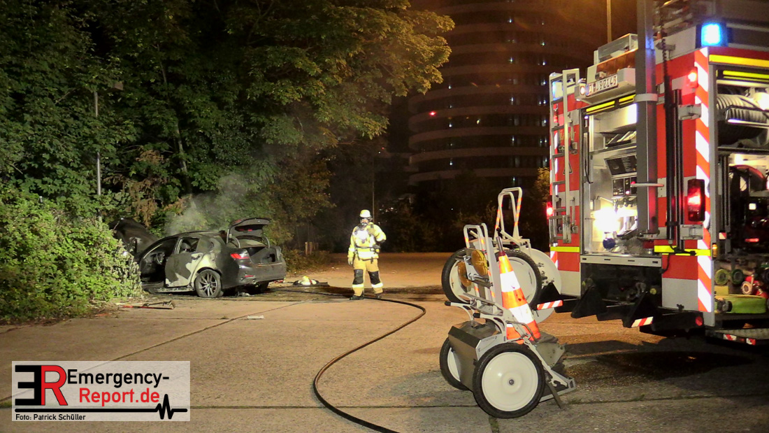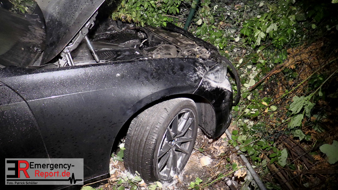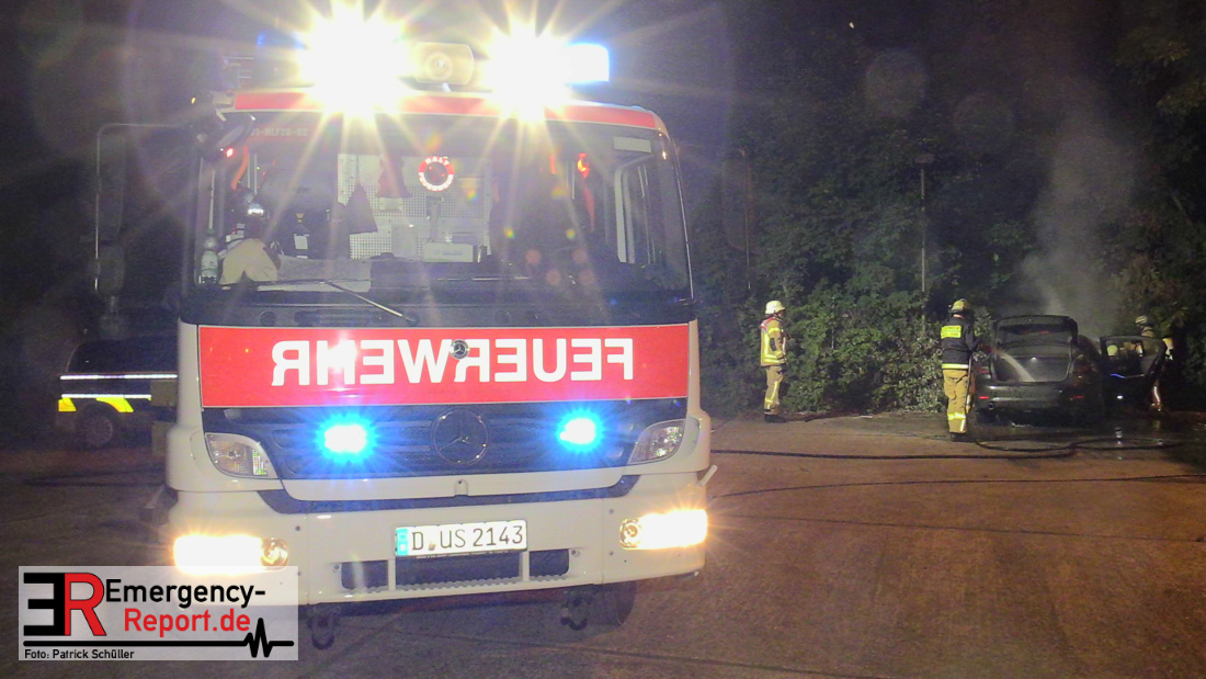 Gegen 00:33 Uhr erhielt ein Streifenteam der Polizei Düsseldorf den Einsatz, dass sich auf einem Parkplatz an der Kesselstraße ein Verkehrsunfall ereignet habe. Die Melder berichteten zudem, dass sie von dem Parkplatz seit geraumer laute Motorengeräusche und Reifenquietschen gehört hätten. An der Örtlichkeit eingetroffen, stellten die Beamten einen BMW fest, aus dessen Fahrzeugfront bereits Flammen schlugen. Der BMW hatte zuvor die Umzäunung des Parkplatzes durchbrochen und stand zum Teil in einer Hecke. Die Feuerwehr konnte den Brand schnell löschen. Große Teile des Innenraums waren jedoch von den Flammen in Mitleidenschaft gezogen worden. Von der Unfallörtlichkeit flüchteten bei Eintreffen des Streifenwagens mehrere Personen. Im Rahmen der Nahbereichsfahndung konnte der mutmaßliche Fahrzeugführer, ein 22-Jähriger aus Düsseldorf mit türkischer Staatsangehörigkeit angetroffen und vorläufig festgenommen werden. Zwei mutmaßliche Beifahrer des jungen Düsseldorfers konnten ebenfalls angetroffen und kontrolliert werden. Während der Sachverhaltsklärung vor Ort stellte sich heraus, dass der 22-Jährige nicht im Besitz einer Fahrerlaubnis ist. Obendrein wurden im Fahrzeug Betäubungsmittel aufgefunden. Bei dem BMW handelte es sich um einen Mietwagen. In einer ersten Einlassung gab der Düsseldorfer an, gefahren zu sein und mit seinen Freunden für den Führerschein geübt zu haben. Ihm wurde eine Blutprobe entnommen. Eine Strafanzeige wegen Fahrens ohne Fahrerlaubnis wurde gefertigt.