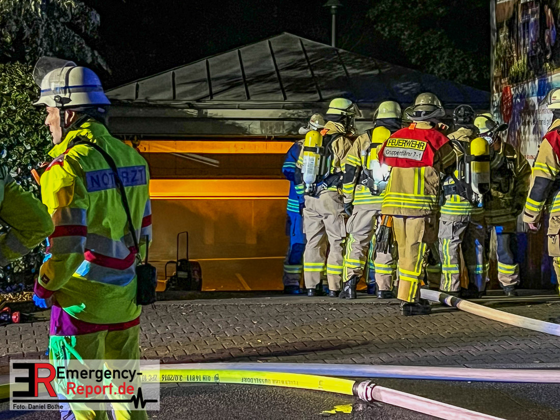 Am Dienstagabend meldeten mehrere Anrufer der Feuerwehr-Leitstelle ein Feuer in einer Tiefgarage eines Wohnkomplexes auf der Reusrather Straße. Aufgrund der eingehenden Meldungen alarmierte der Leitstellendisponent den Löschzug der zuständigen Feuerwache Werstener Feld, den Löschzug der Feuerwache Hüttenstraße sowie mehrere Sonderfahrzeuge der Feuerwache Posener Straße, den Führungsdienst sowie den städtischen Rettungsdienst mit zwei Rettungswagen und einem Notarzt.