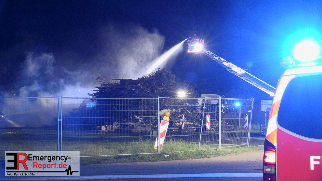 Zwei größere Brände in der Nacht (30.07.2020) beschäftigten die Feuerwehr über mehrere Stunden. Zunächst erreichten die Feuerwehrleitstelle mehrere Notrufe aus Flingern-Nord. Dort war im Bereich des Froschkönigweg Rauch und Feuerschein wahrnehmbar. Ca. drei Minuten später rückten die Einsatzkräfte der Feuerwache Werstener Feld zu einem Reifenbrand in die Harffstraße aus. Bei beiden Einsätzen waren keine Verletzen zu beklagen. Als die Einsatzkräfte der Feuerwache Behrenstraße an der Einsatzstelle in Flingern-Nord eintrafen, brannte ein Stapel von ca. 20 x 20 m gerodeter Baumstämme in voller Ausdehnung. Sofort wurden mehrere Strahlrohre und Wasserwerfer von Tanklöschfahrzeugen und Drehleitern eingesetzt um die Ausbreitung des Feuers zu verhindern. Im weiteren Verlauf des Einsatzes zog ein nachalarmiertes Baufahrzeug der Feuerwache Posenerstraße den Baumstapel auseinander um Glutnester abzulöschen. Ein in der Nähe abgestellter Anhänger wurde von der Hitze beschädigt. Zur Abklärung der Brandursache hat die Kriminalpolizei Ermittlungen aufgenommen. Der Sachschaden beläuft sich auf ca. 25.000 EUR. Der Einsatz war um ca. 06:30 Uhr beendet.