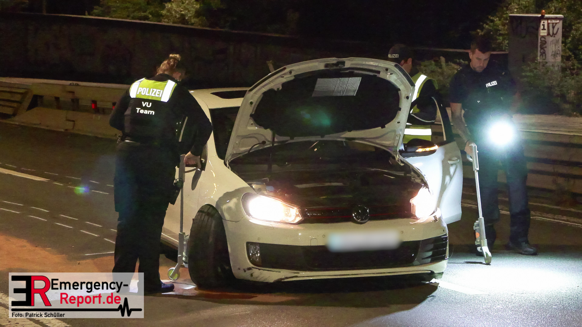 Bei einem Verkehrsunfall in der Nacht zu Sonntag im Rheinalleetunnel wurden vier Personen leicht verletzt, nachdem sich zwei Fahrzeugführer offenbar ein Rennen geliefert hatten. Es bestand der Verdacht des Alkohol-/Betäubungsmittelkonsums. Beiden Fahrern wurden Blutproben entnommen. Die Spezialisten des Verkehrsunfallaufnahmeteams sicheren die Spuren.