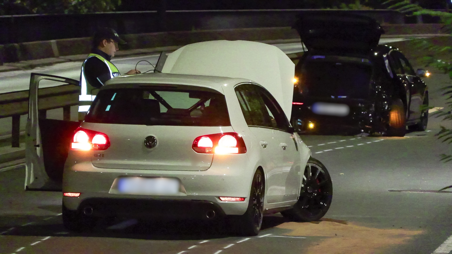 Nach Zeugenaussagen fuhren ein 33-jähriger Bonner und ein 22-jähriger Niederländer jeweils mit ihren VW Golf auf der A 52 in Richtung des Rheinalleetunnels nach Düsseldorf. Der Golf des Niederländers war mit drei weiteren Insassen besetzt. Während der Fahrt bremsten sich die Fahrer gegenseitig aus und überholten sich abwechselnd. Weiterhin verlangsamten sie auffallend ihre Geschwindigkeit bis zum Stillstand und beschleunigten daraufhin stark. Im Tunnel kam es letztendlich zum Unfall, als der 33-Jährige dem 22-Jährigen hinten auffuhr. Der Niederländer sowie die drei Mitfahrer wurden leicht verletzt, wobei der Fahrer und der Beifahrer ambulant im Krankenhaus behandelt werden mussten. Der Bonner blieb unverletzt. Vor Ort ergaben sich Hinweise darauf, dass beide Fahrzeugführer unter dem Einfluss von Alkohol und/oder Betäubungsmitteln standen. Ihnen wurden Blutproben entnommen. Das Verkehrsunfallaufnahmeteam sicherte die Spuren des Unfalls. Die Fahrzeuge wurden sichergestellt.