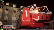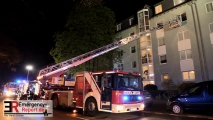 Am 01.04.2017 wurde die Feuerwehr um 0.04 Uhr zu einem Wohnungsbrand auf der Düsseldorfer Landstraße 140 alarmiert. Die Rückmeldung der ersten Feuerwehrkräfte ergab, dass es sich um einen ausgedehnten Wohnungsbrand in der 3. Etage handelte. Die Feuerwehr leitete umgehend die ersten Sofortmaßnahmen in Bezug auf Menschenrettung und Brandbekämpfung ein. Eine Person wurde von einem Angriffstrupp im Flur gerettet, eine weitere Person wurde aus der Wohnung gerettet und umgehend im Rettungswagen behandelt. Zusätzlich konnte die Feuerwehr acht Personen über die Drehleiter retten und in Sicherheit bringen. Die Person, die aus der Brandwohnung gerettet wurde, zog sich schwerste Verbrennungen zu und musste vor Ort reanimiert werden. Sie wurde in eine Unfallklinik transportiert, die für Brandverletzte zuständig ist. Die Polizei hat die Ermittlungen in Bezug auf die Entstehungsursache aufgenommen. Der Einsatz dauerte ca. 2 Stunden.
