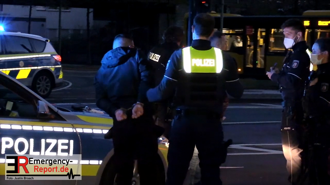 Passanten schilderten der Leitstelle der Polizei Montagabend (12. April) gegen 20:20 Uhr mehrere vermummte Personen auf der Wittenbergstraße, Ecke Müller-Breslau-Straße, welche mit Schlaggegenständen massiv auf ein Fahrzeug und dessen Insassen einschlugen. Dabei sollen auch Schüsse gefallen sein. Daraufhin flüchteten die vermummten Personen mit einem schwarzen Porsche Cayenne in Richtung Stadtwald. Die Einsatzleitstelle der Polizei entsendete augenblicklich Streifenwagen aus mehreren Polizeiinspektionen zum Tatort. Kurz vor Eintreffen des ersten Streifenwagens kam den Beamten das angegriffene Fahrzeug entgegen. Das Fahrzeug wies enorme Schäden auf, diverse Fensterscheiben waren eingeschlagen. Im Fahrzeug, einem Hyundai, trafen sie auf zwei Männer aus Leverkusen. Einer von ihnen, ein 43-jähriger Nordmazedonier, wies augenscheinlich schwere Verletzungen auf. Sein 28-jähriger Beifahrer, ein Kosovare, war leicht verletzt. Weitere Polizisten aus umliegenden Nachbarstädten sowie ein Polizeihubschrauber unterstützten die Fahndungsmaßnahmen nach dem Porsche Cayenne in Essen und in den angrenzenden Ausfallstraßen. Beamte der Autobahnpolizei entdeckten kurze Zeit später das flüchtige Fahrzeug, welches auf der BAB 40 in Richtung Dortmund fuhr. Das Fahrzeug konnte von der Autobahn im Bereich Dortmund gelotst und ein Insasse (56, Deutsch) vorläufig festgenommen werden. Die Tatbeteiligung der Person wird derzeit geprüft. Aktuell sucht die Polizei noch nach weiteren tatbeteiligten Personen, die alle etwa 1,80 Meter groß und maskiert gewesen sein sollen. Die Ermittlungen zu den Hintergründen dauern an.