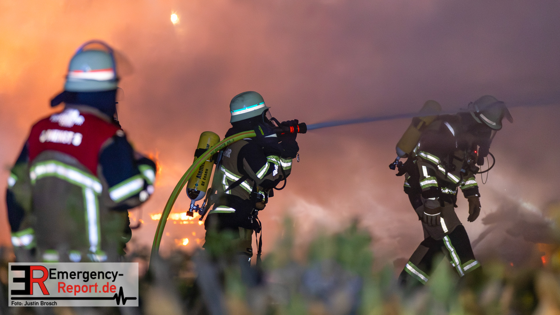 Die Feuerwehr leitete umgehend die Brandbekämpfung ein. Mehrere Trupps gingen unter Atemschutz mit Strahlrohren gegen das Feuer vor. Im weiteren Einsatzverlauf kam auch Schaummittel zum Einsatz, um Glutnester gezielt abzulöschen. Die Nachlöscharbeiten zogen sich über mehrere Stunden hin. Auch am Morgen war eine erneute Brandnachschau erforderlich, nachdem es nochmals zu einer leichten Rauchentwicklung gekommen war.