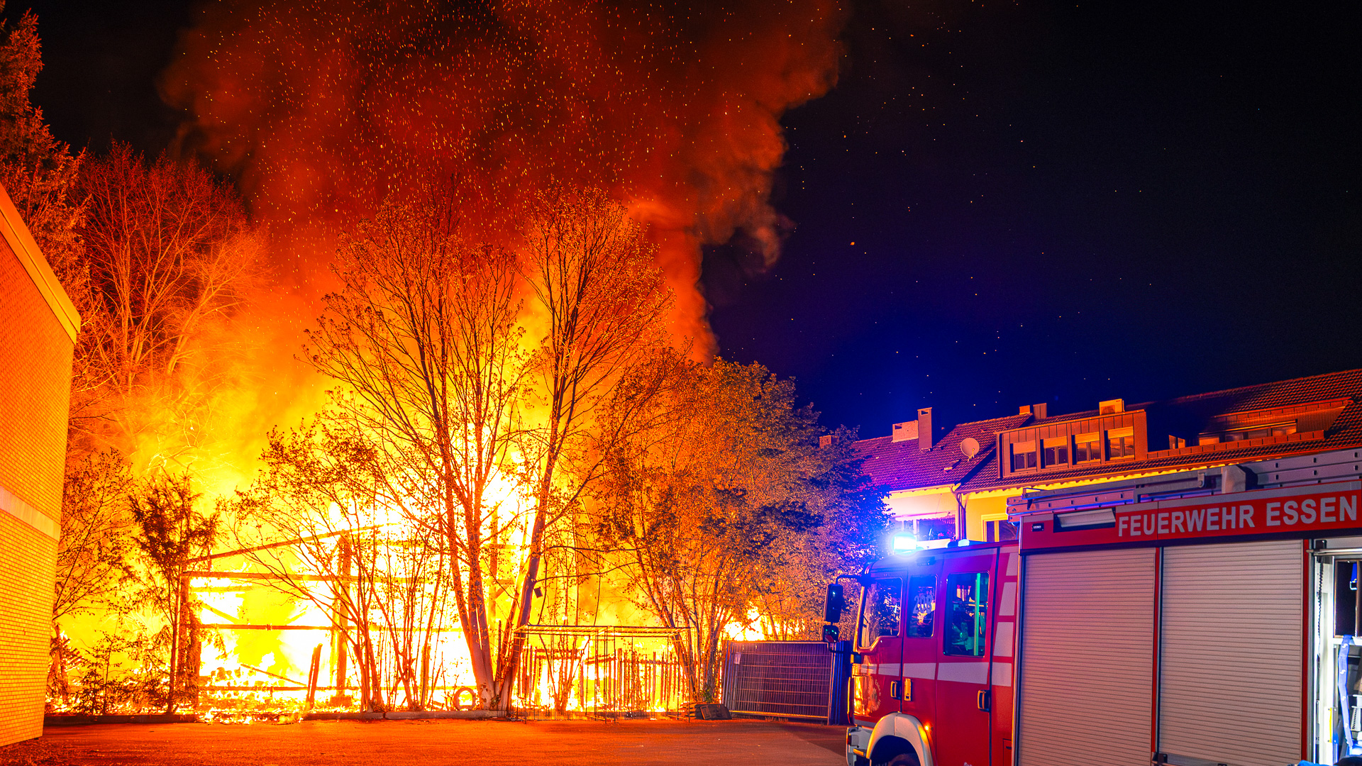 In der Nacht zu Samstag wurde die Feuerwehr Essen zur Theodor-Hartz-Straße im Stadtteil Bochold alarmiert. Dort war es auf dem Grundstück zweier Mehrfamilienhäuser zu einem größeren Brand gekommen.